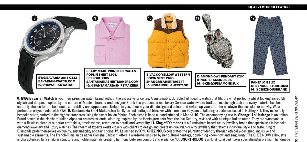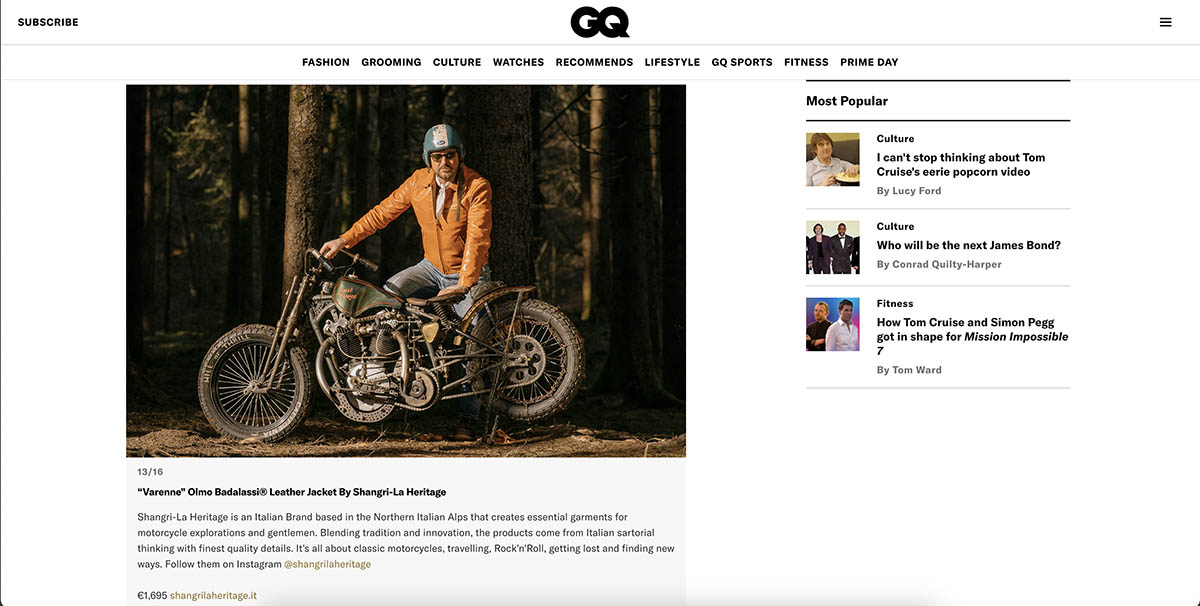 We’re proud to be featured in the Selection of GQ Shops (UK), July 2023. They showcase the Masterpiece “Varenne” Olmo Badalassi® Leather Jacket