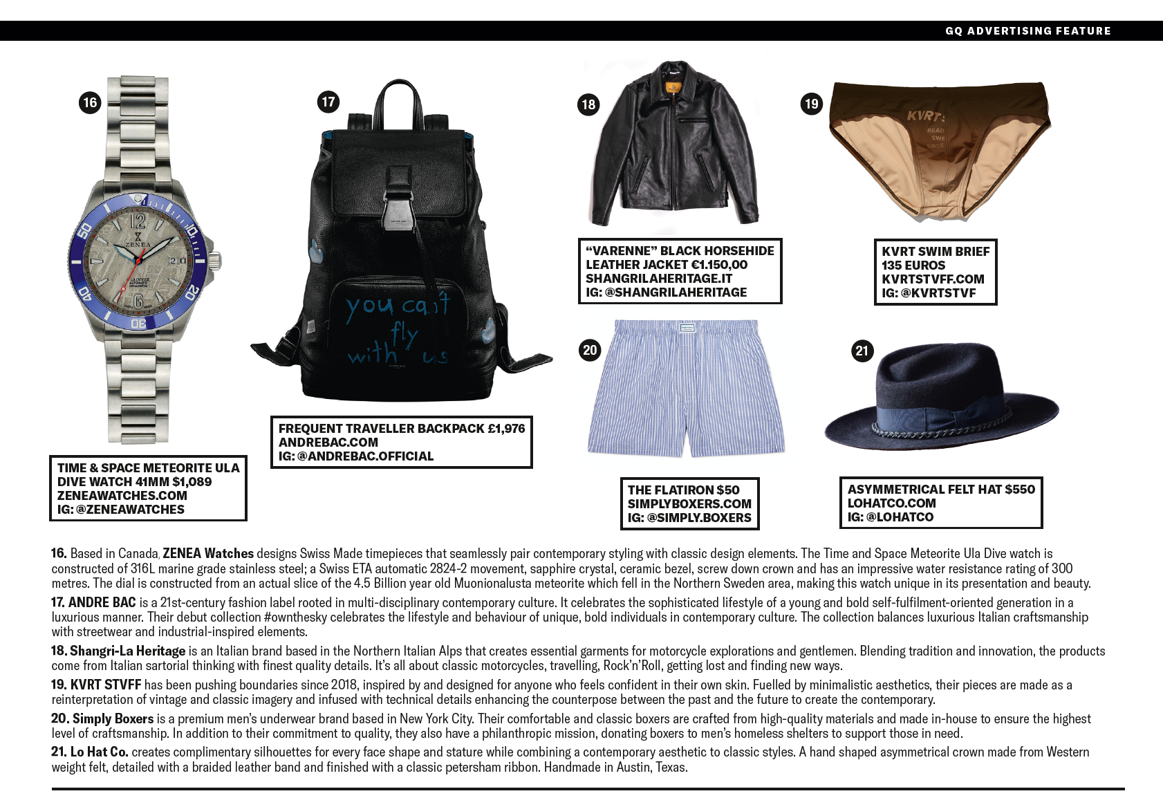 We’re proud to be featured on GQ (UK), Summer 2023 Issue. They showcase the Masterpiece “Varenne” Black Horsehide Leather Jacket