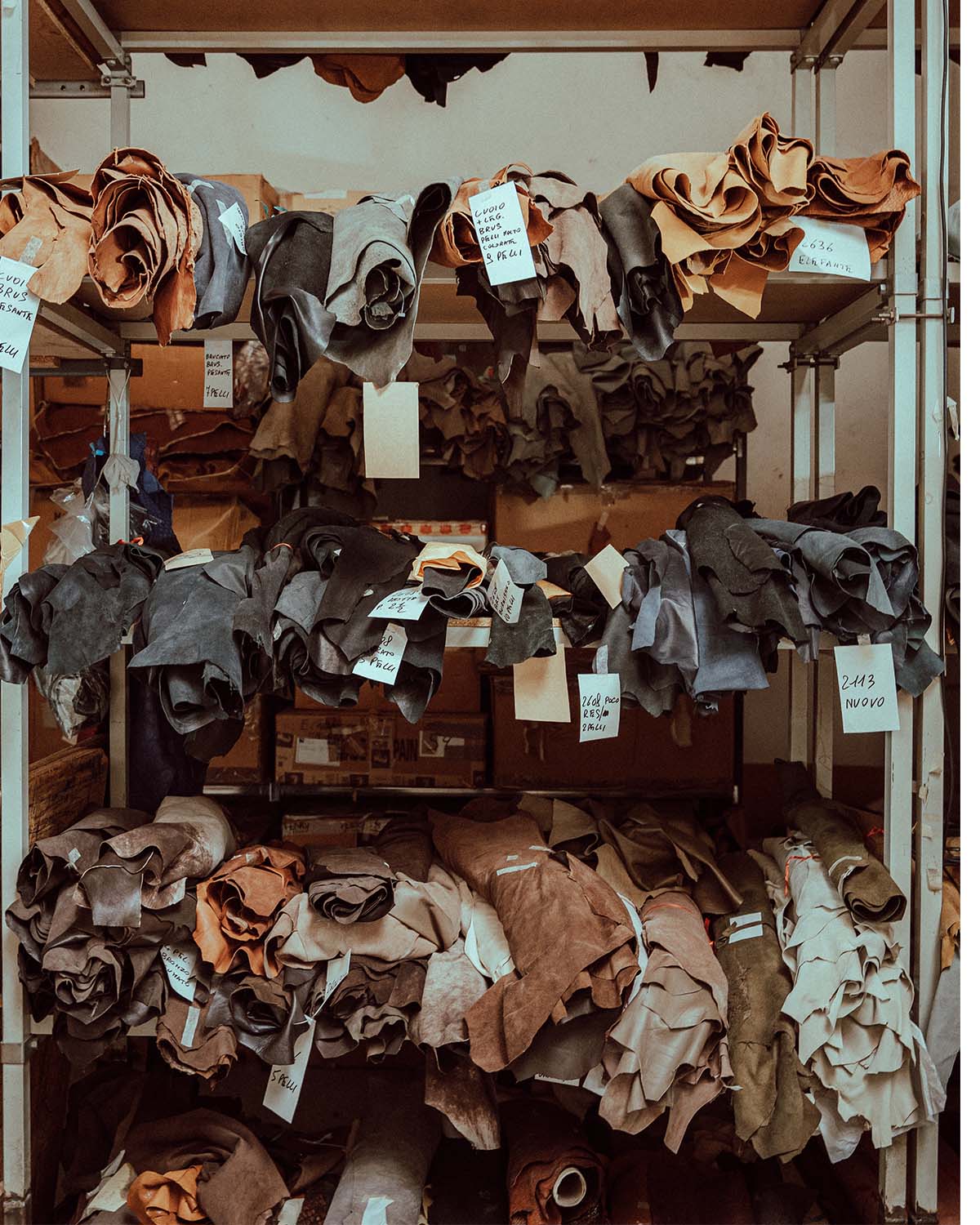 From top quality Steerhide to Front Quarter pull-up Horsehide, from Selvedge Denim to Recycled Kilim Wool, we personally source all of our leathers and fabrics directly from small producers around Italy and Europe.
