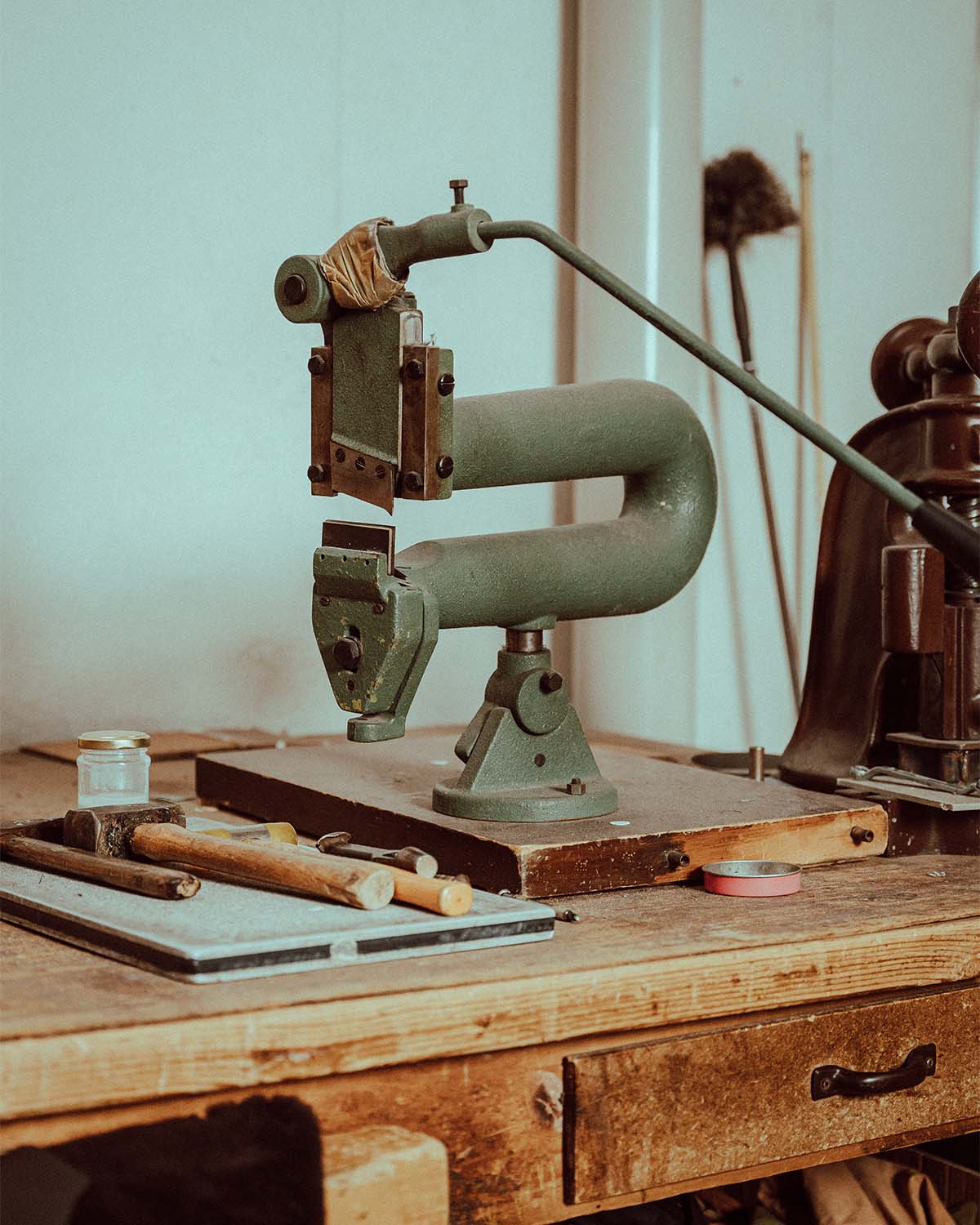 Working in this very workshop since 1981, he’s in charge of the cutting room.