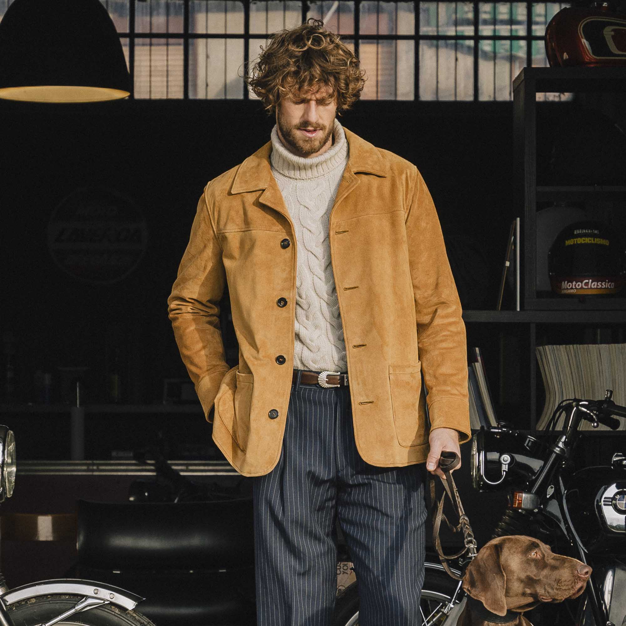 • “Enzo” Fringe Sabbia Suede Car Coat