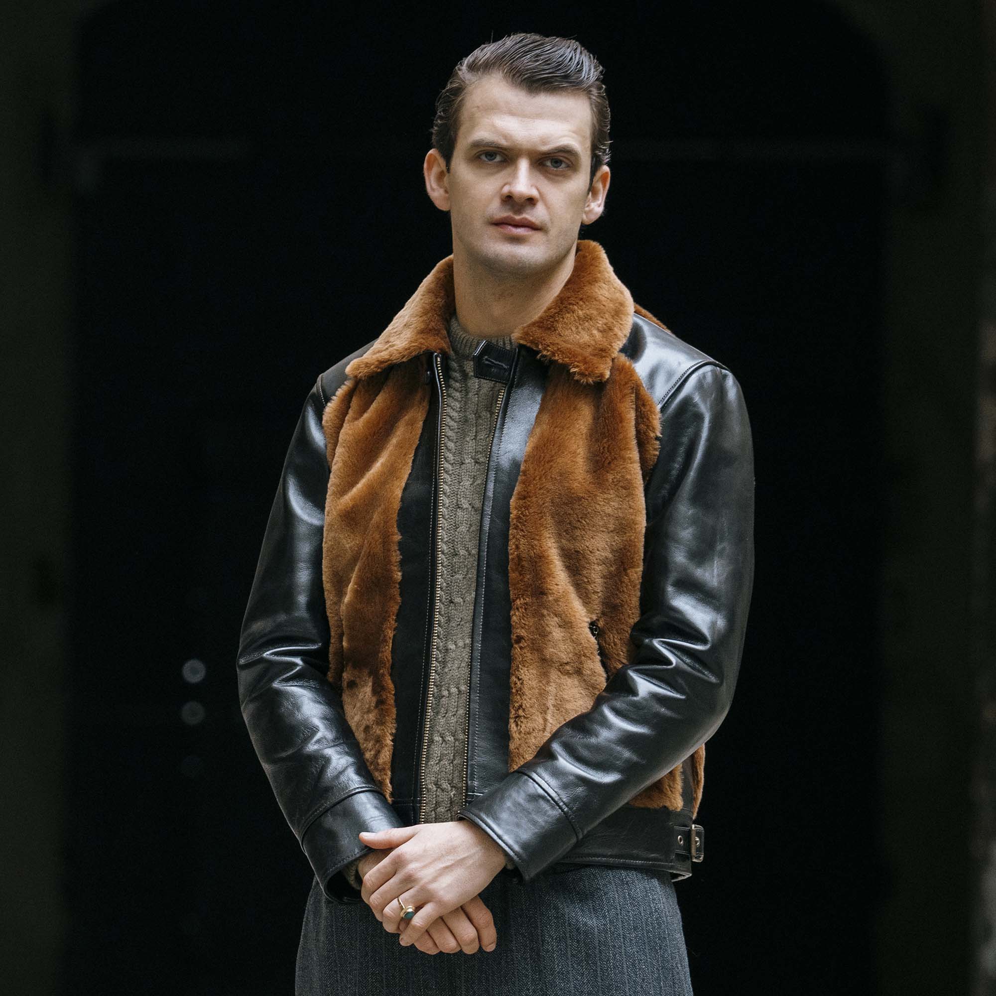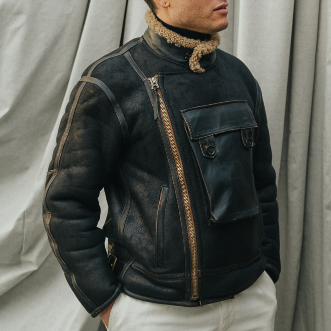 • “Aviatore” B-3 Vintage Black Shearling Jacket