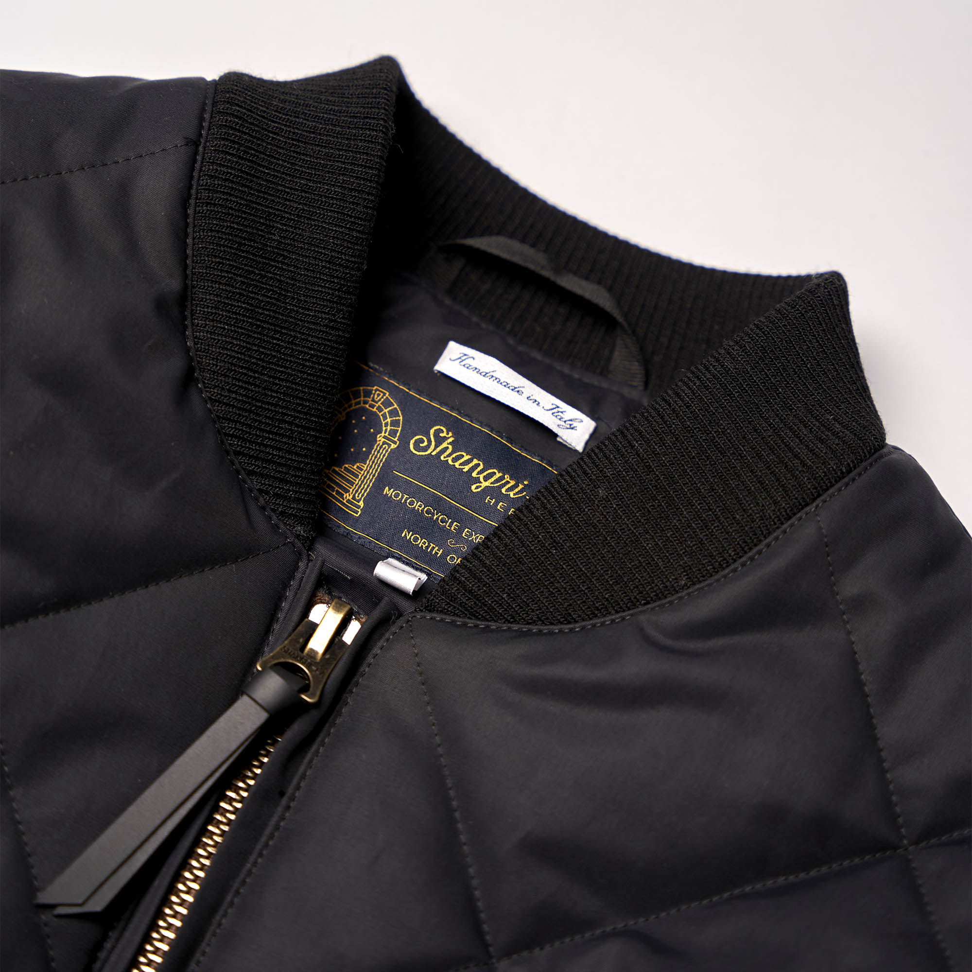 Inspired by 1950s Skyliner Jackets and revisited with a unique Italian touch, the “Alaska” Black Skyliner Jacket represents an authentic garment made of Comfortemp® Thermo – Fibre Padding with an external layer made of a special 60/40 Fabric by Olmetex®, an Italian Excellence making the best technical fabrics in the world (since 1952 in Como, Italy).
