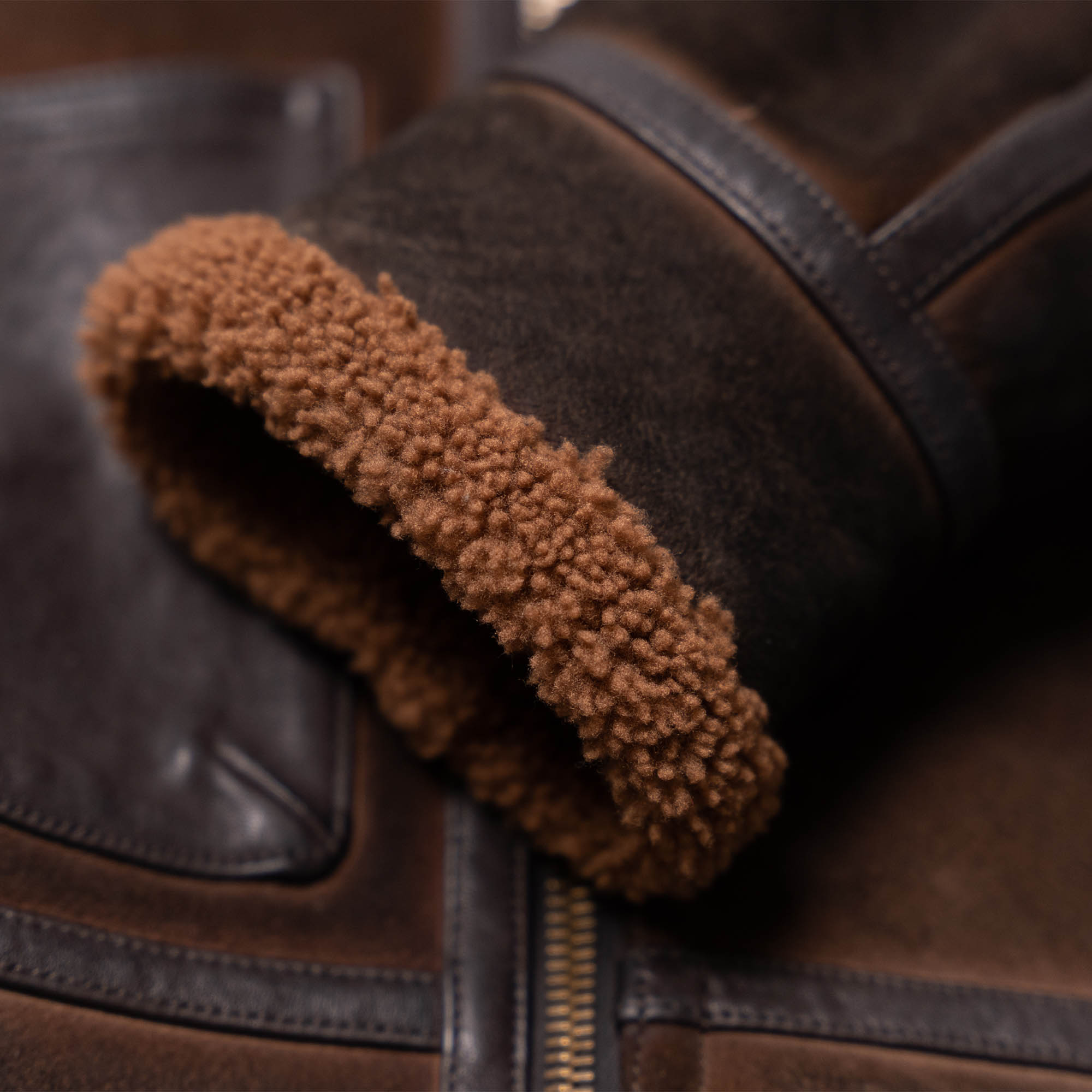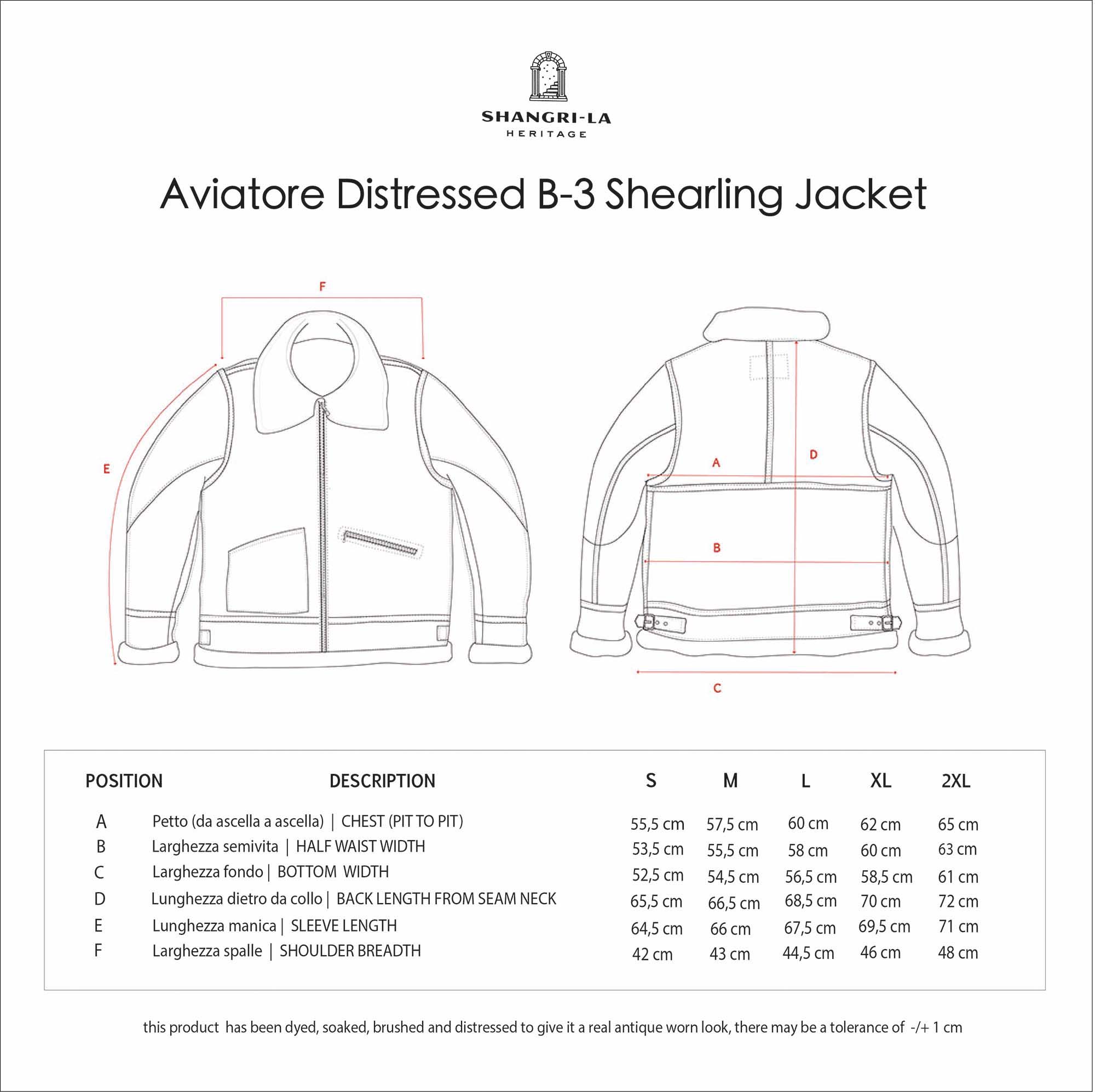 The Shearling Sheepskin with “Castagno” Treatment will change color with the wear, developing a unique Patina on the jacket, as a personal journey. The leather will begin to reveal the color under-layer, showing signs of time when it’s exposed to the elements and daily use, showing awesome scratches and fades in a various shades of terra bruciata and brown tones.