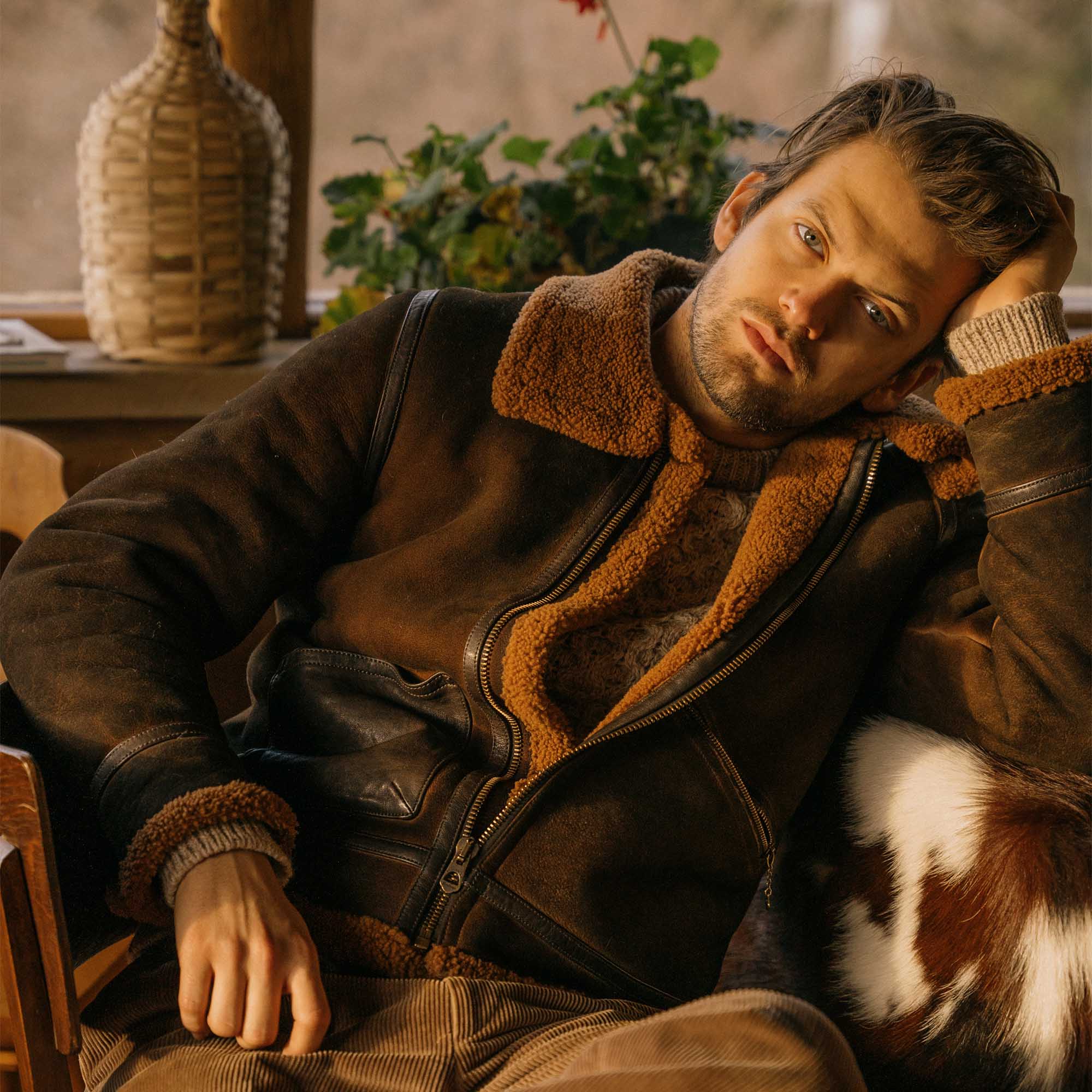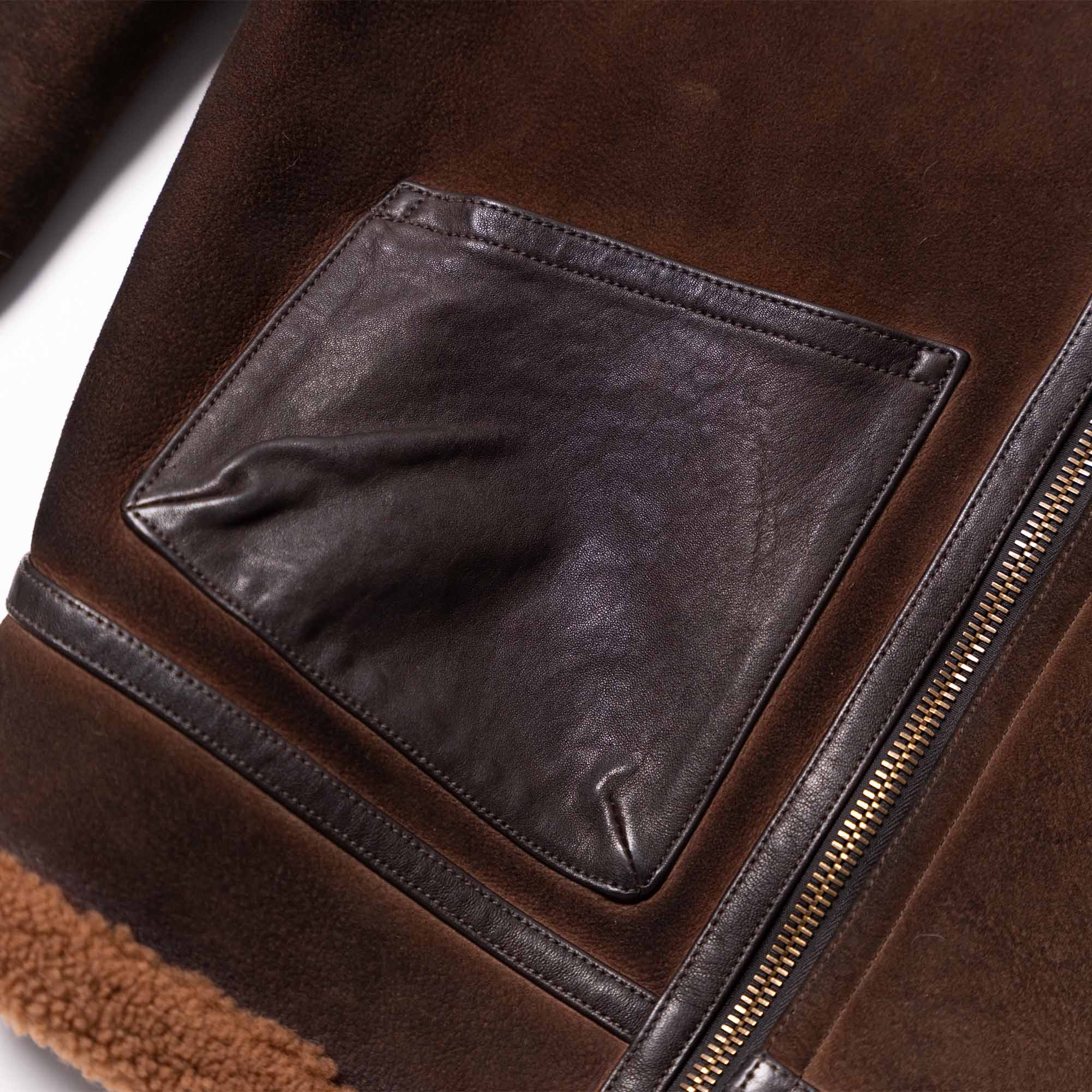 Inspired by early 40s type B-3 Flight jackets from the Second World War and revisited with a unique Italian touch, the “Aviatore” B-3 Shearling Jacket represents an authentic garment made of Italian Shearling Sheepskin reinforced with leather trimmings in vegetable tanned Lambskin from Tuscany (Italy).
