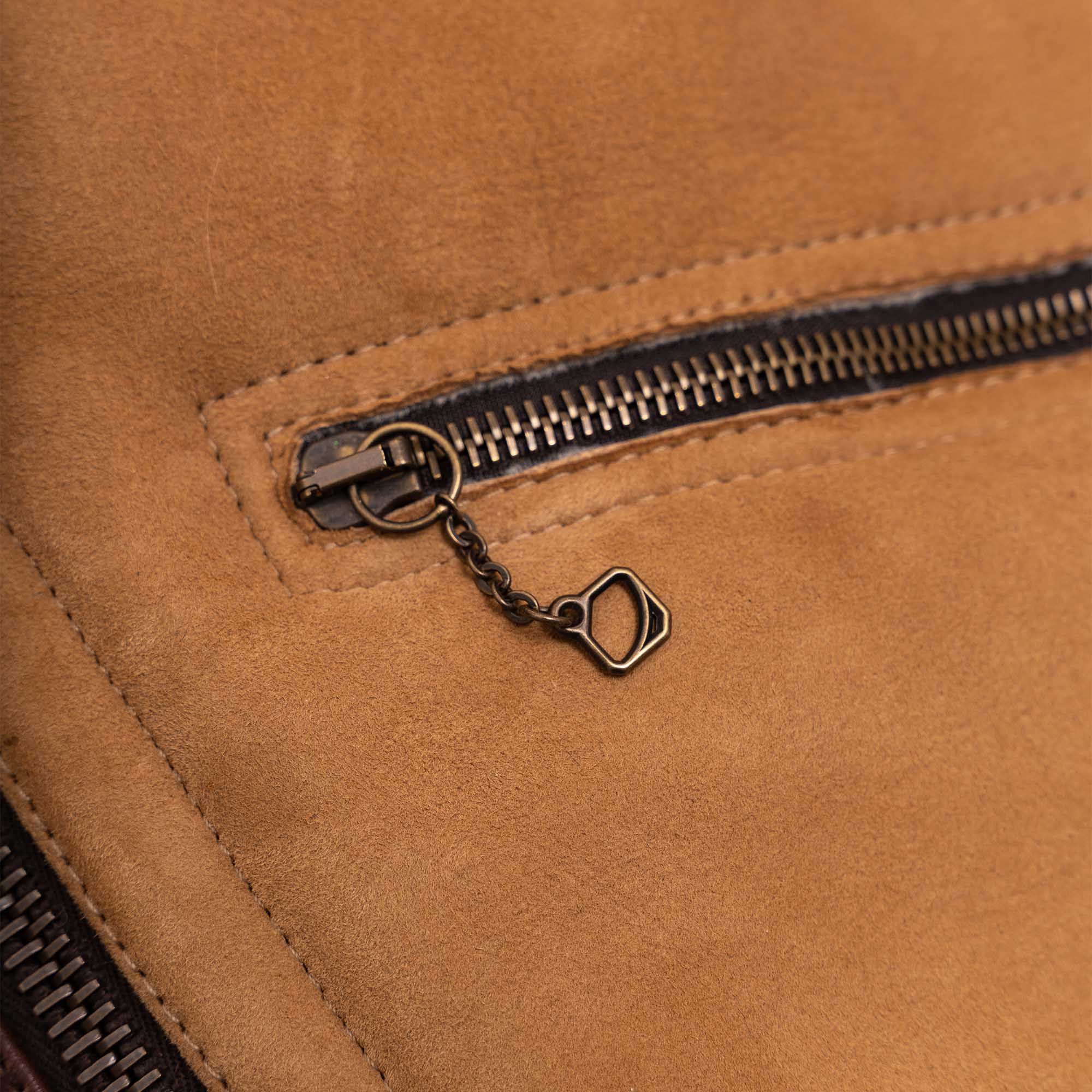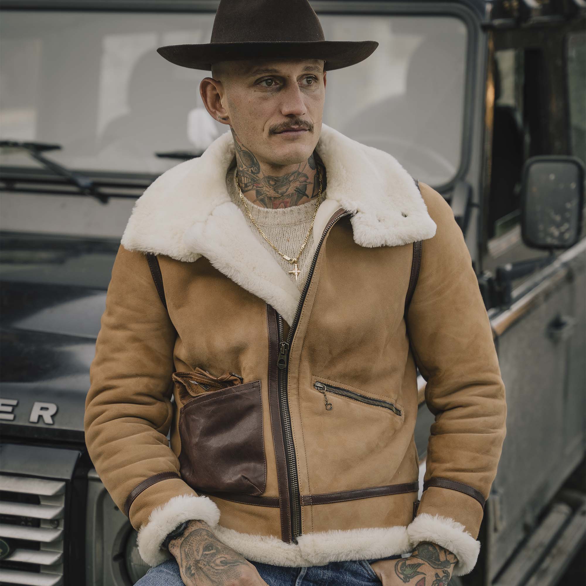 Inspired by early 40s type B-3 Flight jackets from the Second World War and revisited with a unique Italian touch, the “Aviatore” B-3 Shearling Jacket represents an authentic garment made of Italian Shearling Sheepskin reinforced with leather trimmings in vegetable tanned Lambskin from Tuscany (Italy).