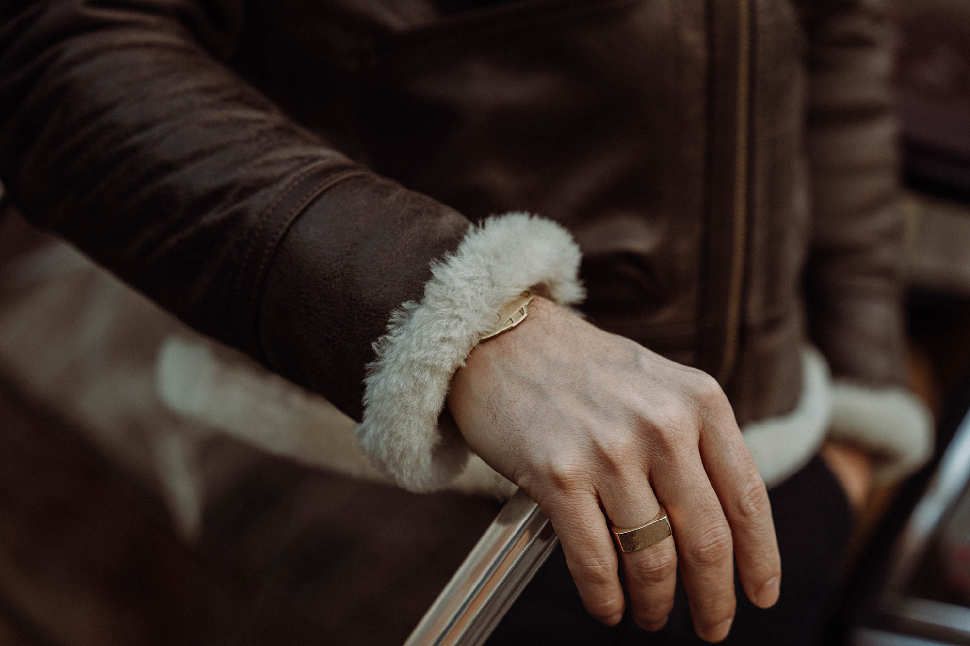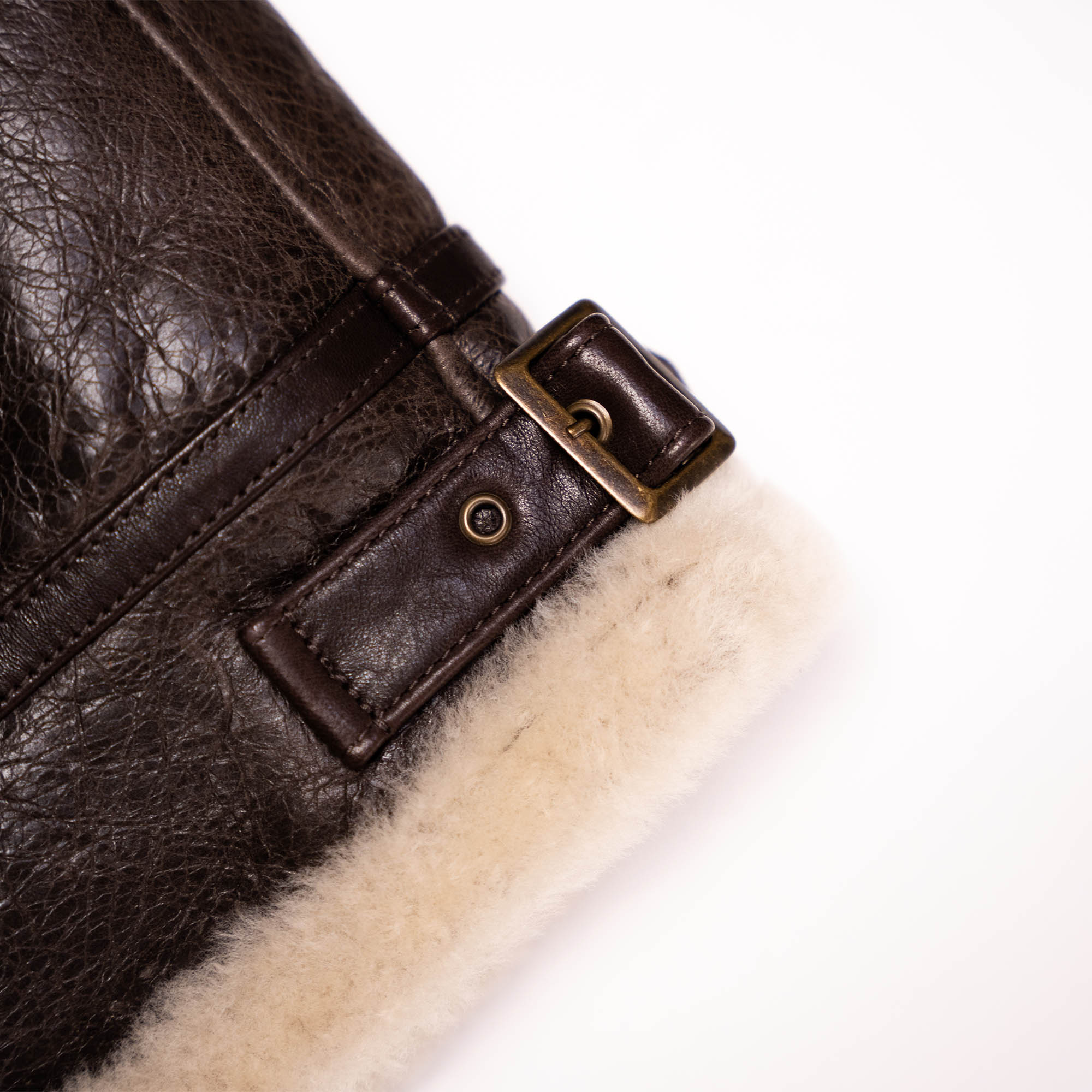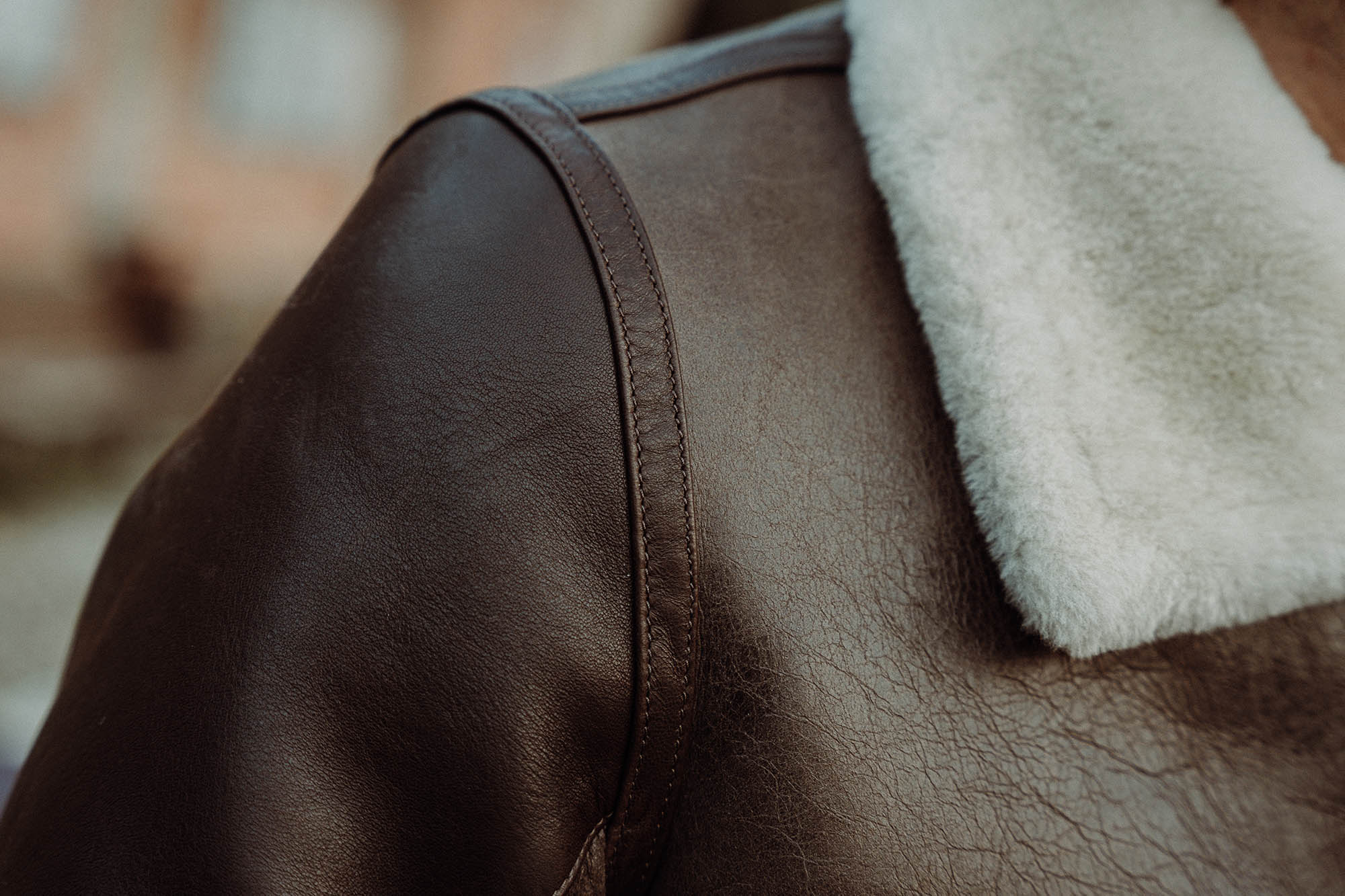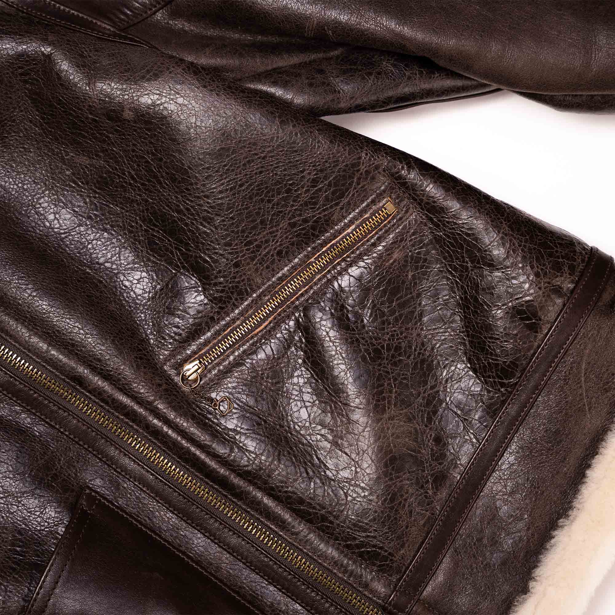 Inspired by early 40s type B-3 Flight jackets from the Second World War and revisited with a unique Italian touch, the “Aviatore” B-3 Shearling Jacket represents an authentic garment made of Italian Shearling Sheepskin reinforced with leather trimmings in vegetable tanned Lambskin from Tuscany (Italy).