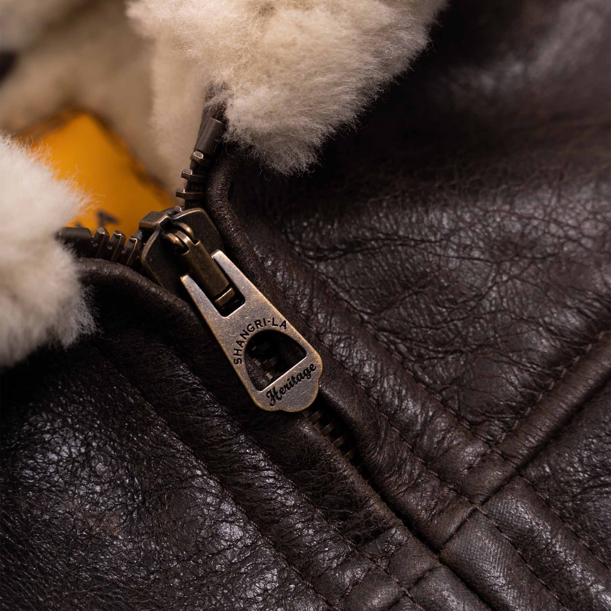 Inspired by early 40s Flight jackets from the Second World War and revisited with a unique Italian touch, the “Aviatore” Shearling Jacket represents an authentic garment made of Italian Shearling Sheepskin reinforced with leather trimmings in vegetable tanned Lambskin from Tuscany (Italy).