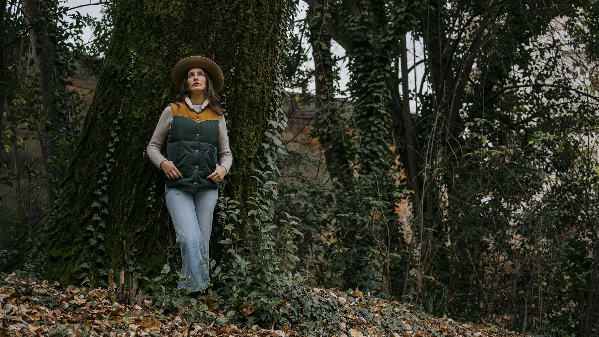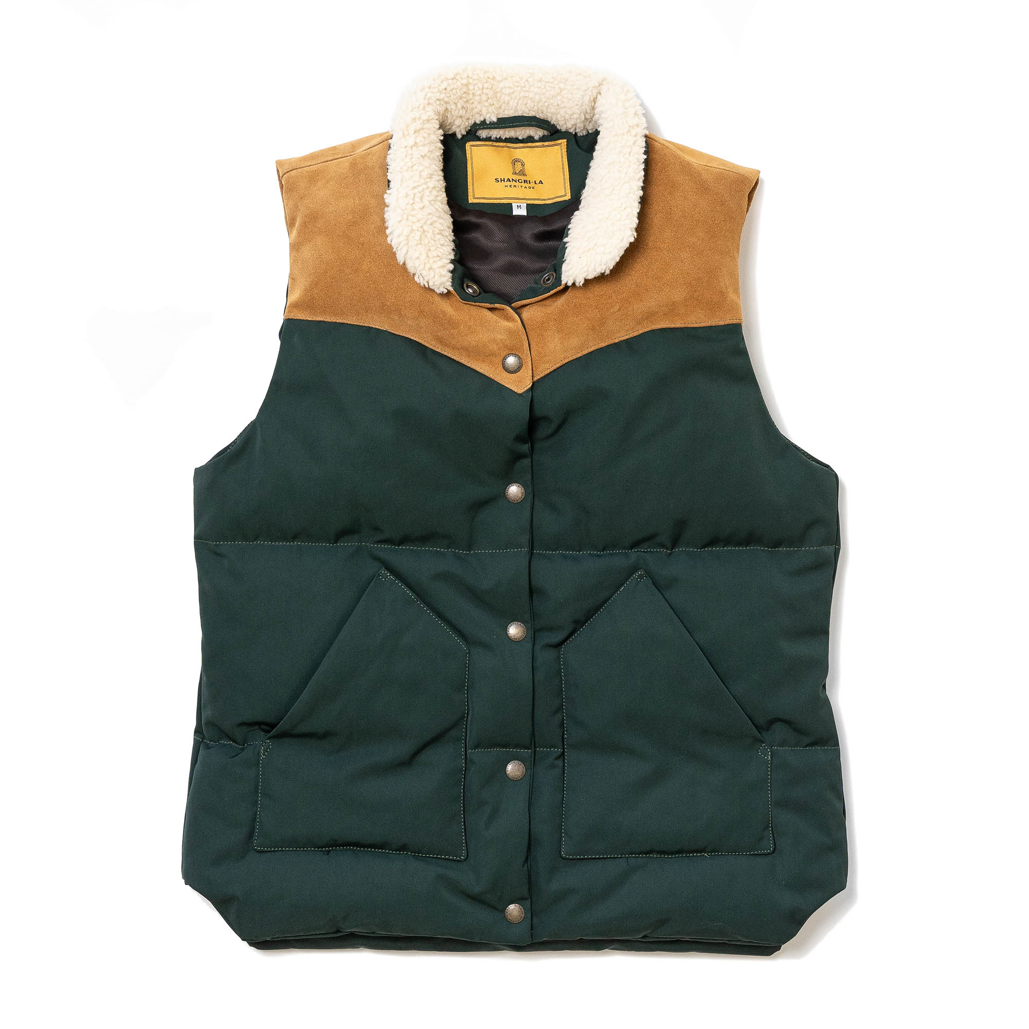 Inspired by 1960s Cowboy Vests and revisited with a unique Italian touch, the “Bivacco” Western Down Vest represents an authentic garment made of Recycled 80% Goose Down / 20% Feather from Tuscany (Italy) with the traditional western yoke made with Italian Calfskin Suede and Merino Shearling Sheepskin collar.