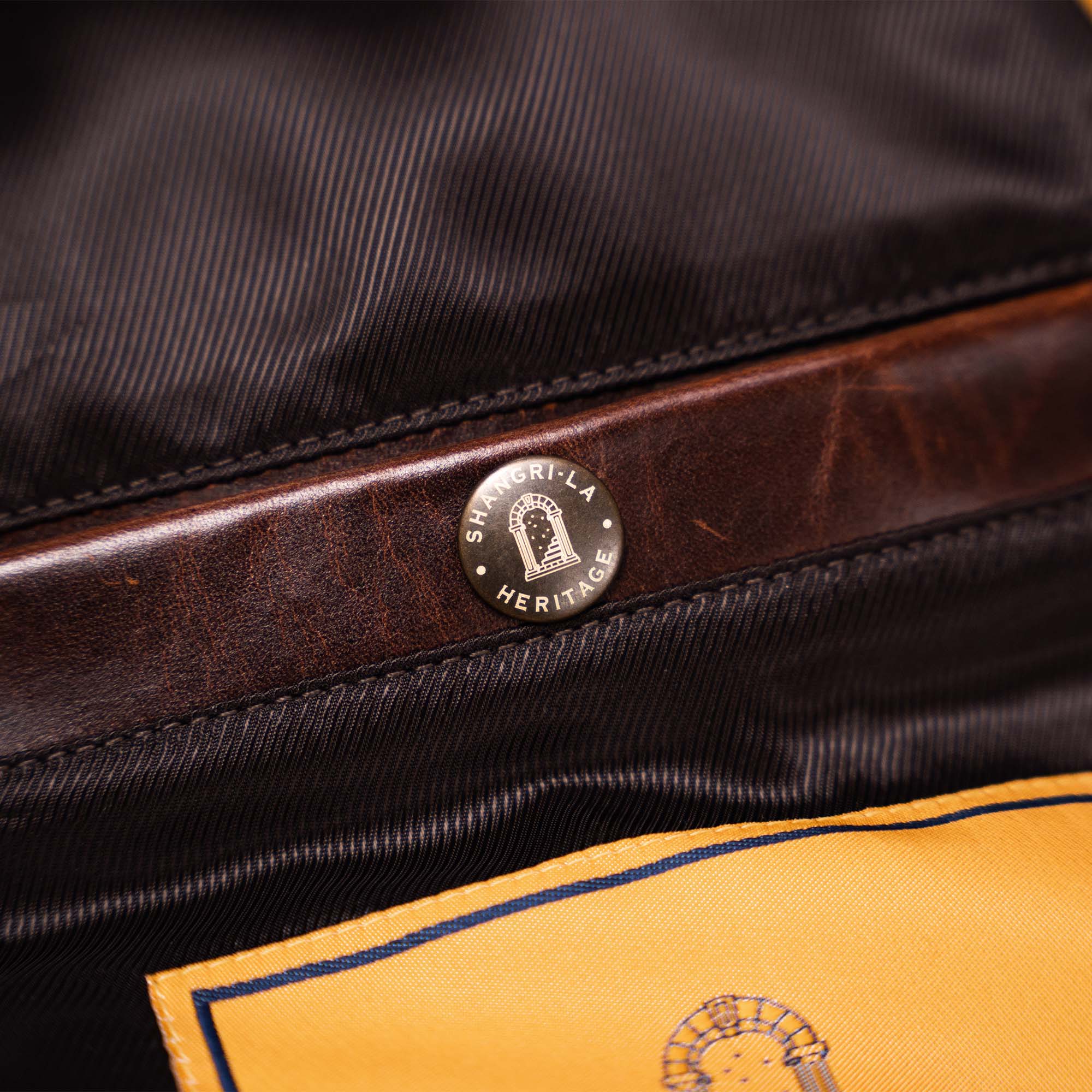 • 2 inside Pockets with antique brass snap buttons with engraved markings