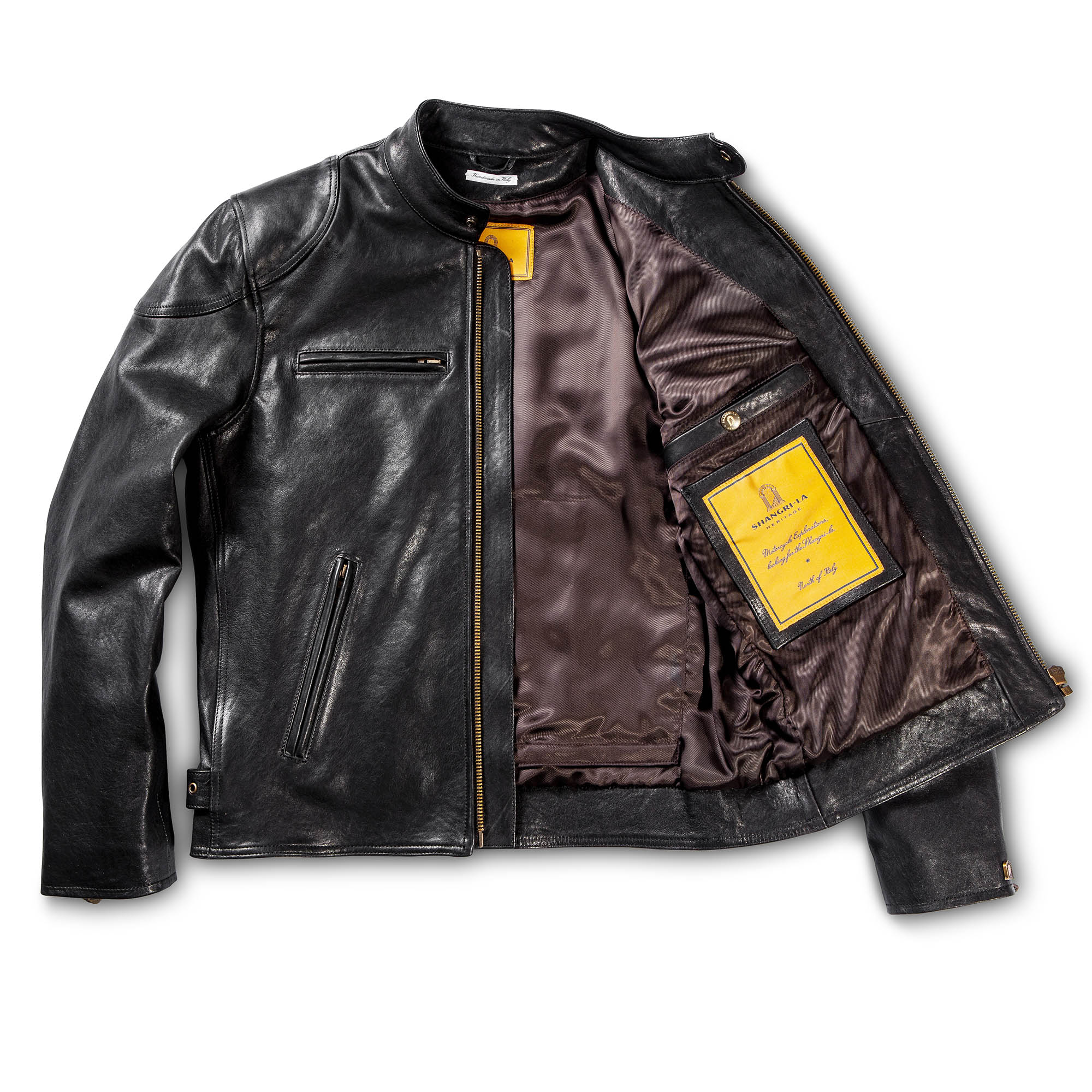 Inspired by late 70s Racing jackets and revisited with a unique Italian touch, the “Café Racer” represents an authentic garment made of vegetable tanned, drum dyed, full grain Lambskin from Tuscany (Italy) and “Espresso Coffee” color viscose lining.