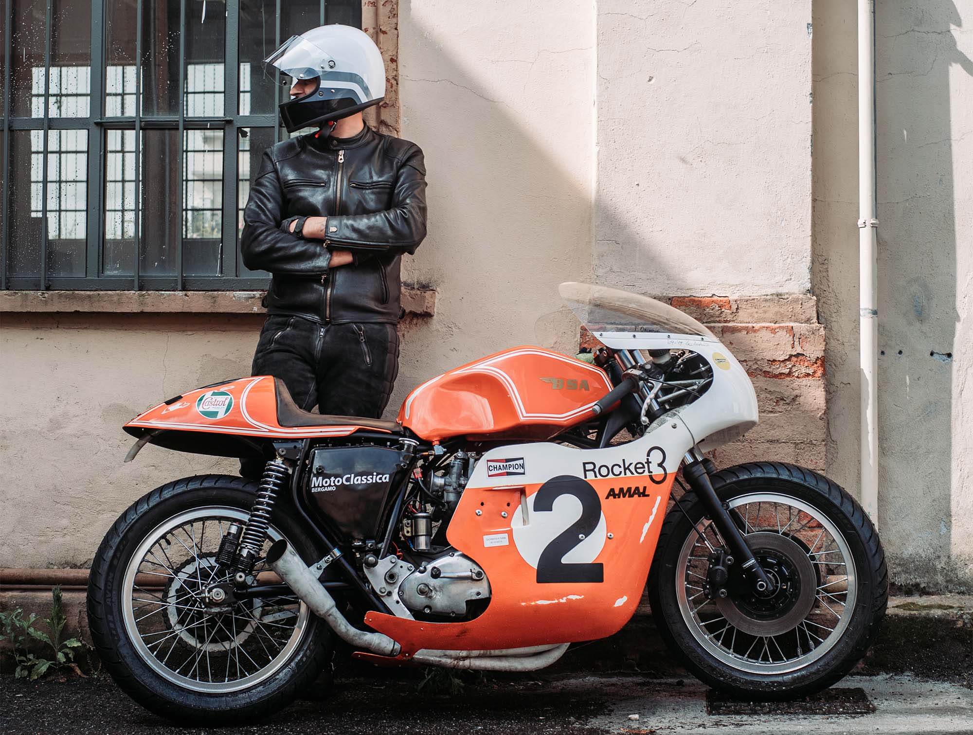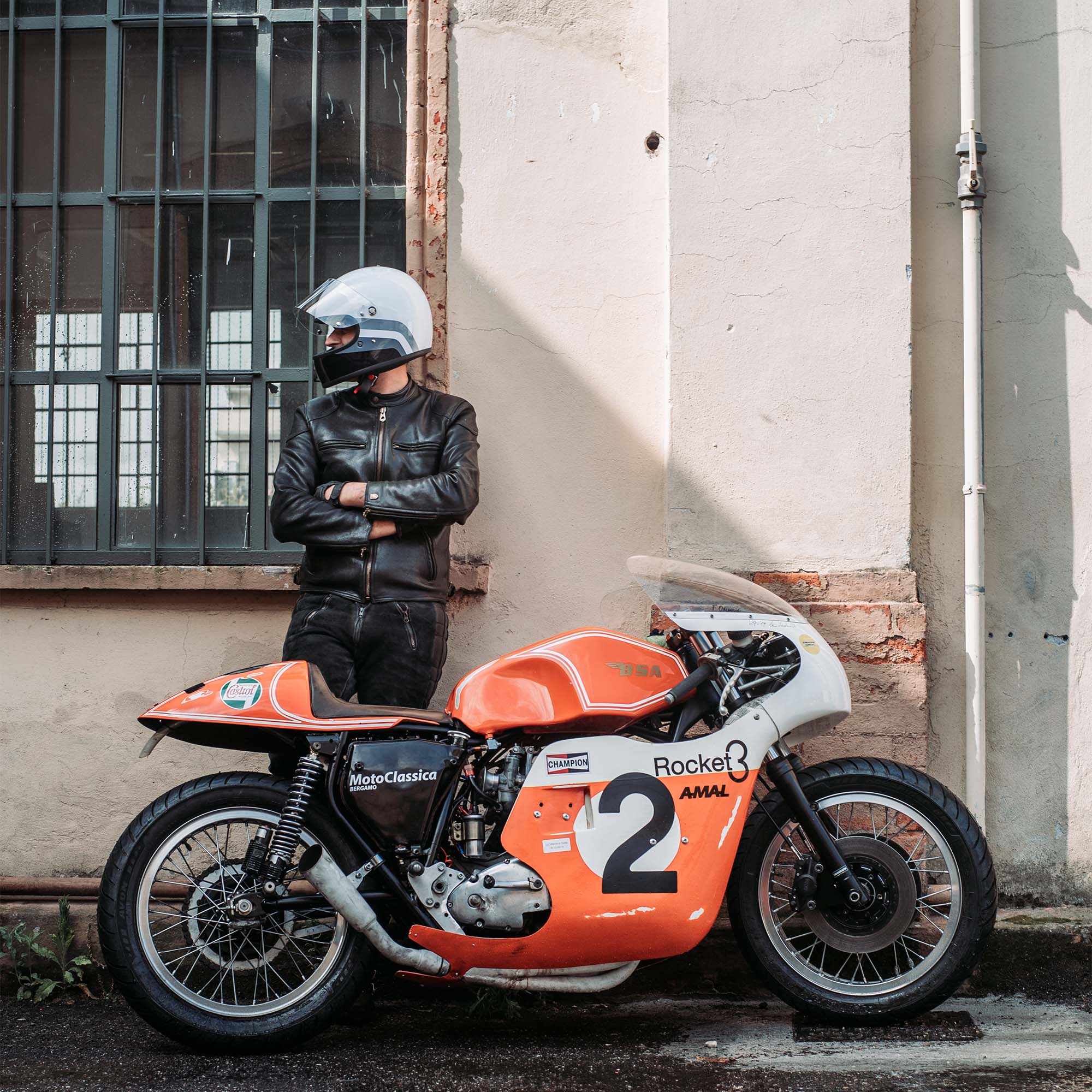 • Francesco (with his 1969 BSA Rocket 3 750) is 186cm and 76kg and he’s wearing a size L.