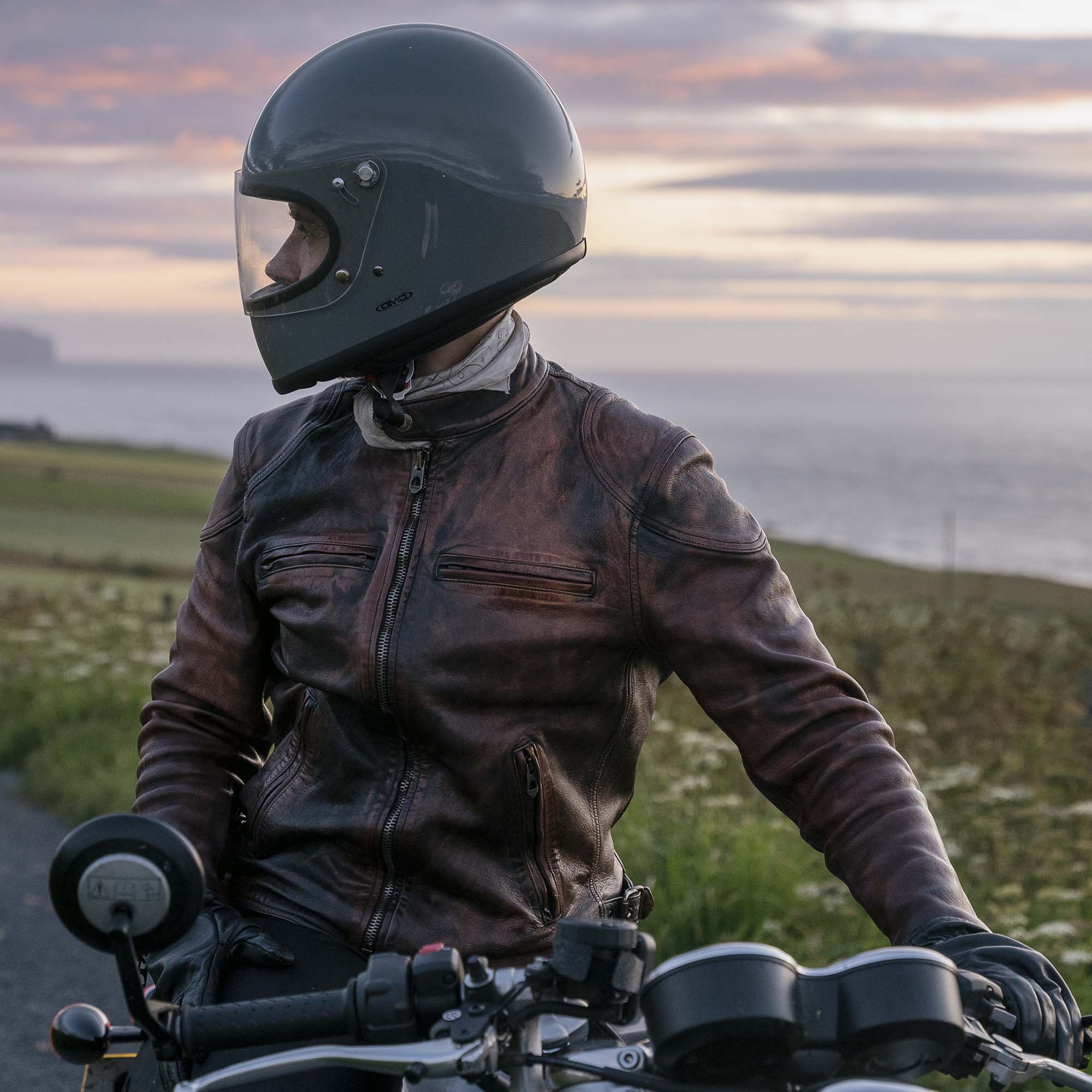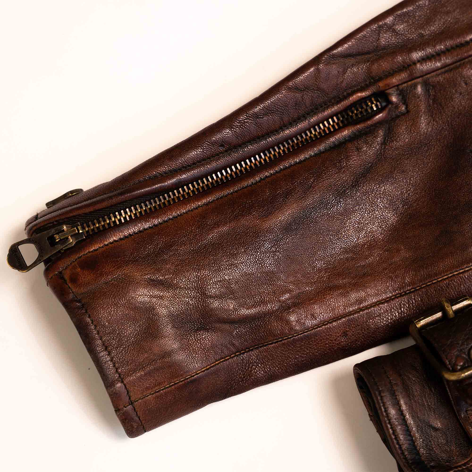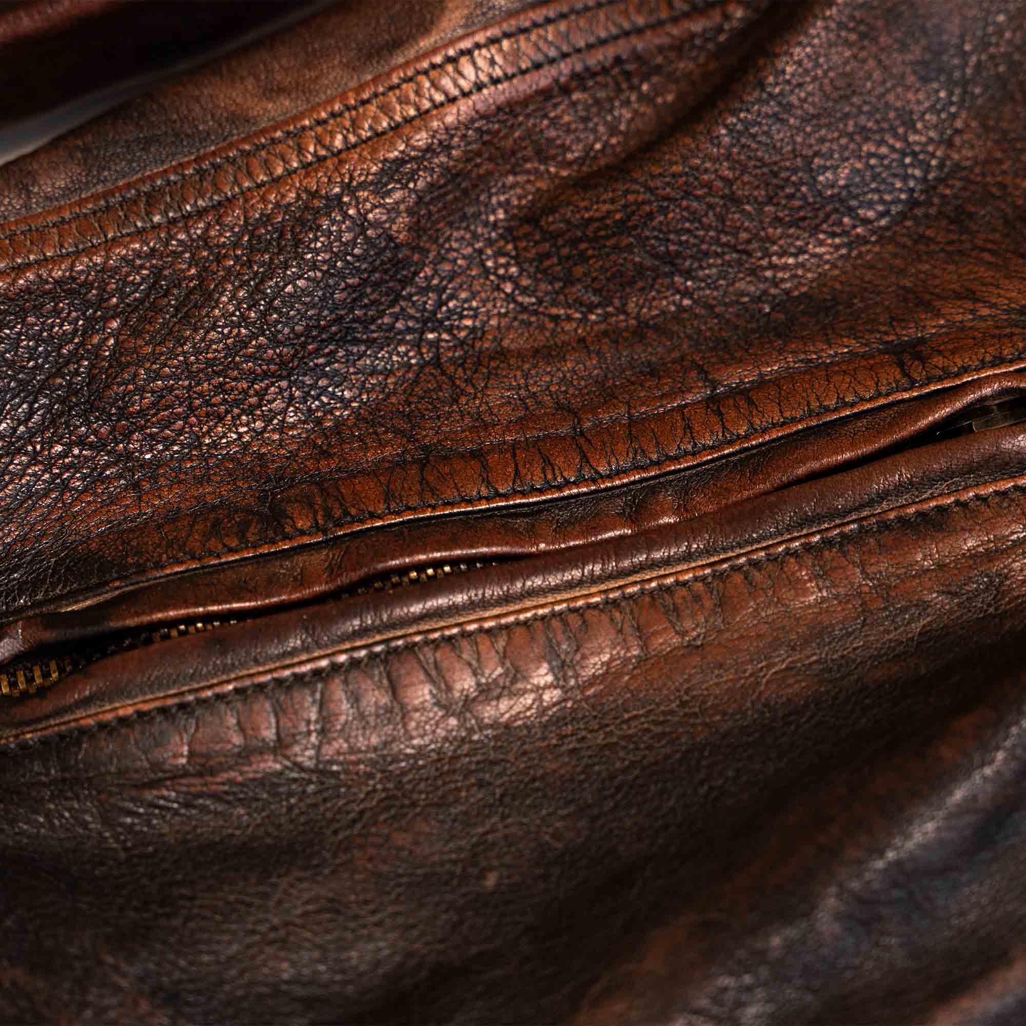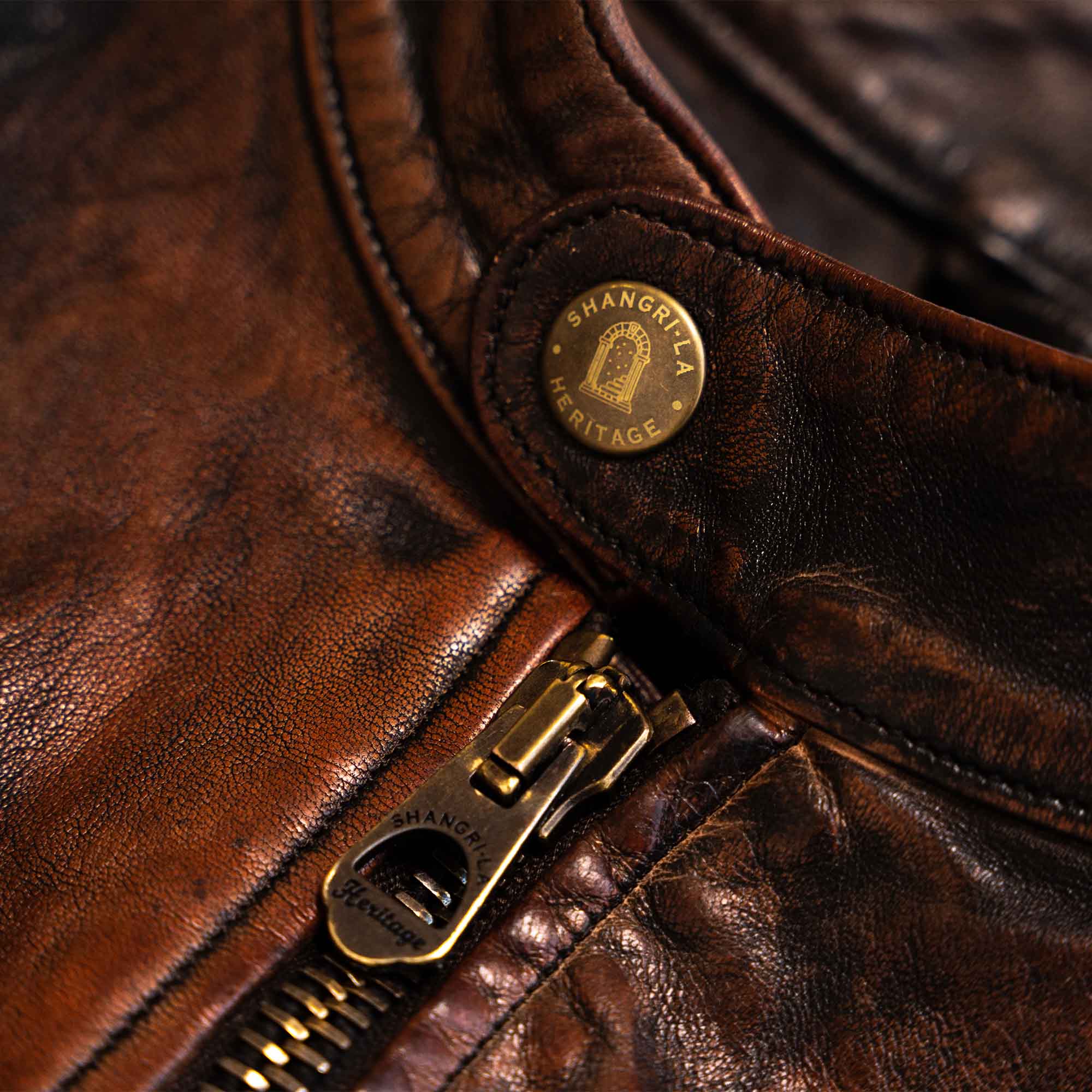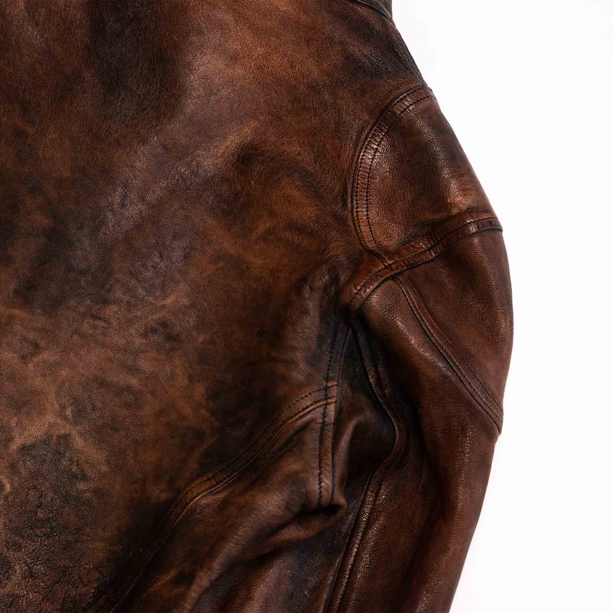 Inspired by late 70s Racing jackets and revisited with a unique Italian touch, the “Café Racer” Bruciato Leather Jacket represents an authentic garment made of vegetable tanned full grain Lambskin from Tuscany (Italy) with “Bruciato” Treatment, and “Espresso Coffee” color viscose lining.