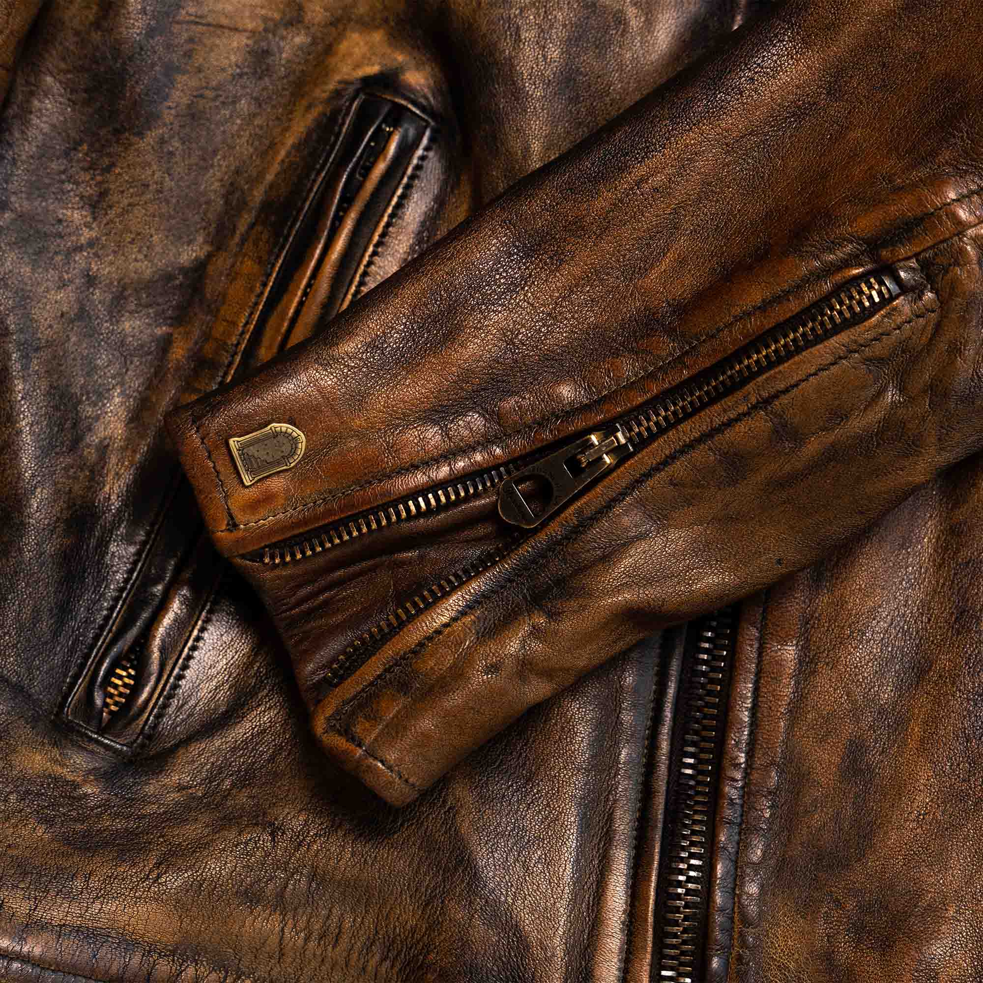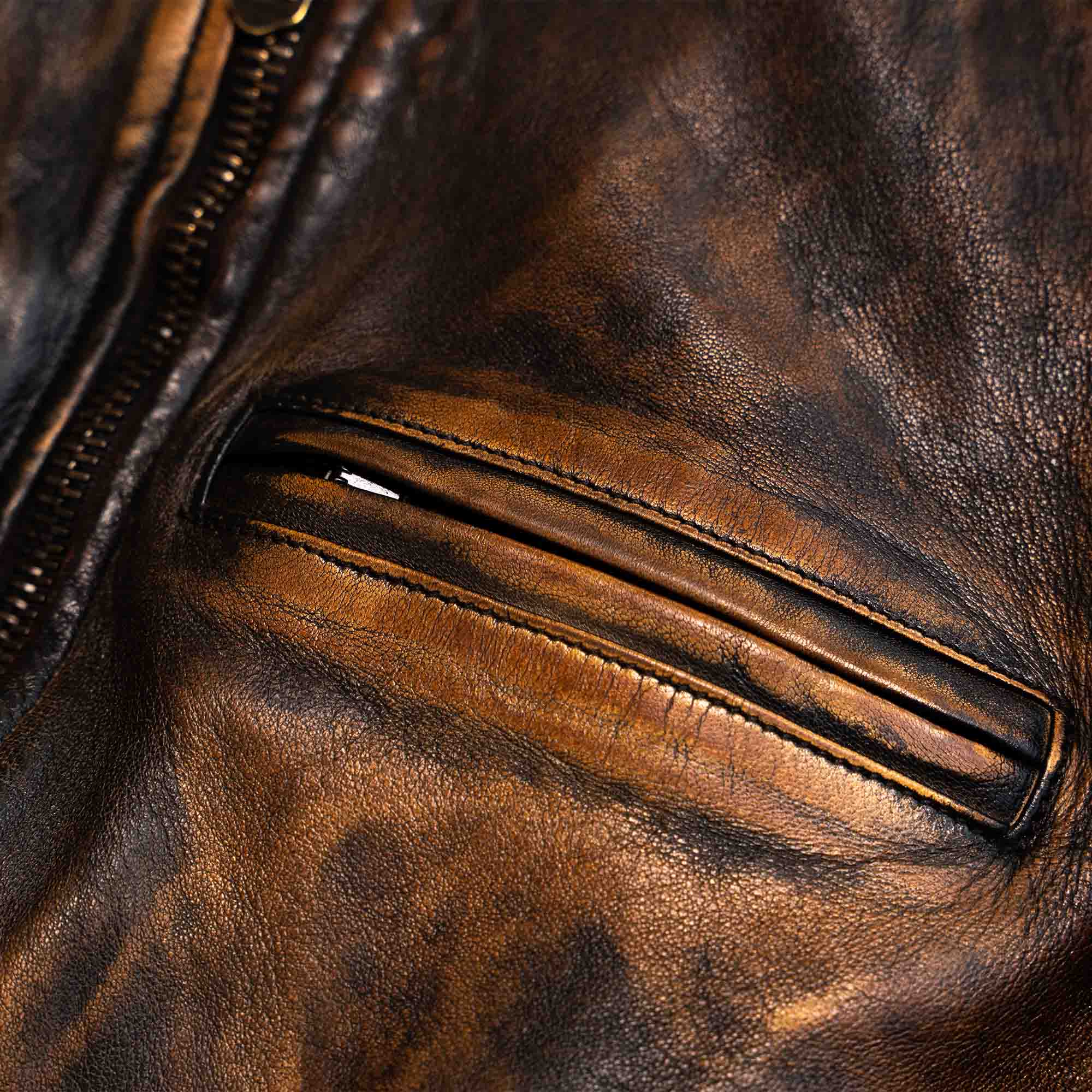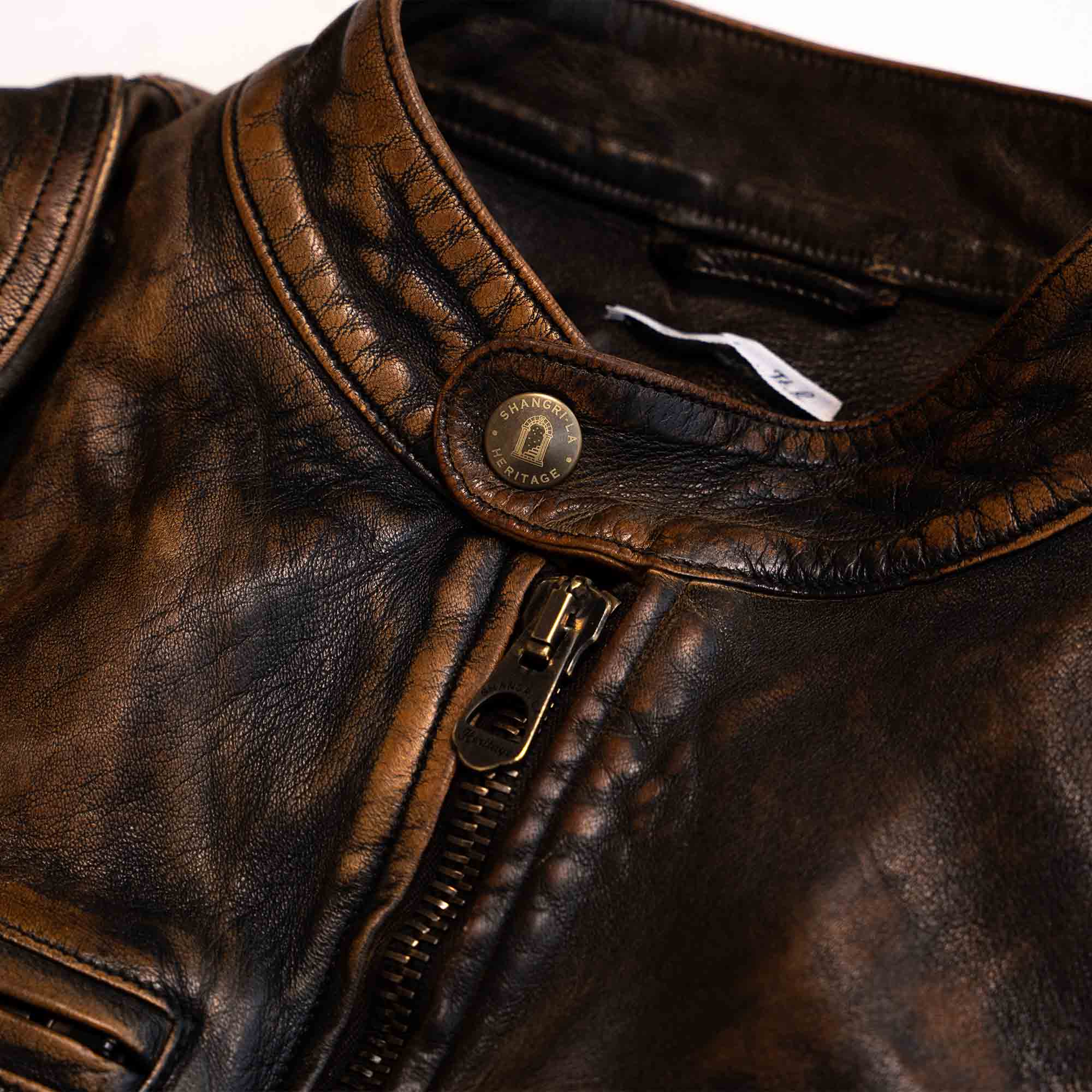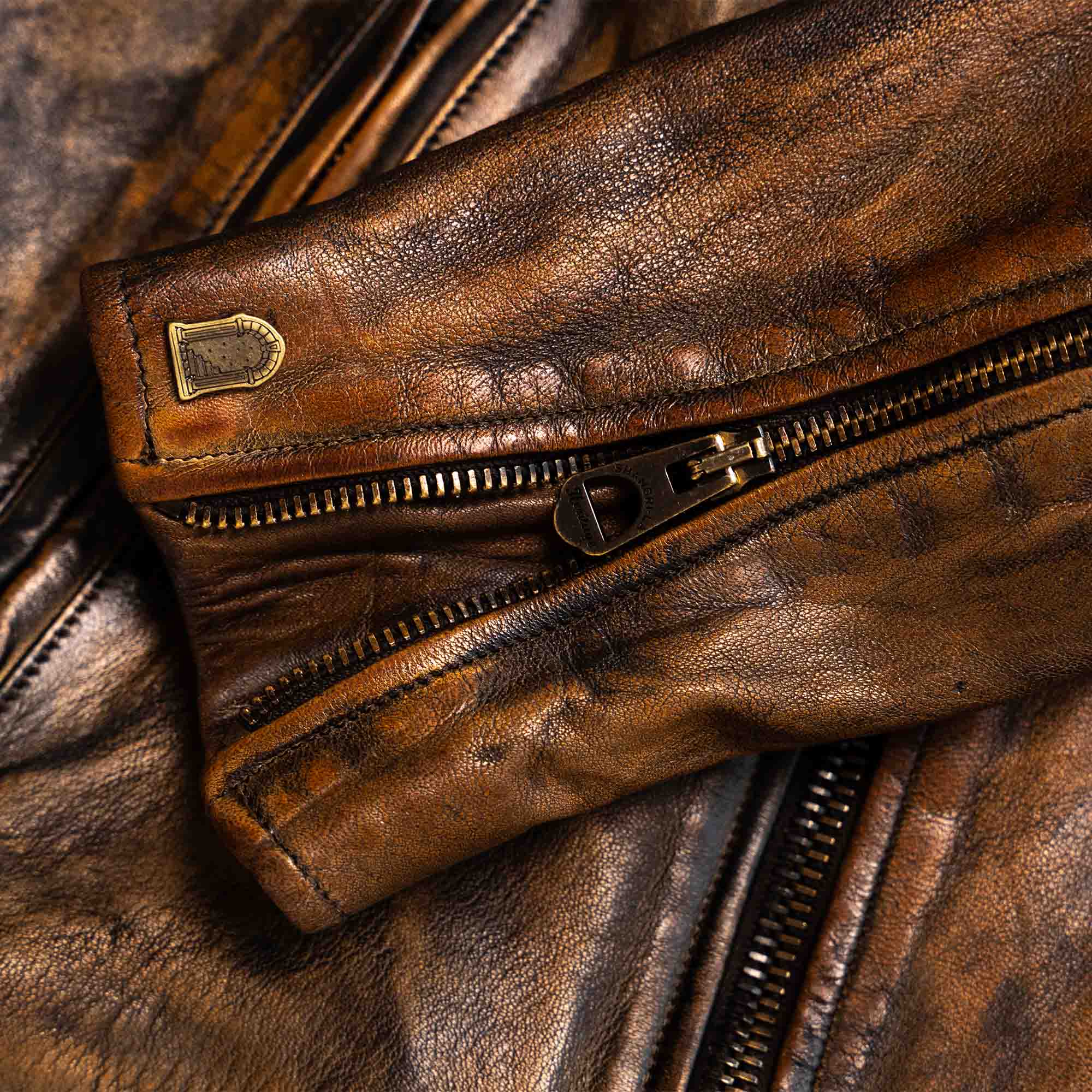 Inspired by late 70s Racing jackets and revisited with a unique Italian touch, the “Café Racer” Deserto Leather Jacket represents an authentic garment made of vegetable tanned full grain Lambskin from Tuscany (Italy) with “Deserto” Treatment, and “Espresso Coffee” color viscose lining.
