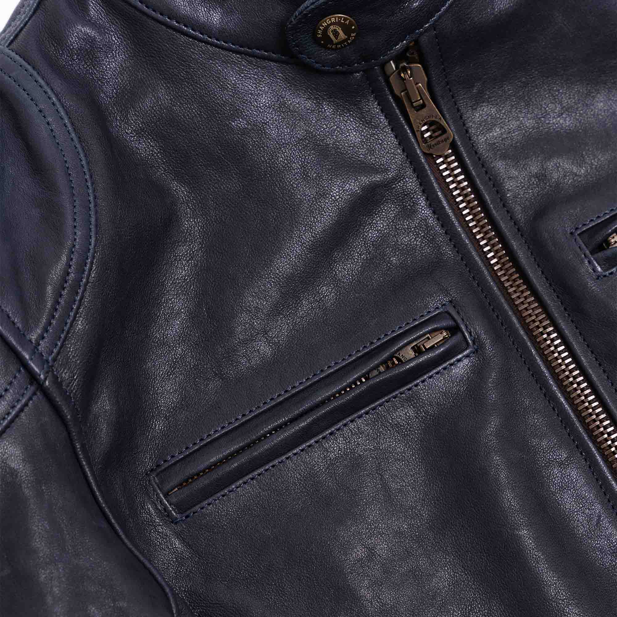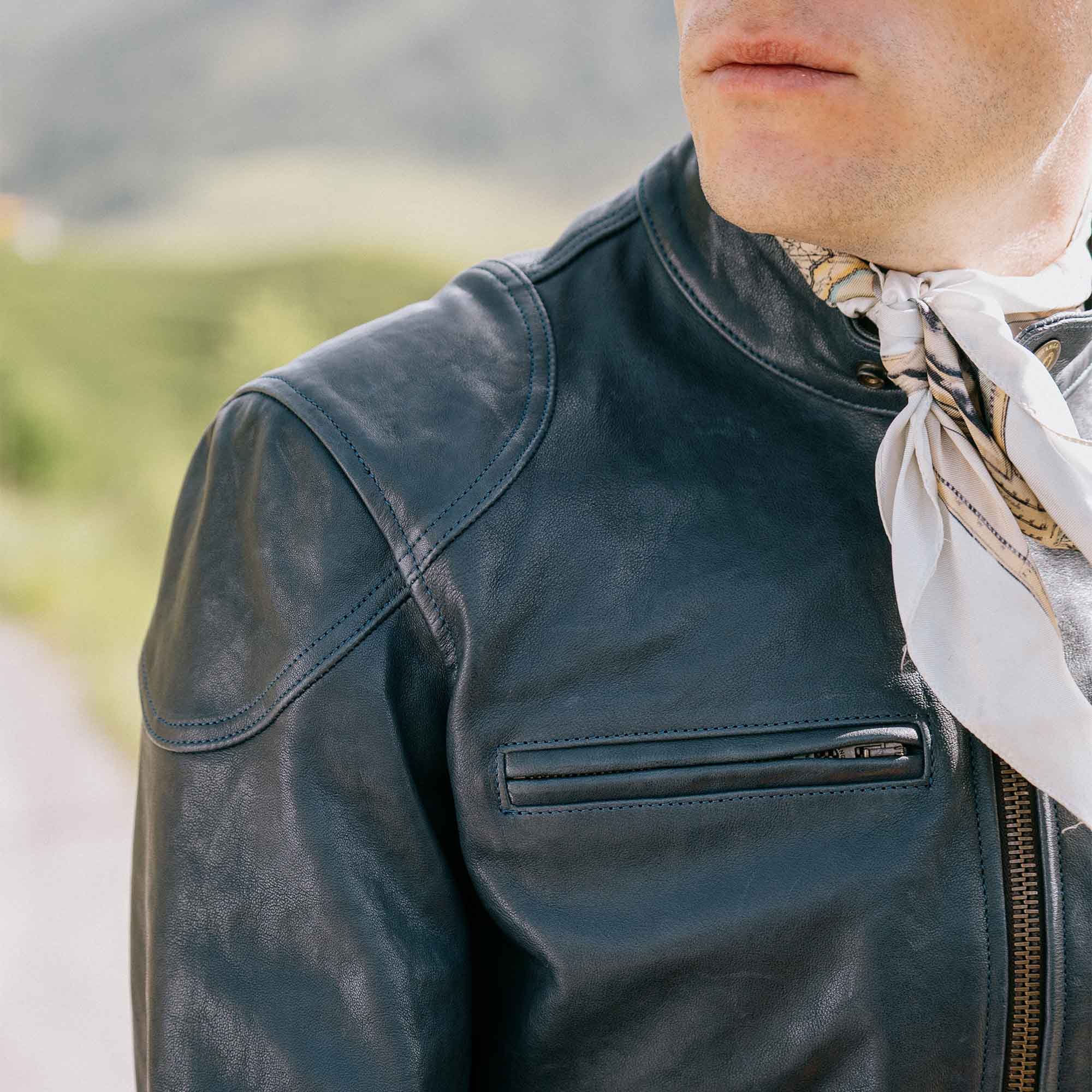 Inspired by late 70s Racing jackets and revisited with a unique Italian touch, the “Café Racer” represents an authentic garment made of vegetable tanned, drum dyed, full grain Lambskin from Tuscany (Italy) and “Espresso Coffee” color viscose lining.