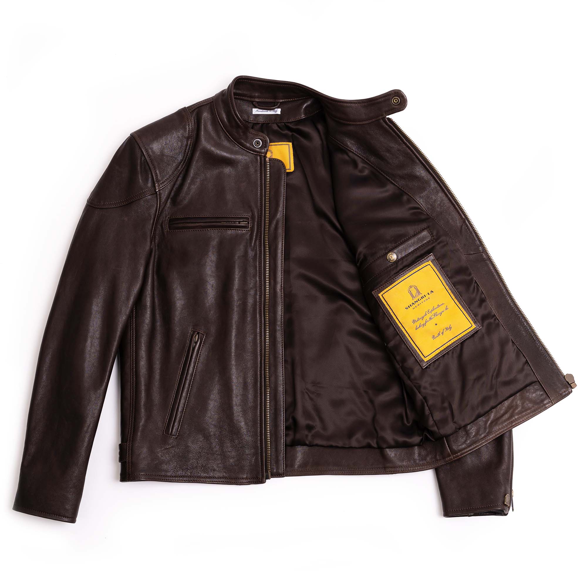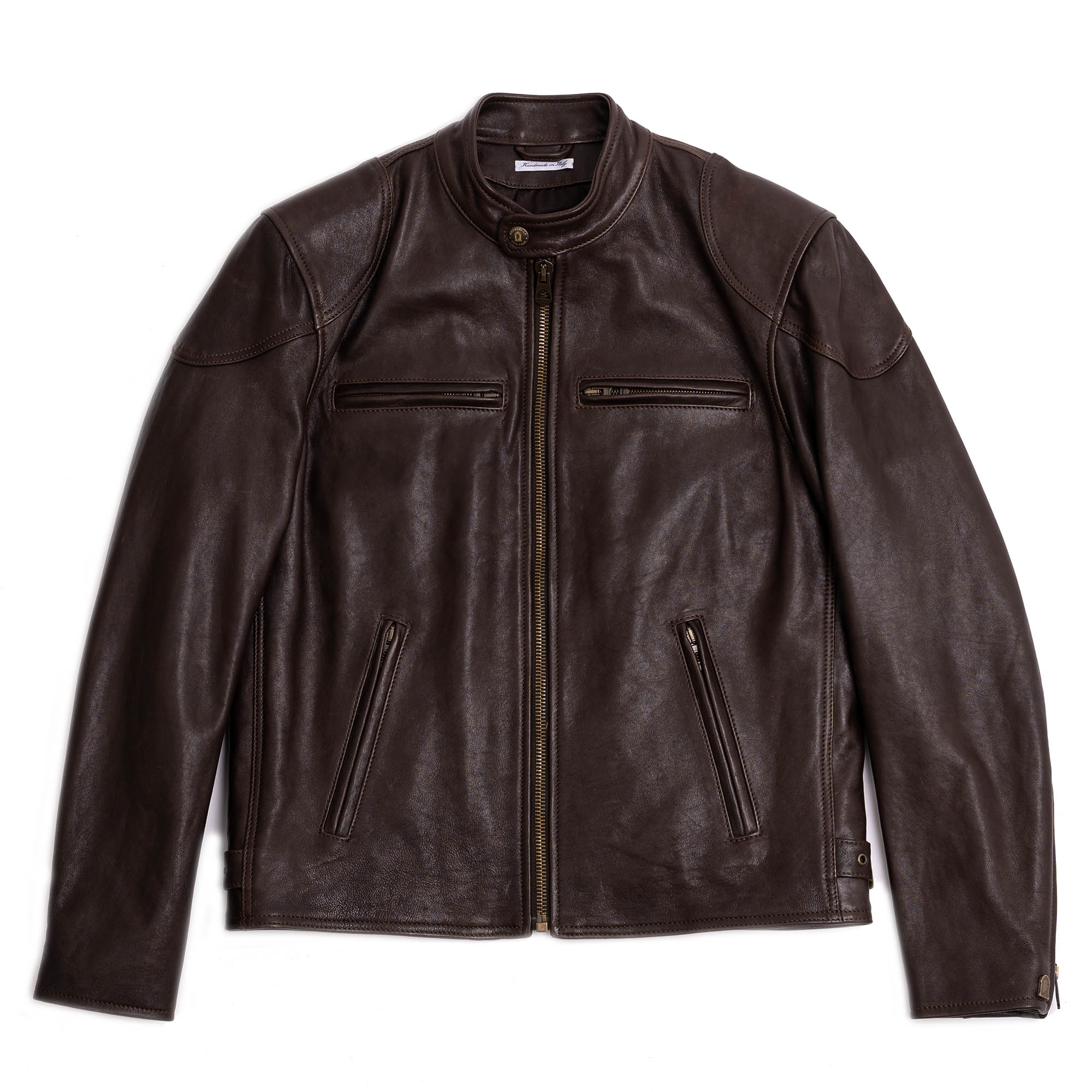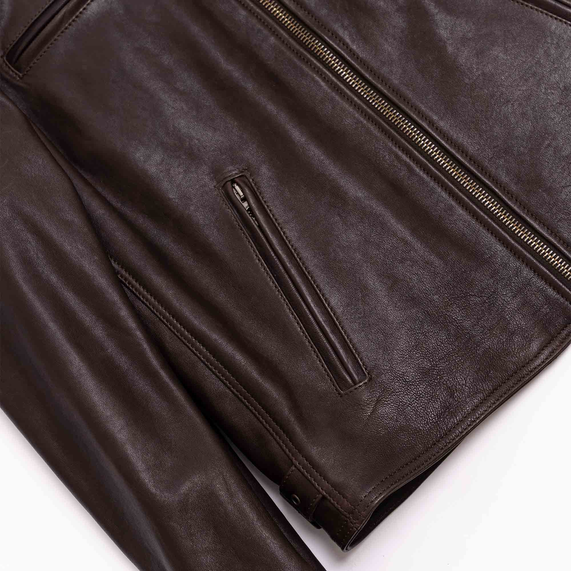 Inspired by late 70s Racing jackets and revisited with a unique Italian touch, the “Café Racer” represents an authentic garment made of vegetable tanned, drum dyed, full grain Lambskin from Tuscany (Italy) and “Espresso Coffee” color viscose lining.