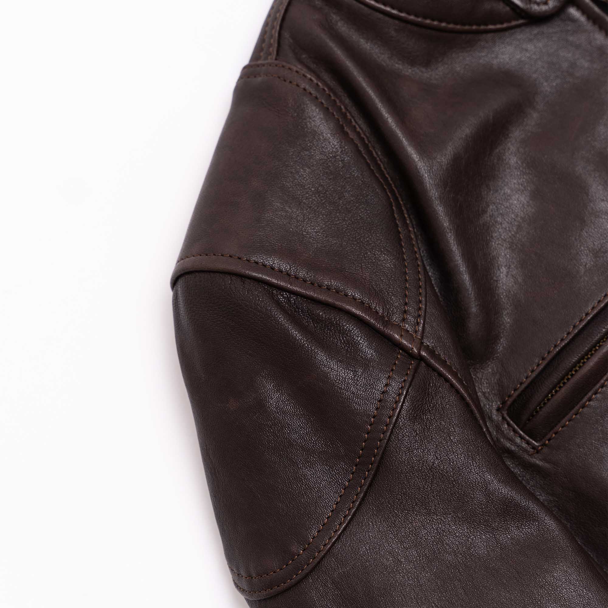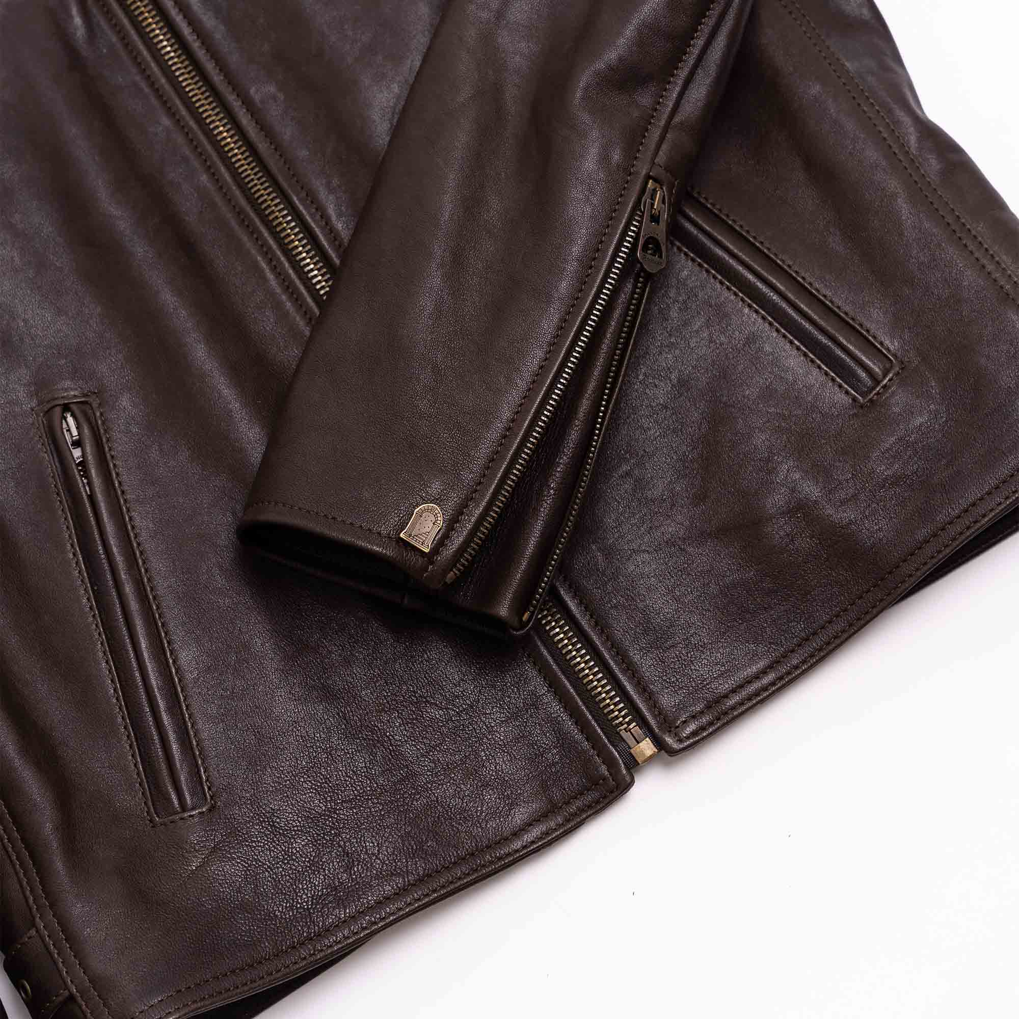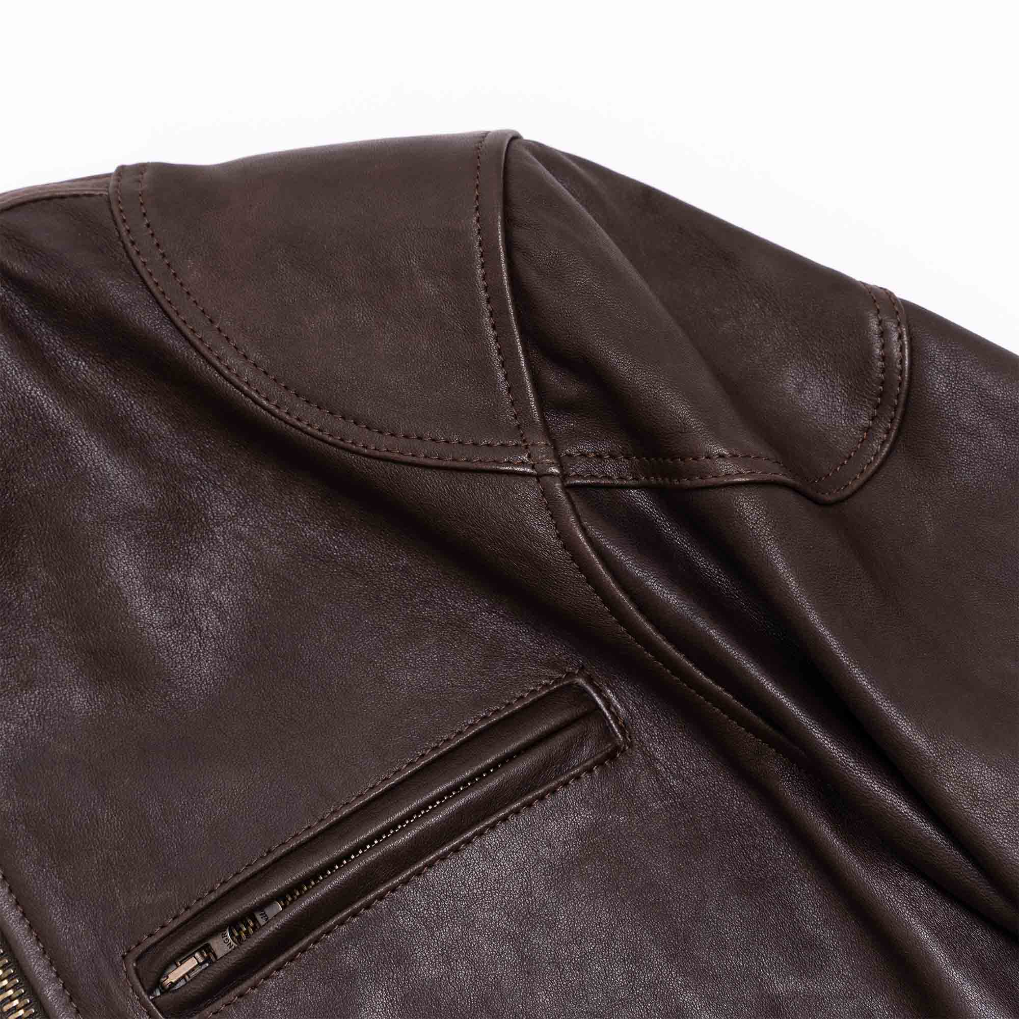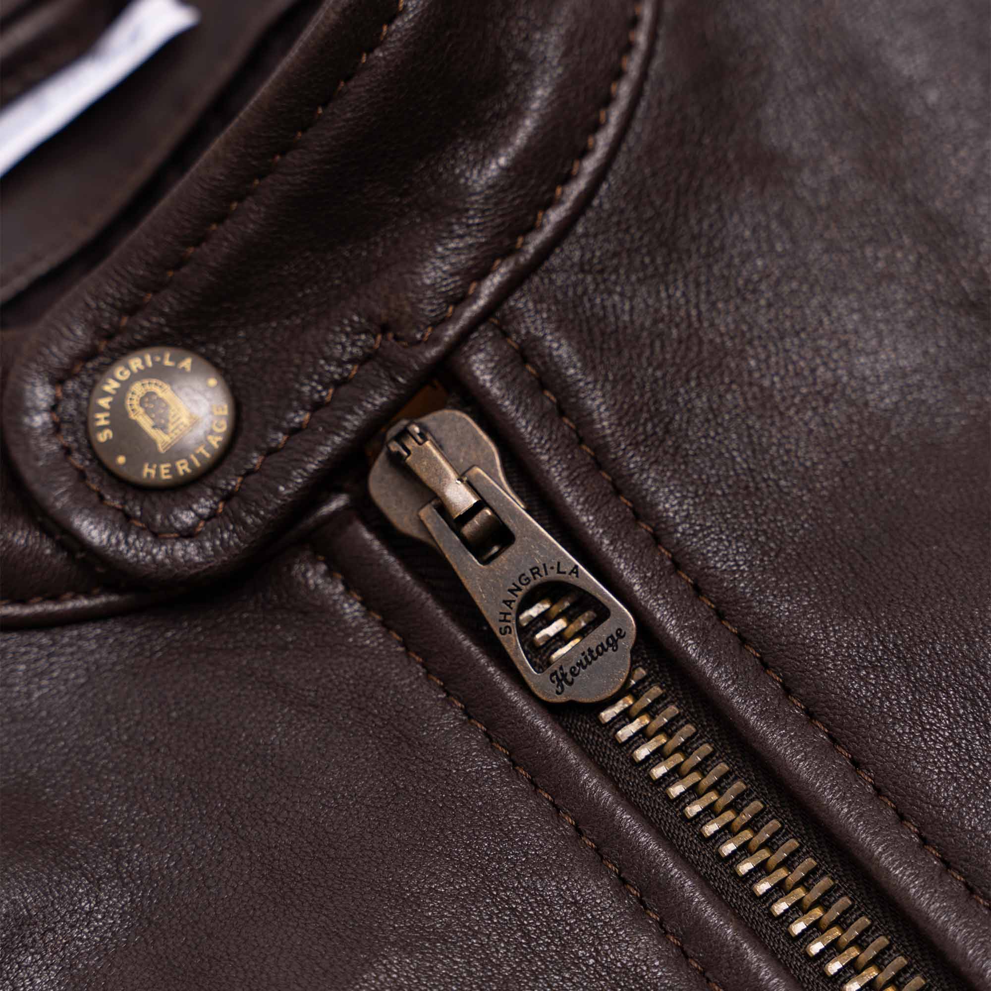 Inspired by late 70s Racing jackets and revisited with a unique Italian touch, the “Café Racer” represents an authentic garment made of vegetable tanned, drum dyed, full grain Lambskin from Tuscany (Italy) and “Espresso Coffee” color viscose lining.