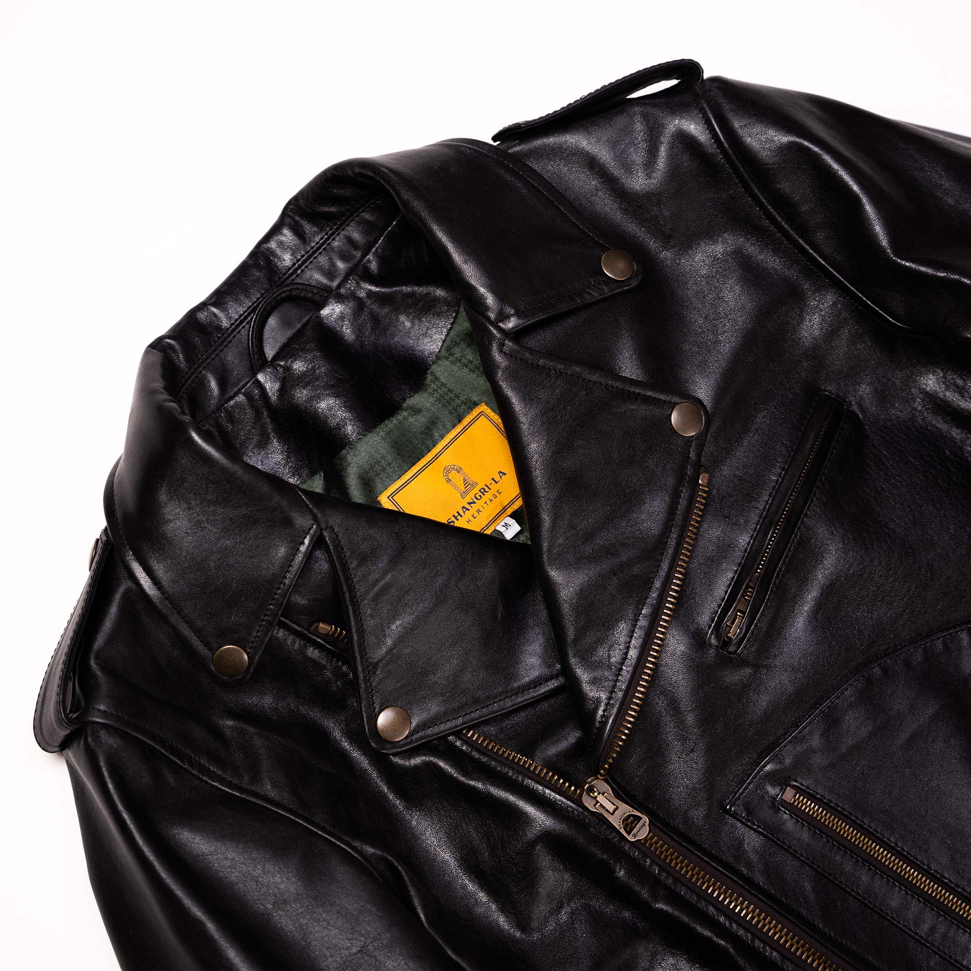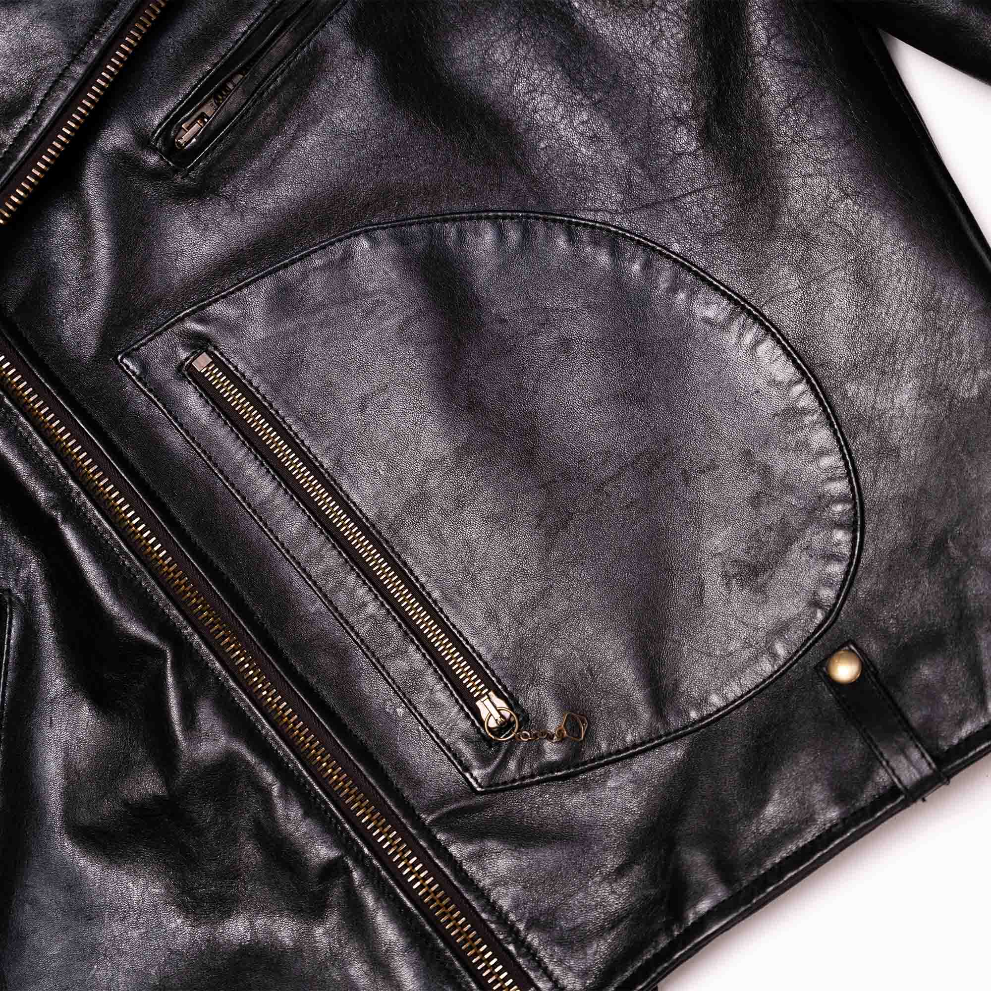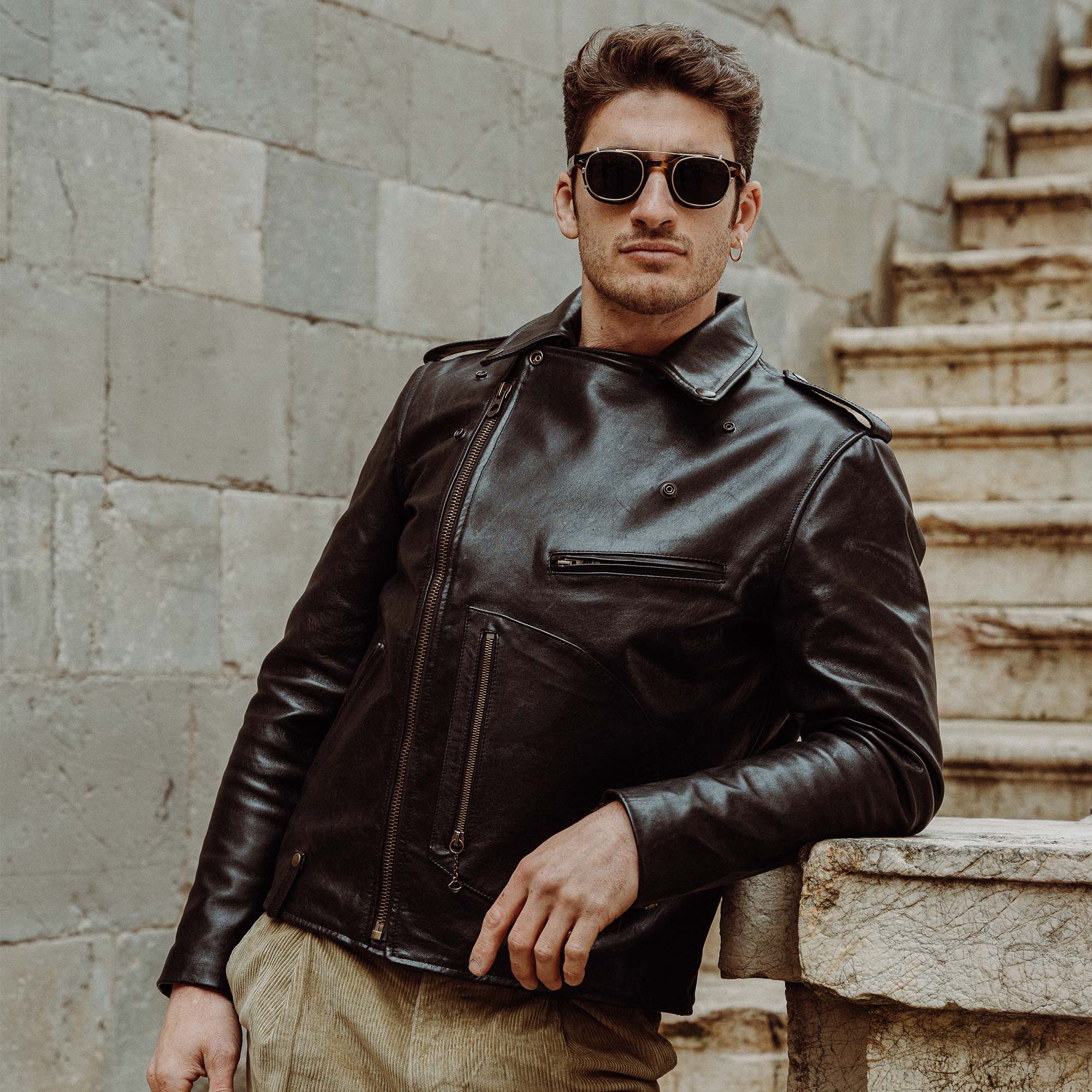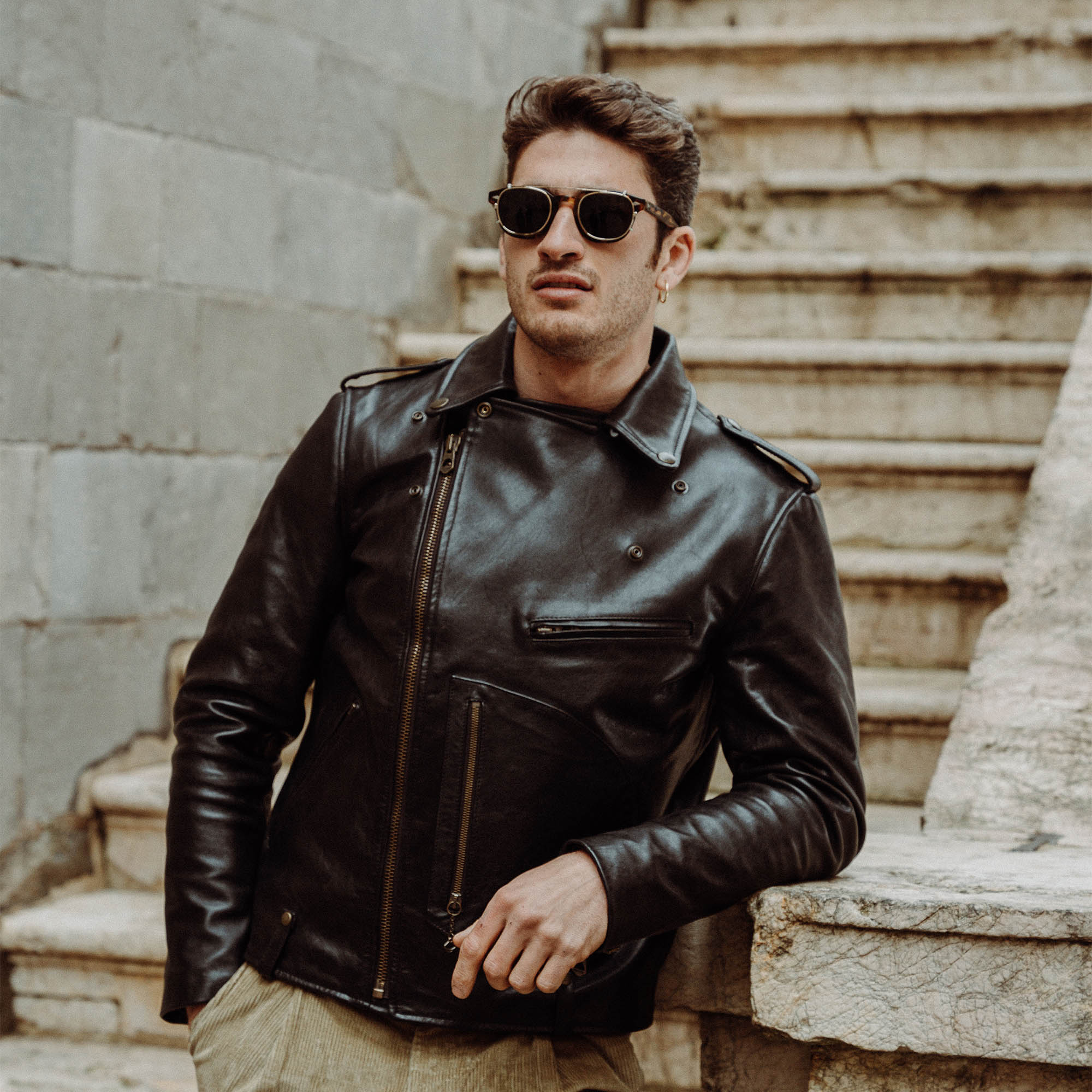 Inspired by 1950s Motorcycle jackets and revisited with a unique Italian touch, the “Chiodo” Black Horsehide Leather Jacket represents an authentic garment made of chrome tanned, drum dyed, full grain Horsehide from Vicenza (Italy).