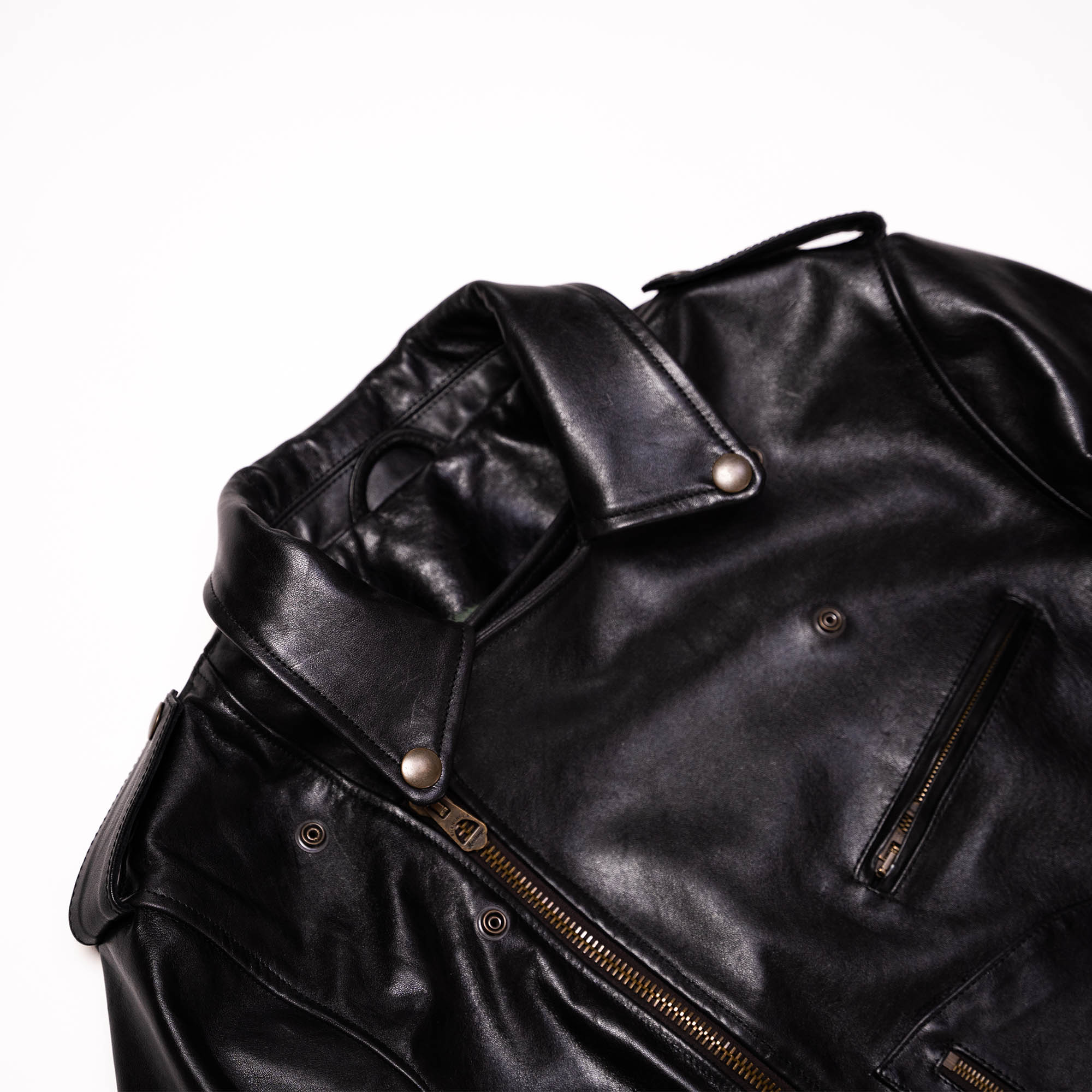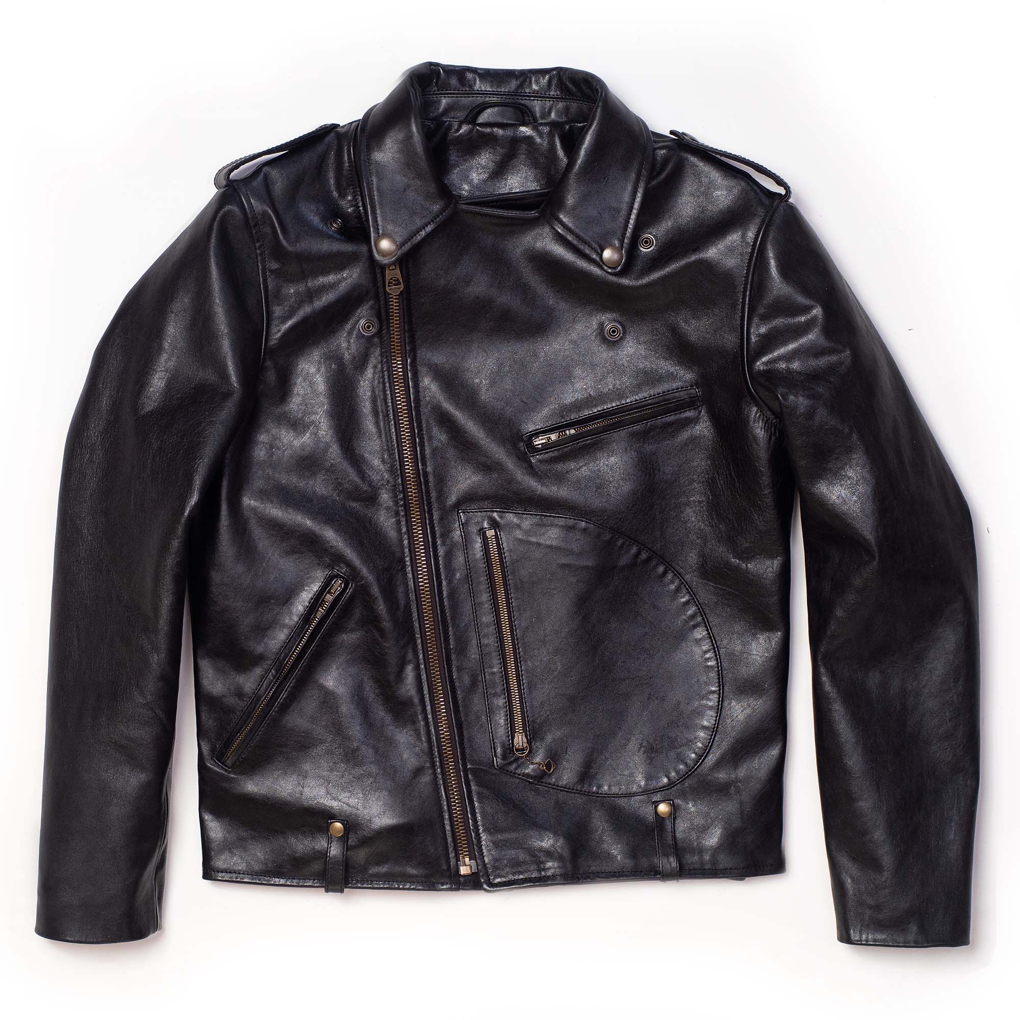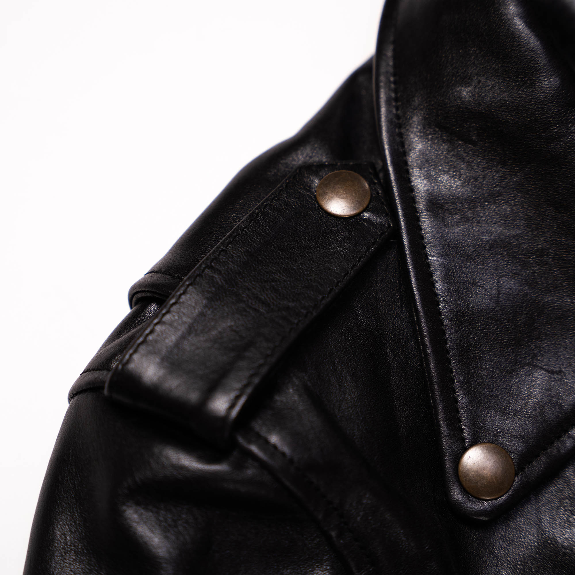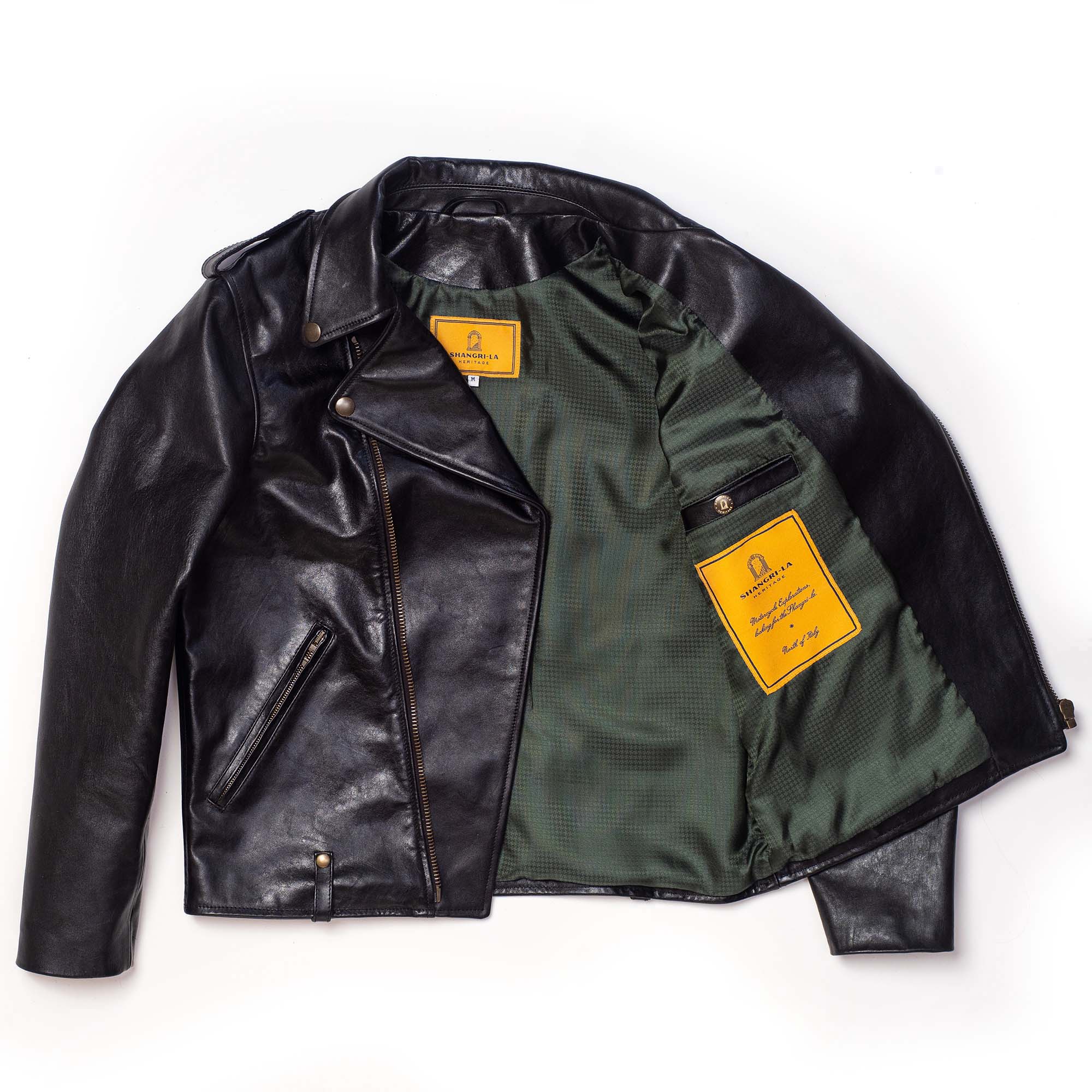 Inspired by 1950s Motorcycle jackets and revisited with a unique Italian touch, the “Chiodo” Black Horsehide Leather Jacket represents an authentic garment made of chrome tanned, drum dyed, full grain Horsehide from Vicenza (Italy).