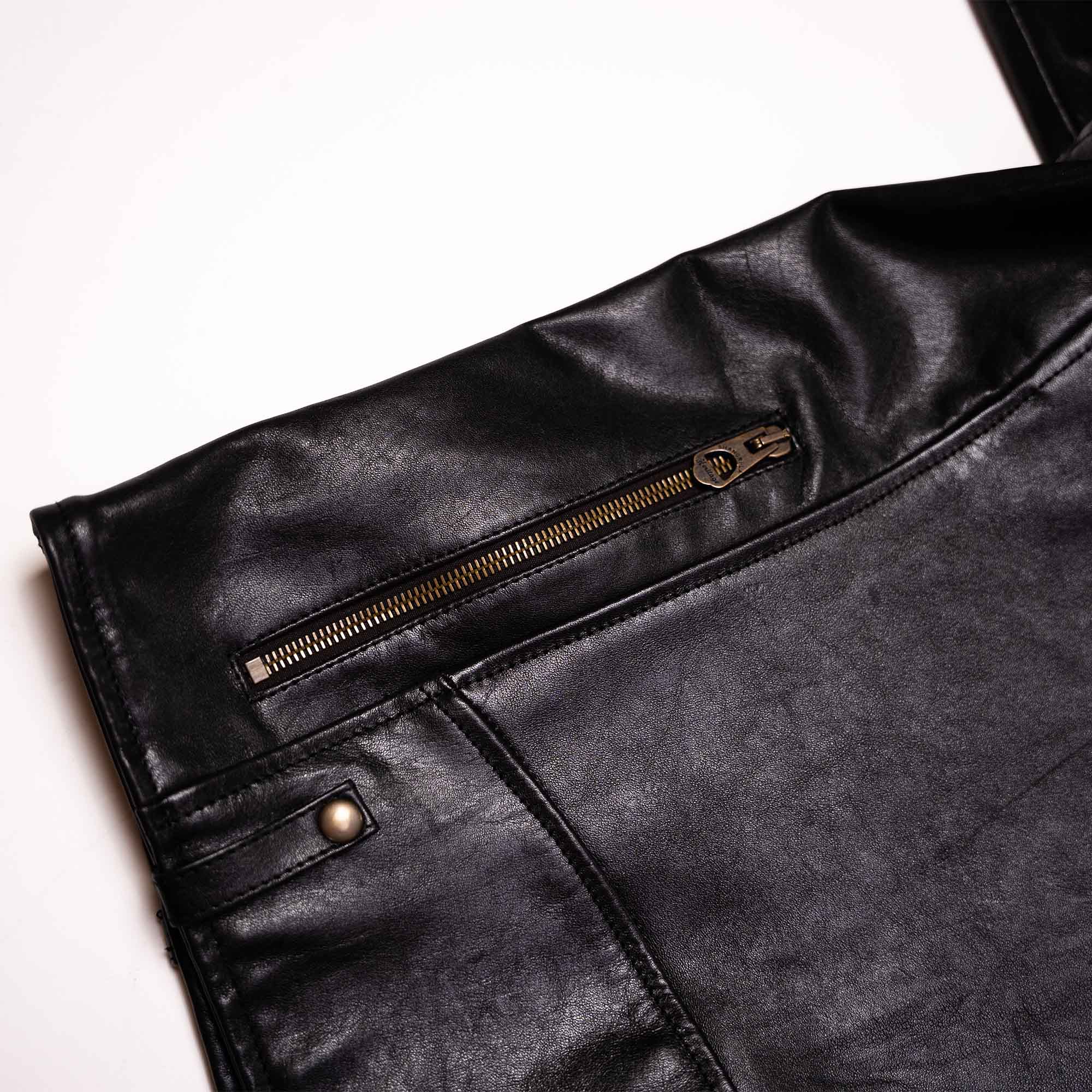 A double-breasted front provides an additional layer of protection to the chest, with a storm flap designed to keep water away from the body, protecting every Rider on the Storm. The most distinctive feature of the jacket, however, remains the legendary D-Pocket, also known as the “Gun,” or “Map” pocket.