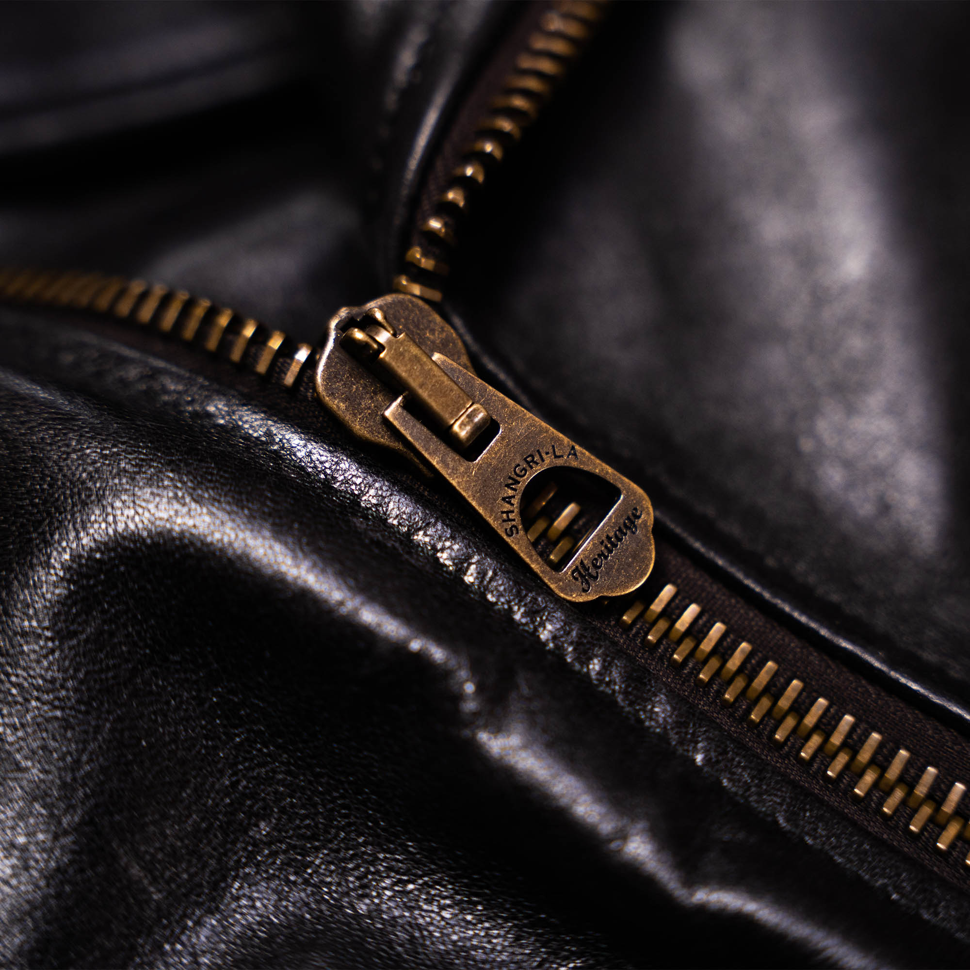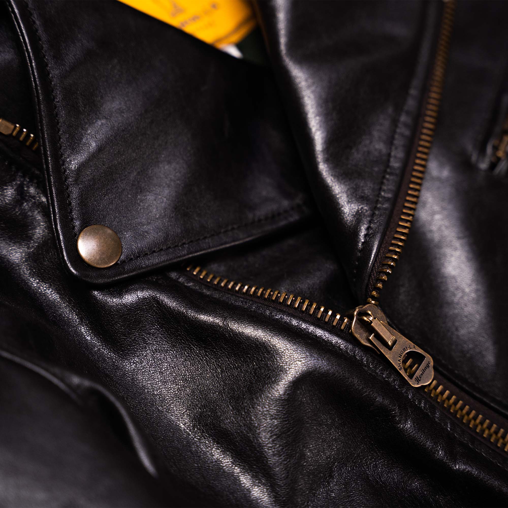 The Full Grain Horsehide from Vicenza (Italy) is first grade horsehide with a ton of character and deep richness. It ages beautifully, developing fantastic fades, creases and patina. Thickness is around 1,1mm, making the Chiodo an outstanding and high-end premium jacket.