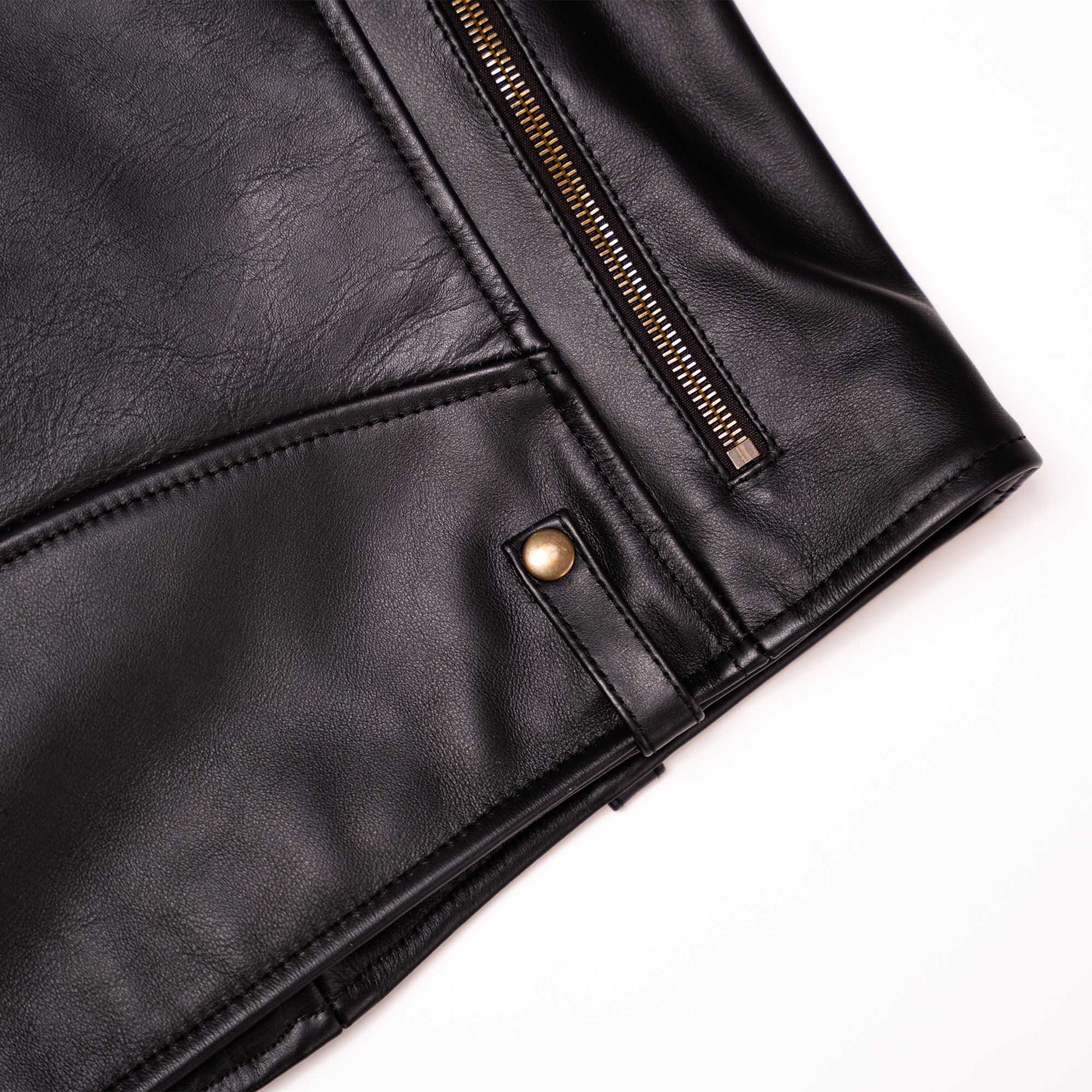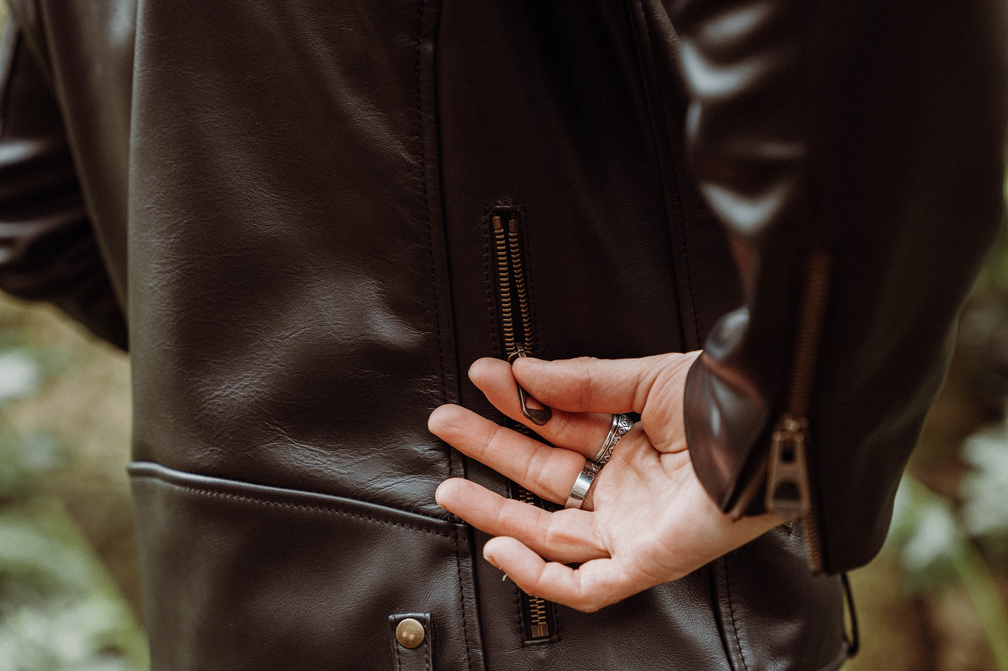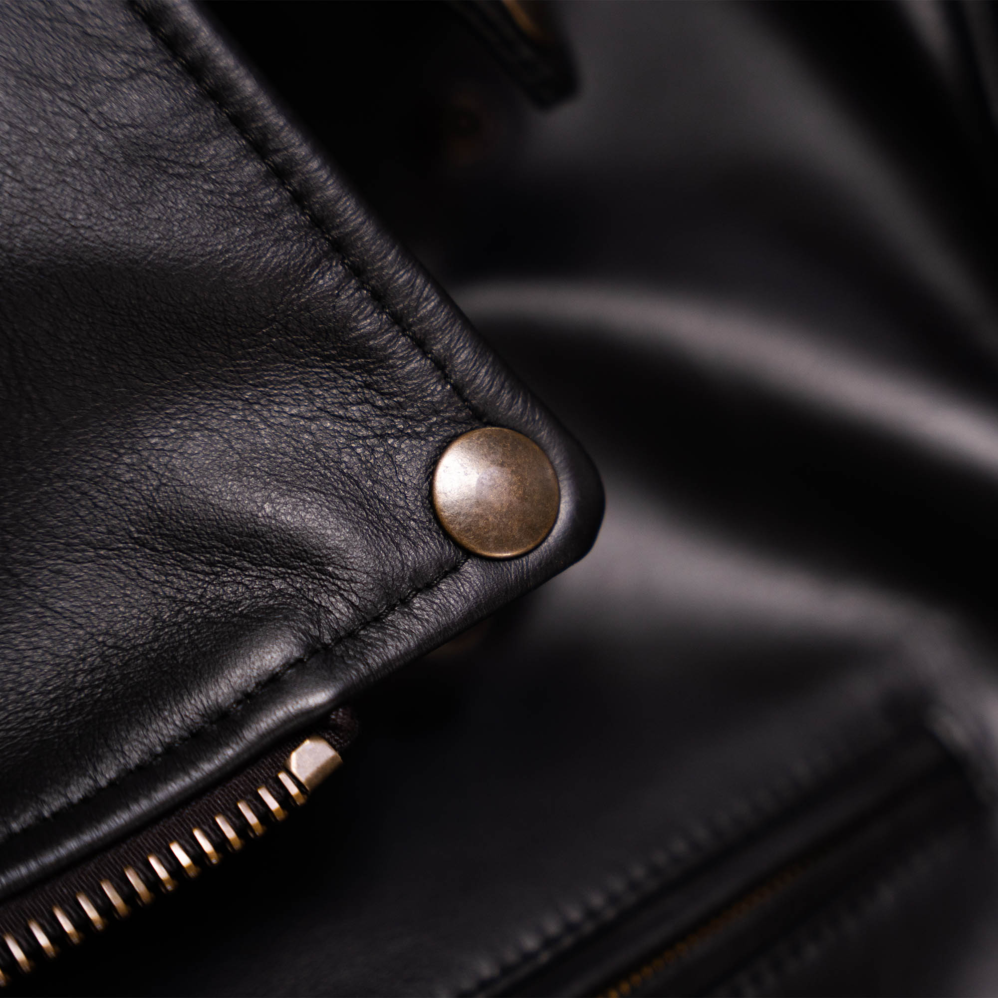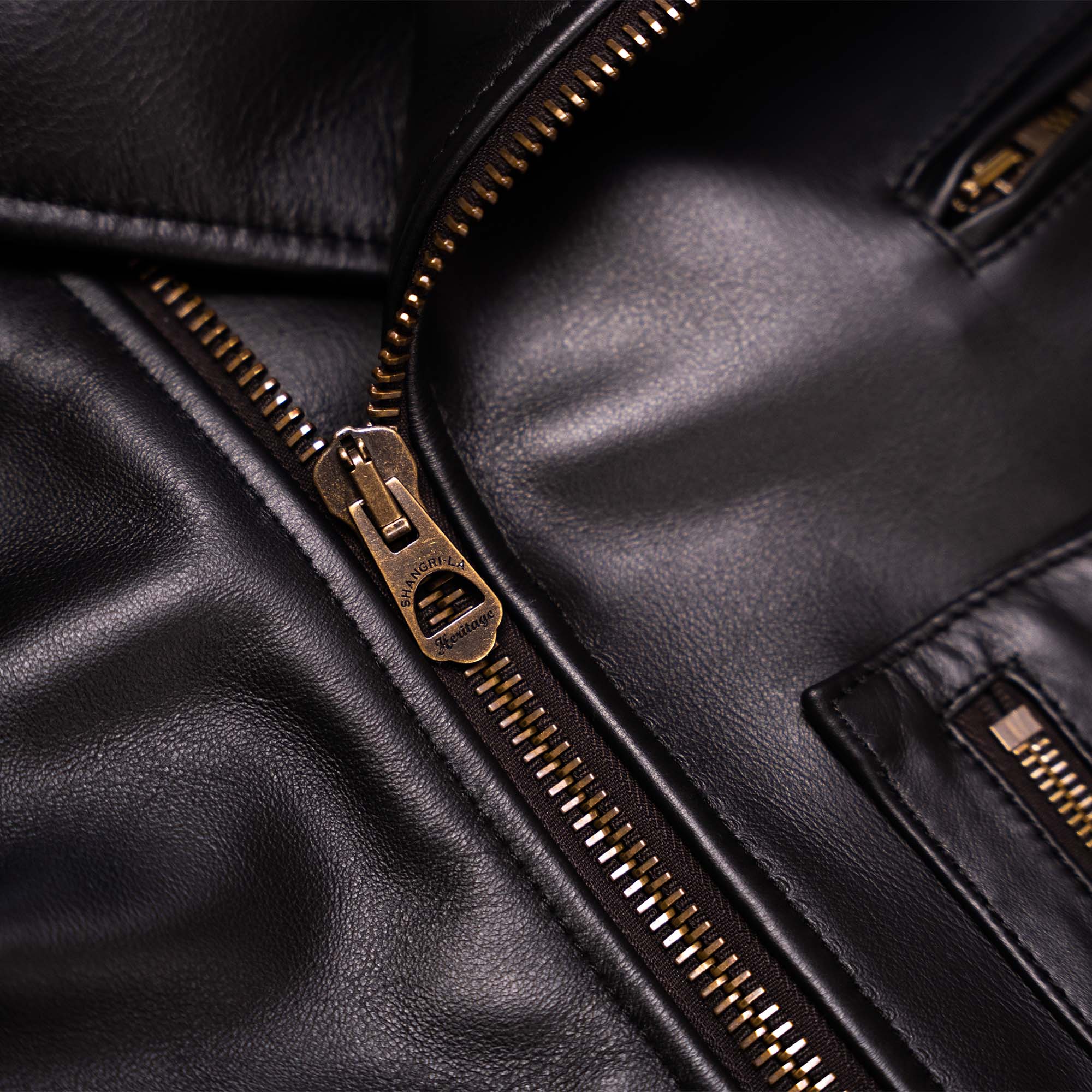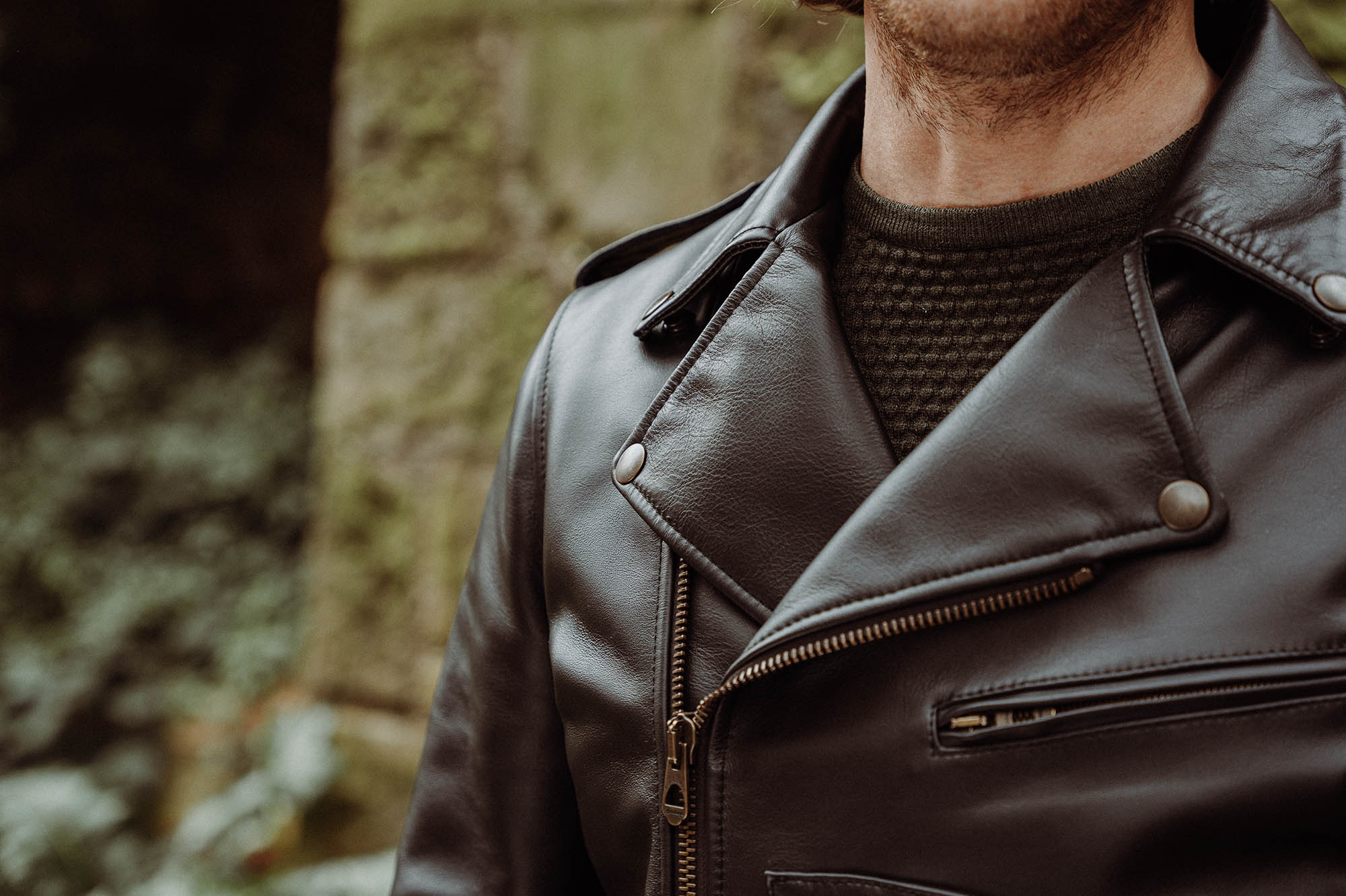 The Full Grain Steerhide from Vicenza (Italy) is a high quality steerhide that ages beautifully, developing fantastic fades that reveal unique undertones. Thickness is around 1,1mm, making the Chiodo a durable and high-end premium jacket.