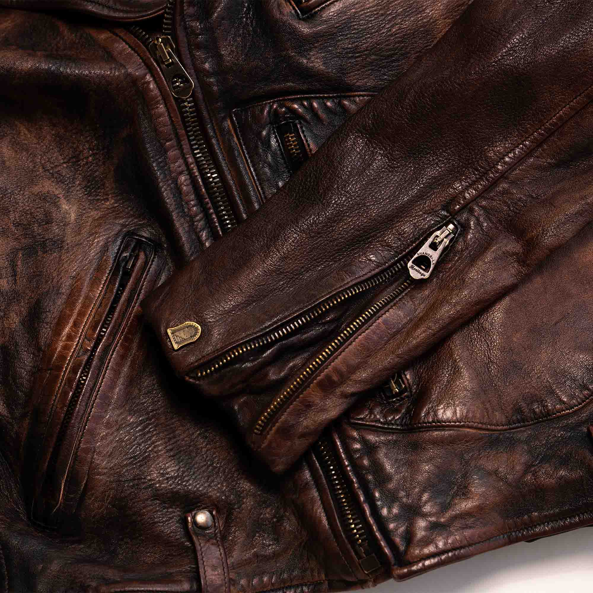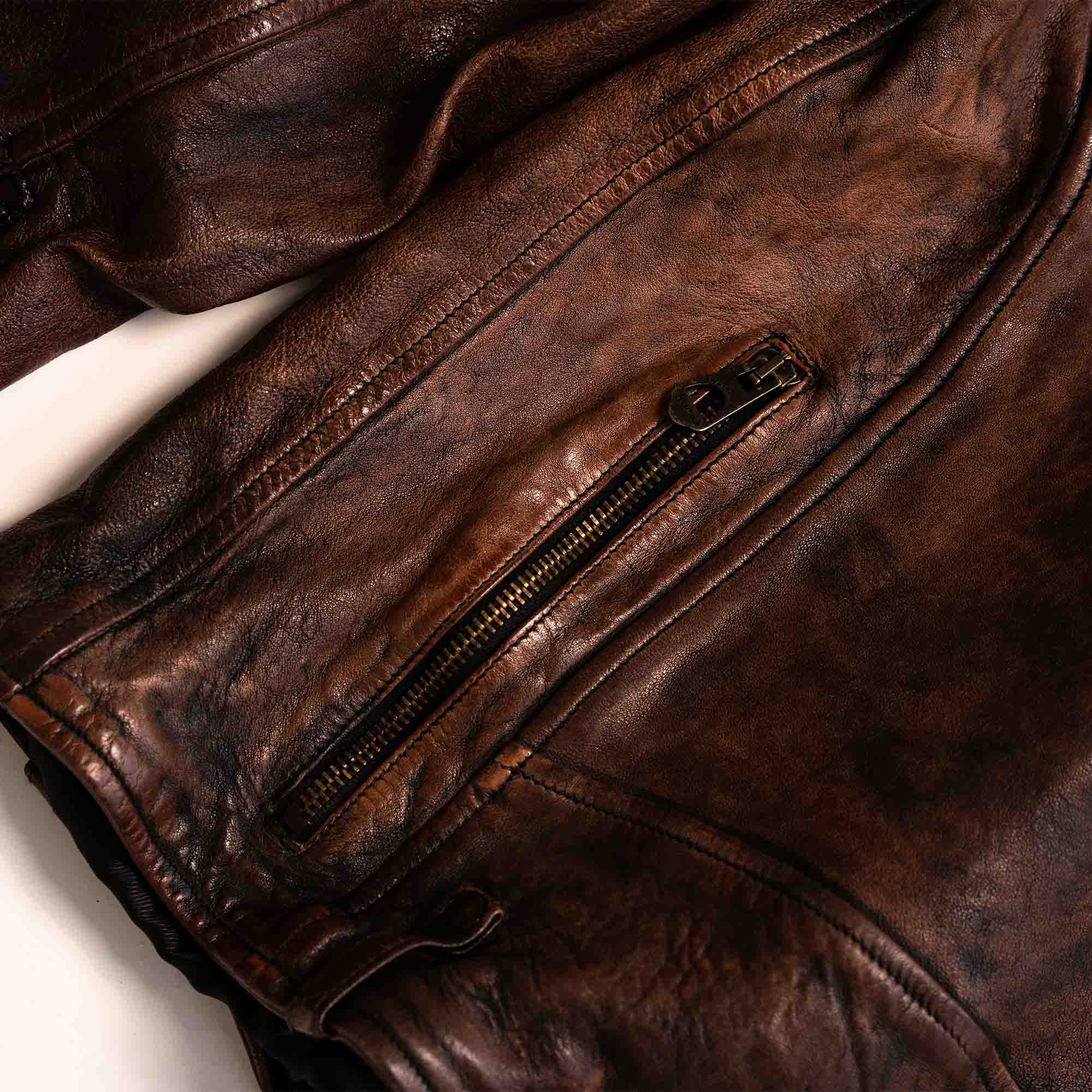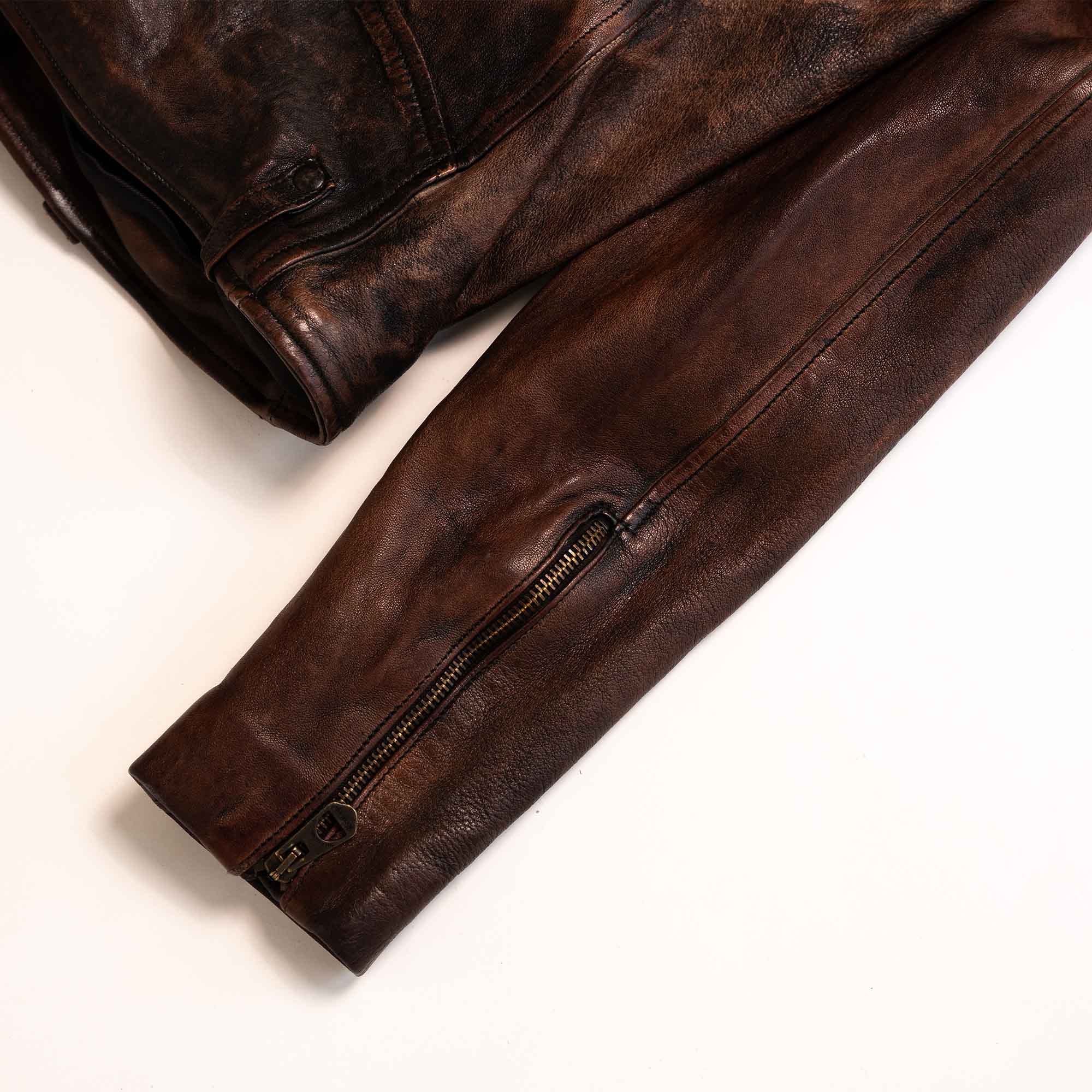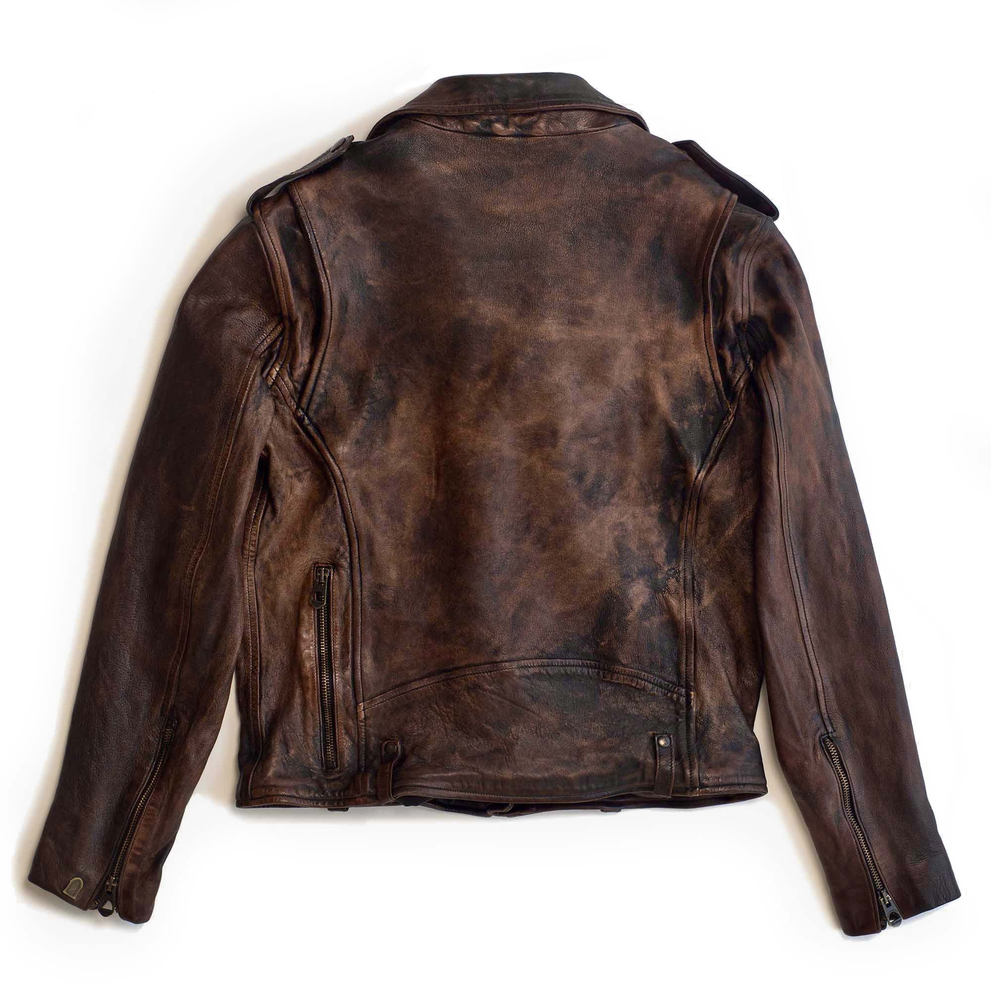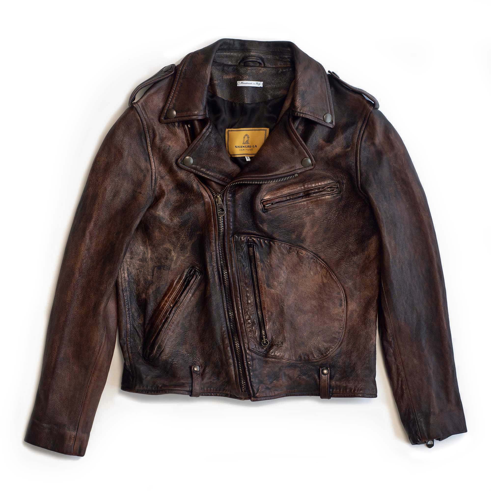 Inspired by late 50s Motorcycle jackets and revisited with a unique Italian touch, the “Chiodo” Bruciato Leather Jacket represents an authentic garment made of vegetable tanned full grain Lambskin from Tuscany (Italy) with “Bruciato” Treatment, and “Espresso Coffee” color viscose lining.