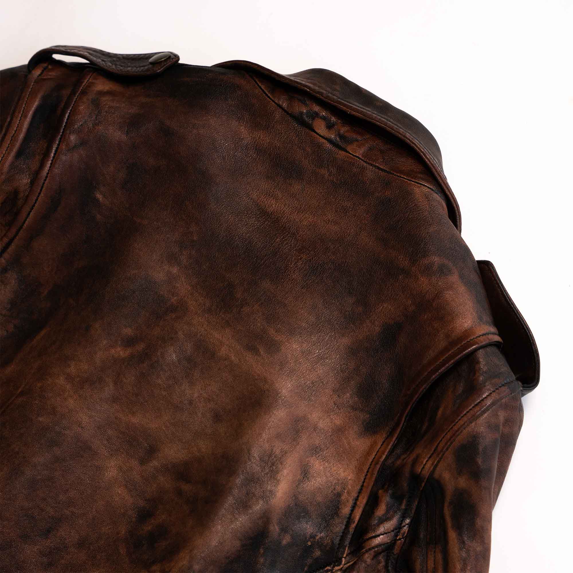 The “Bruciato” Treatment is entirely made by hand by Italian Artisans. Starting from selected Natural Veg Tanned Raw Hides, the Leather has been Dyed, Soaked, Brushed and Distressed to give it a real antique worn look.