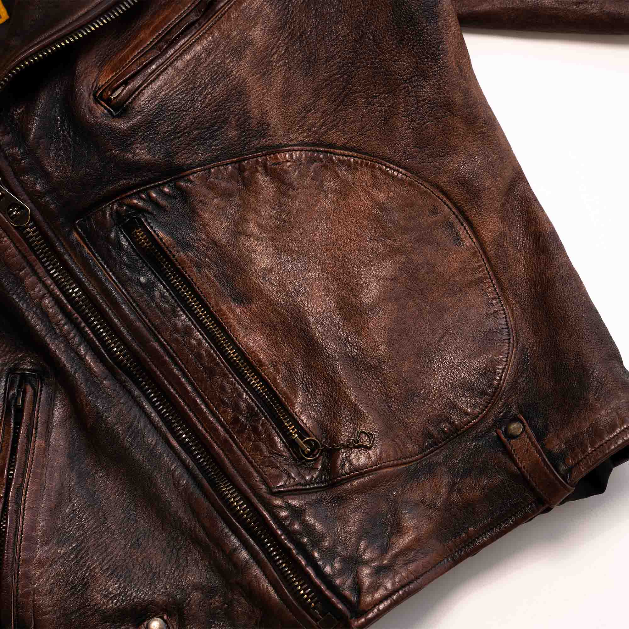 A double-breasted front provides an additional layer of protection to the chest, with a storm flap designed to keep water away from the body, protecting every Rider on the Storm. The most distinctive feature of the jacket, however, remains the legendary D-Pocket, also known as the “Gun,” or “Map” pocket.