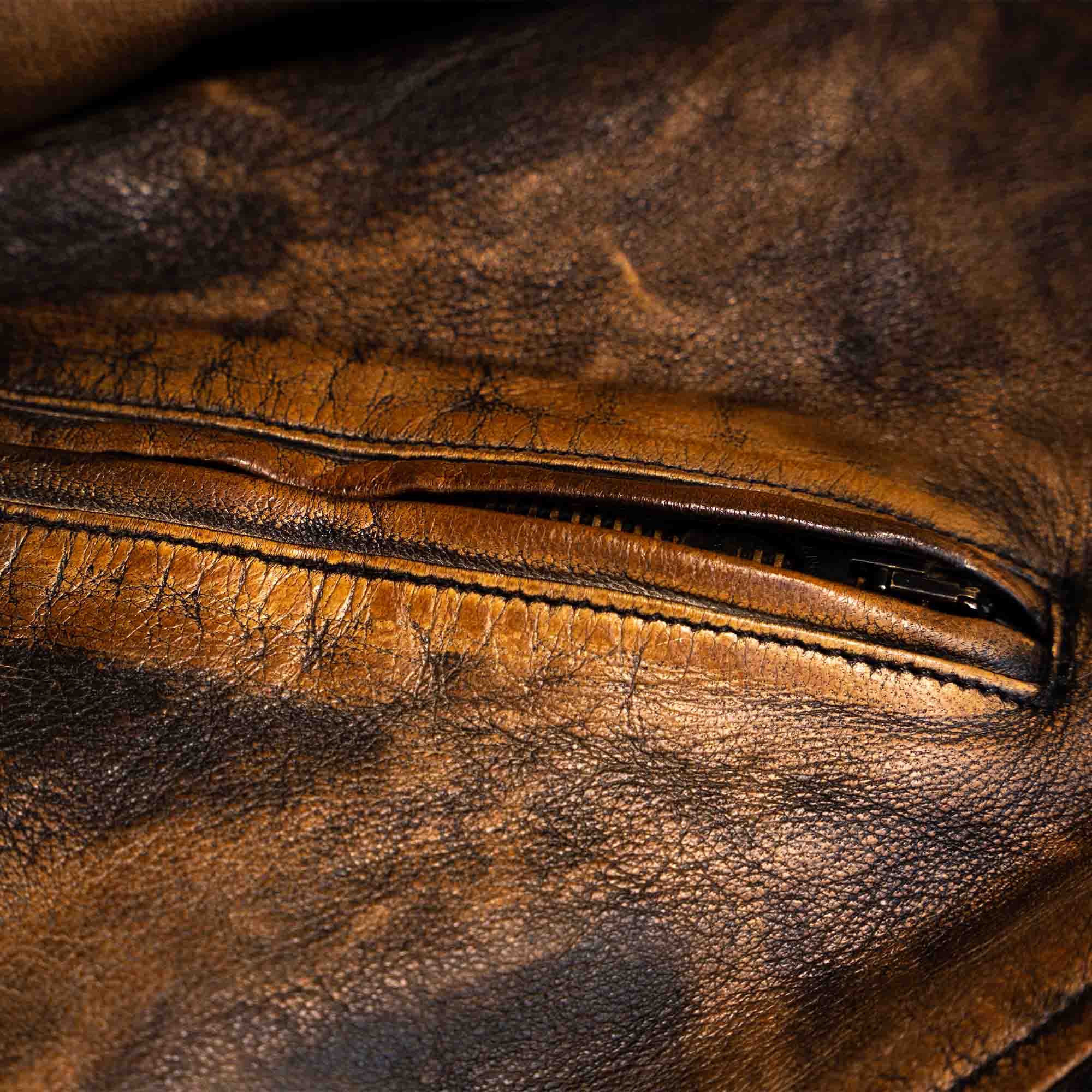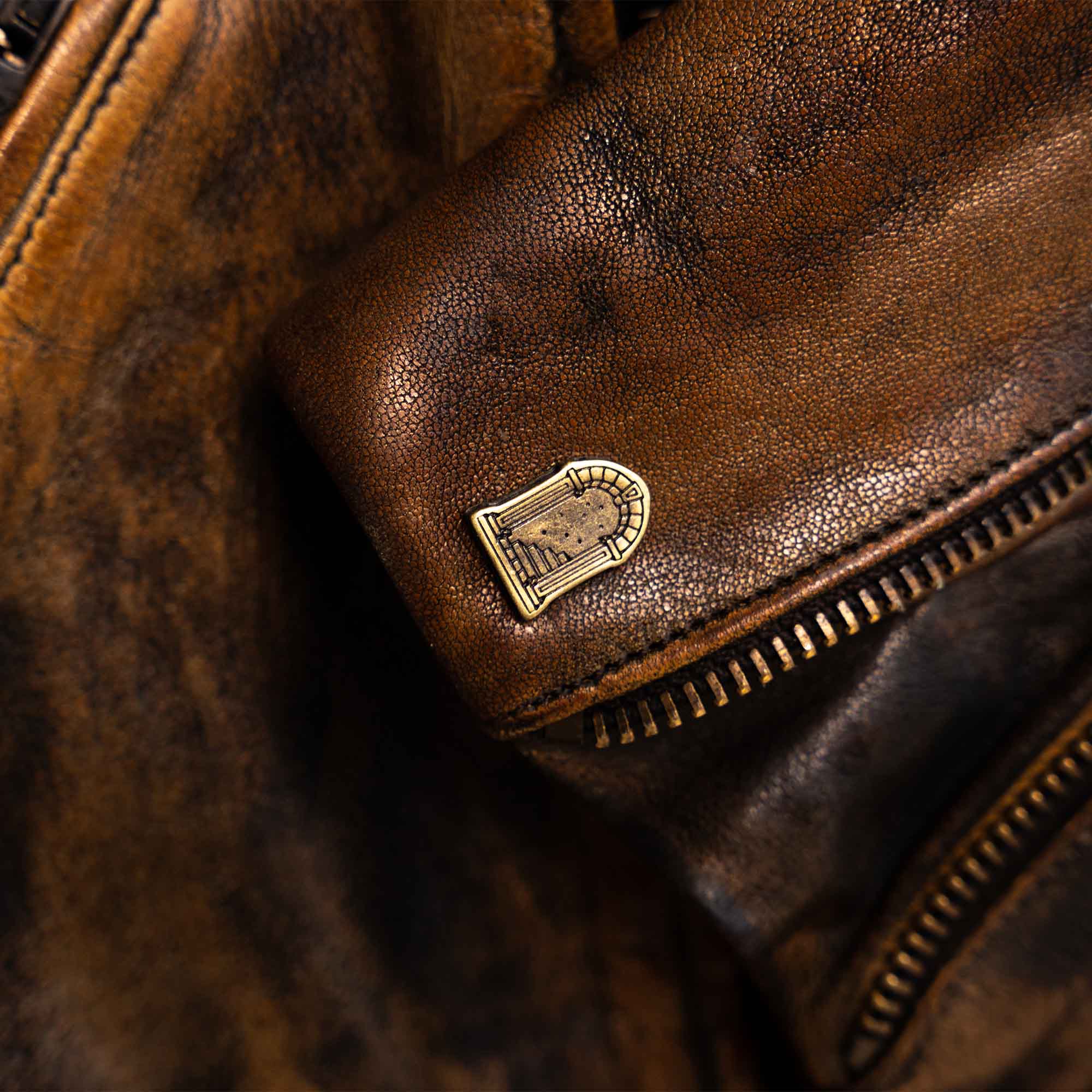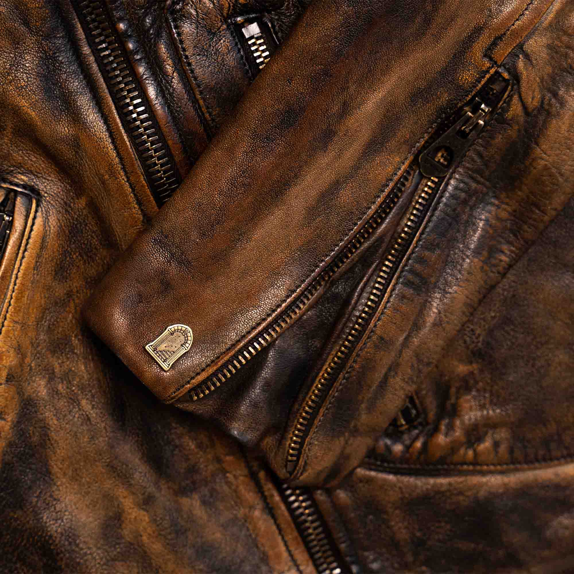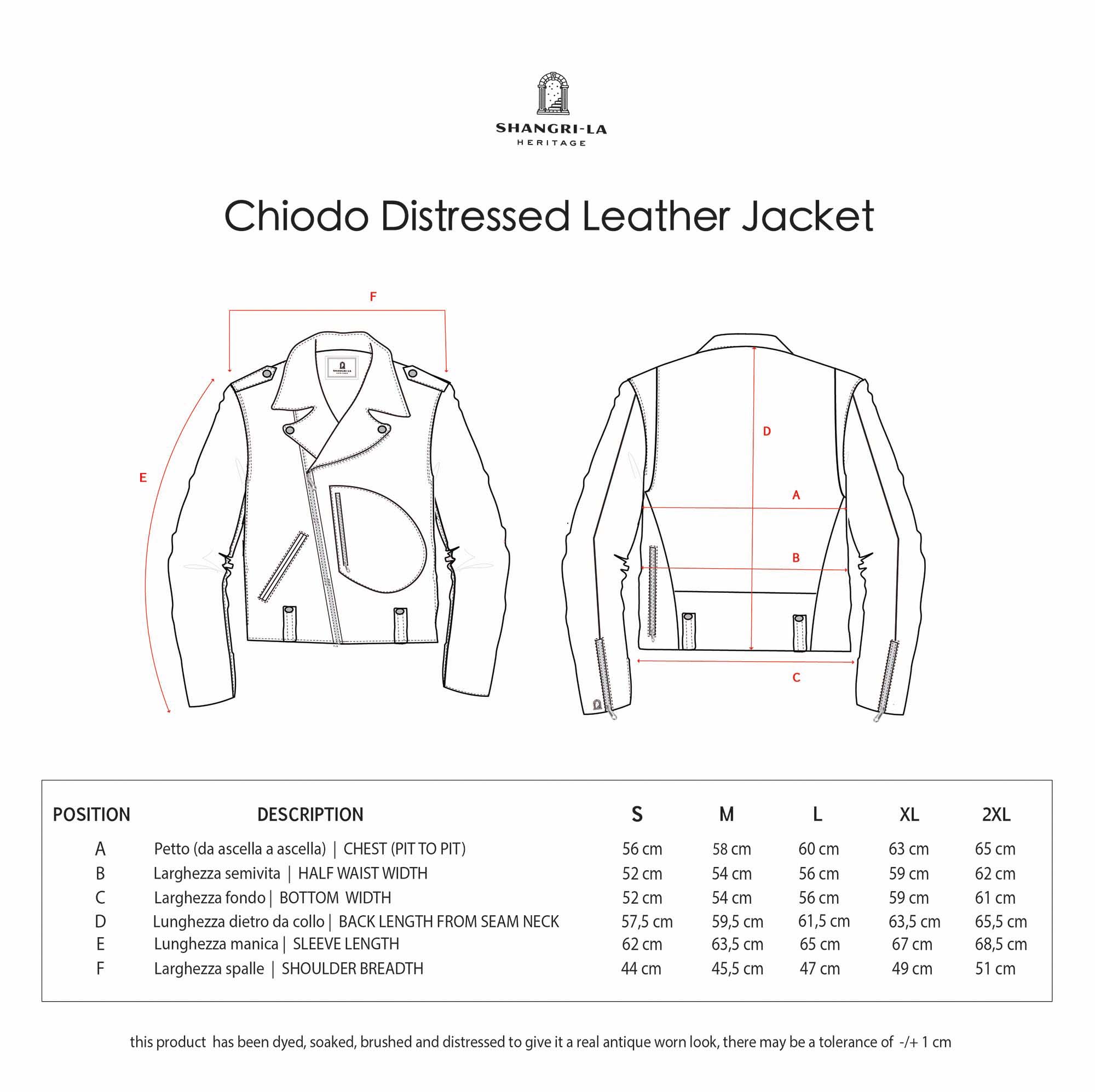 Inspired by late 50s Motorcycle jackets and revisited with a unique Italian touch, the “Chiodo” Deserto Leather Jacket represents an authentic garment made of vegetable tanned full grain Lambskin from Tuscany (Italy) with “Deserto””+ Treatment, and “Espresso Coffee” color viscose lining.