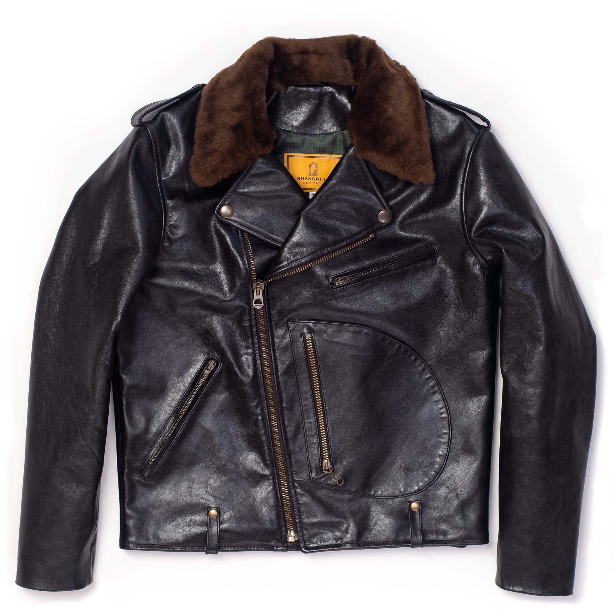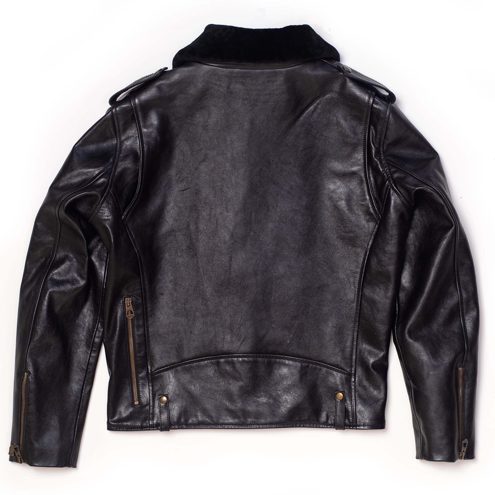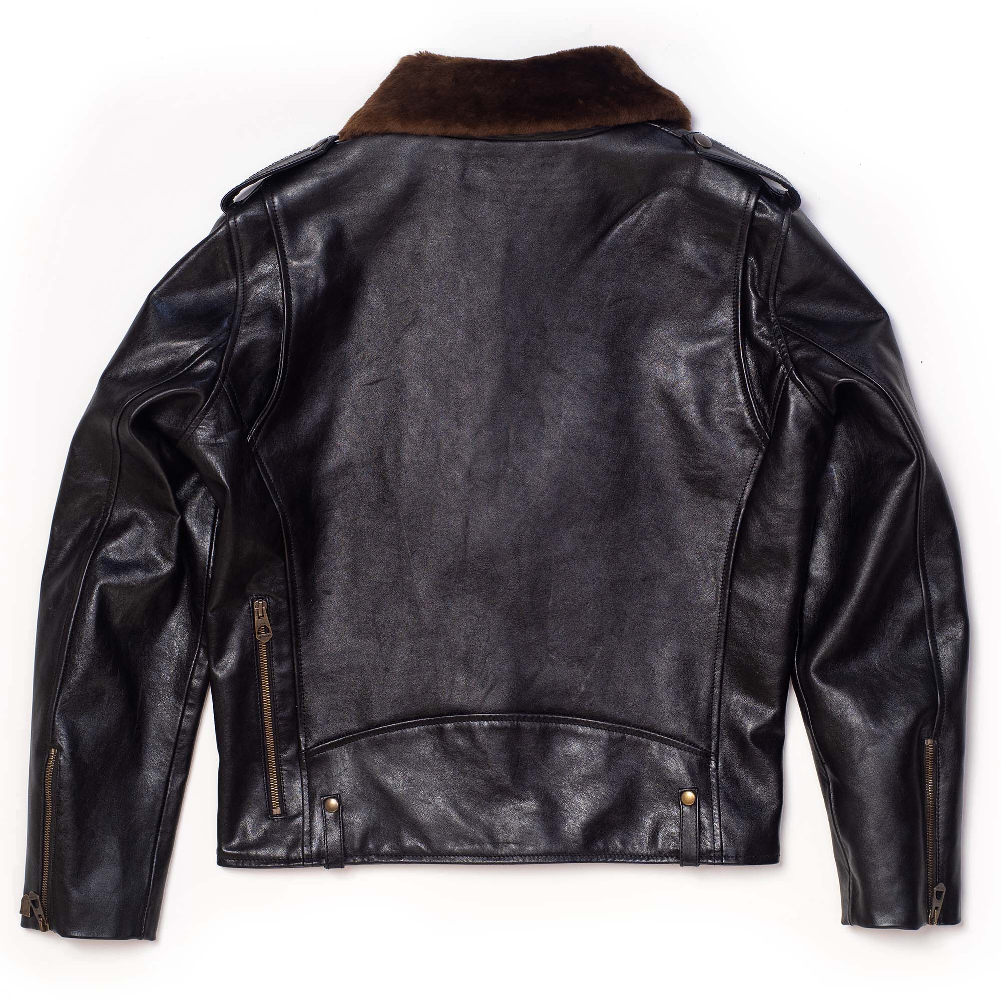 Inspired by 1950s Motorcycle jackets and revisited with a unique Italian touch, the “Chiodo” Black Horsehide Leather Jacket represents an authentic garment made of chrome tanned, drum dyed, full grain Horsehide from Vicenza (Italy), with a removable Fur Collar in Italian Shearling Sheepskin.