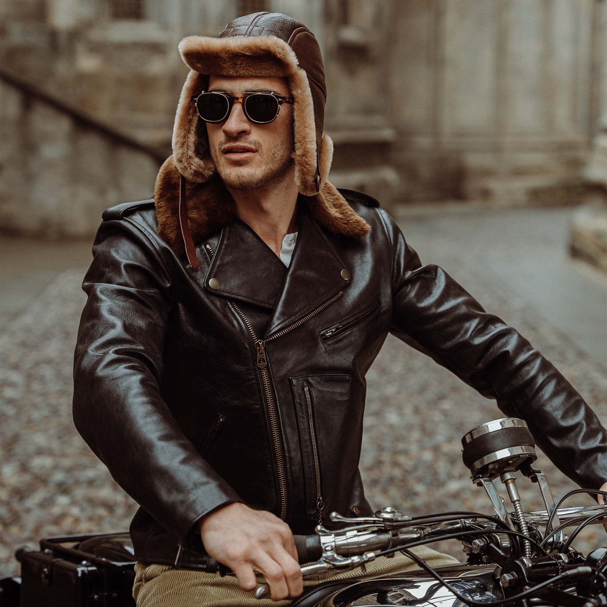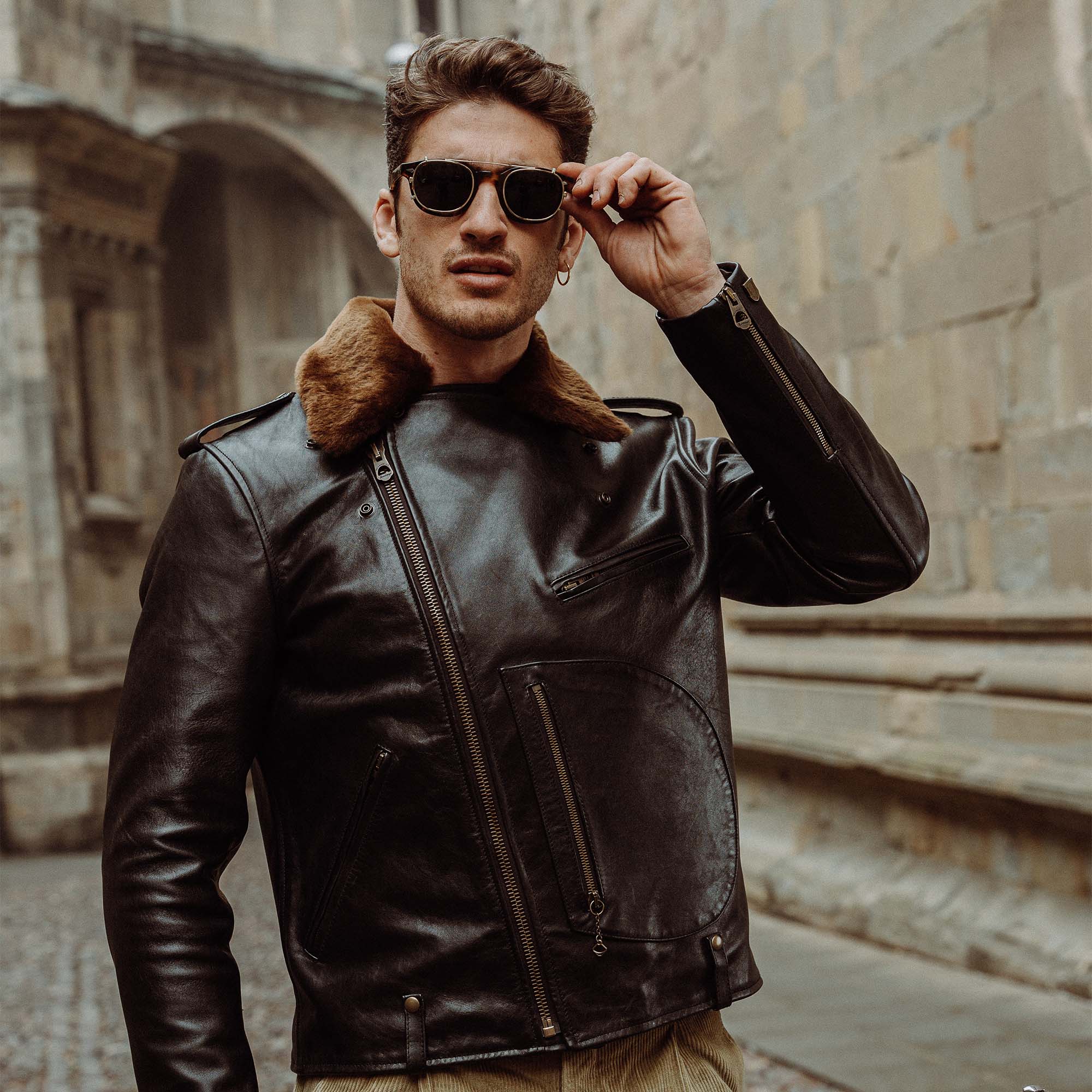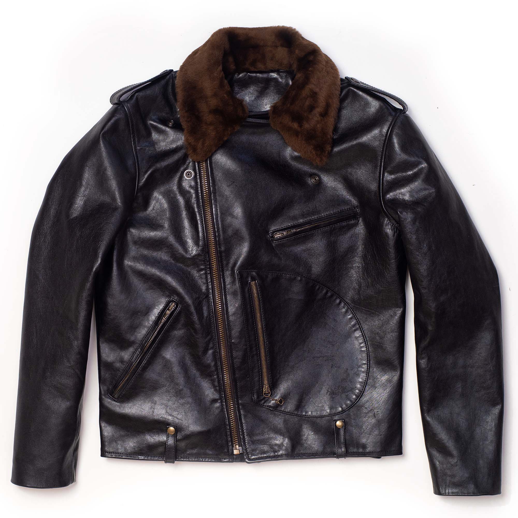Inspired by 1950s Motorcycle jackets and revisited with a unique Italian touch, the “Chiodo” Black Horsehide Leather Jacket represents an authentic garment made of chrome tanned, drum dyed, full grain Horsehide from Vicenza (Italy), with a removable Fur Collar in Italian Shearling Sheepskin.
