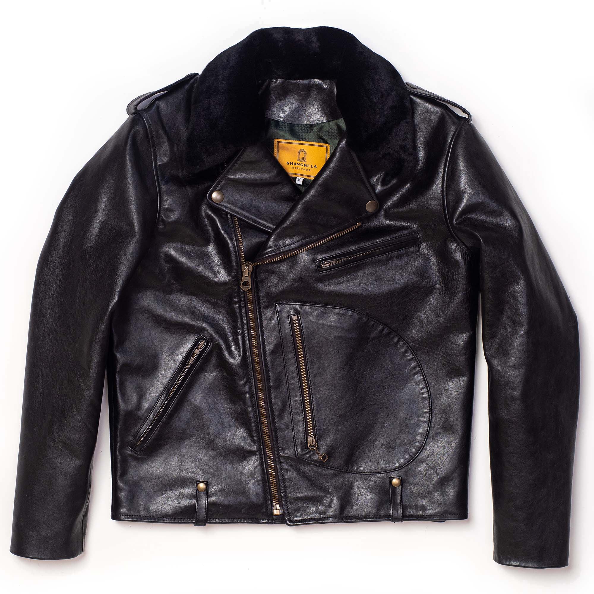 “Chiodo” Fur Collar Black Horsehide Leather Jacket