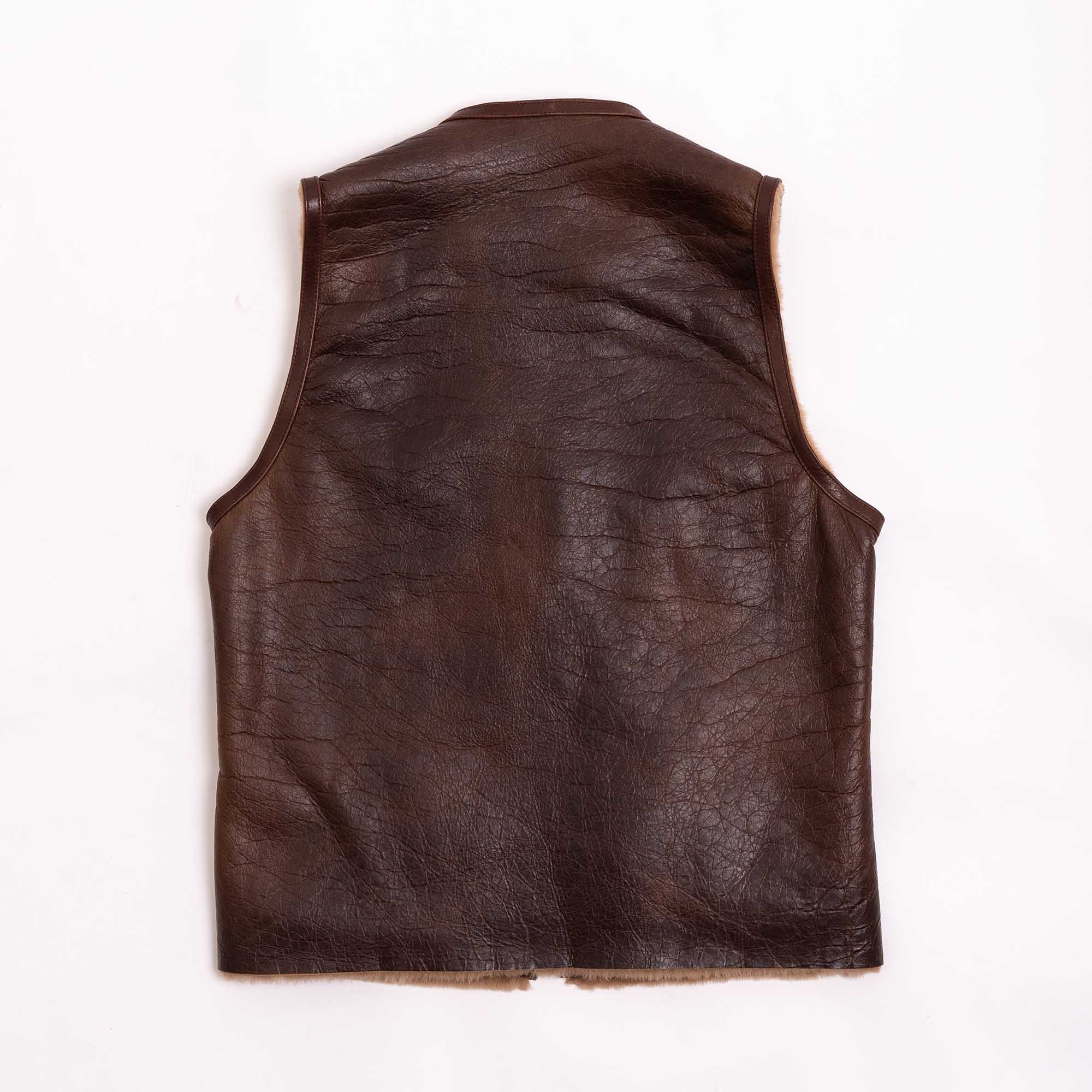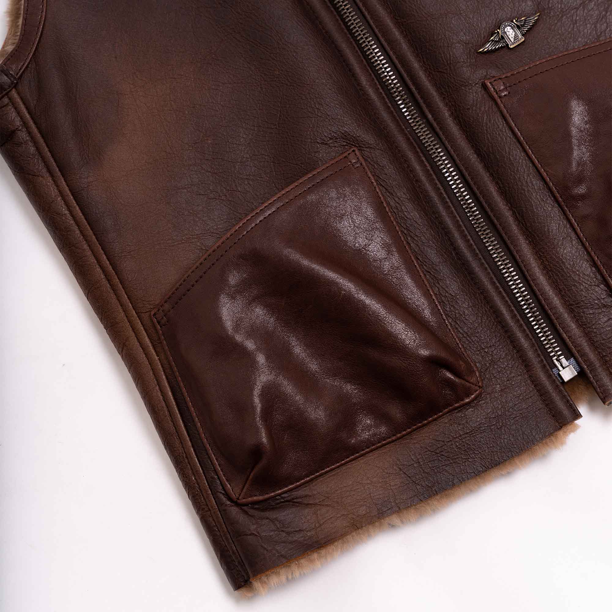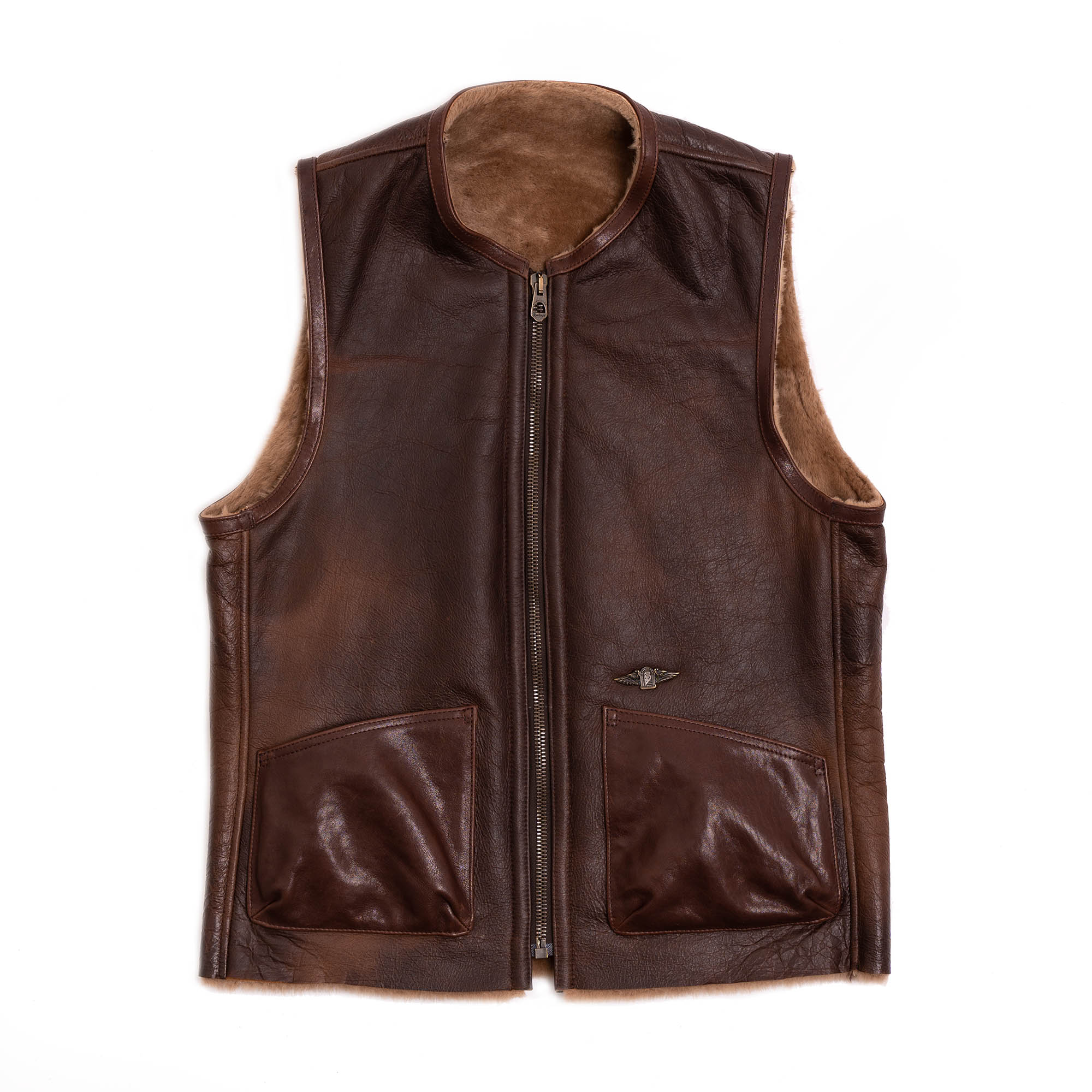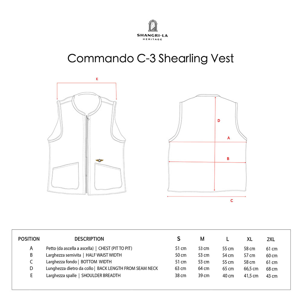 Inspired by early 40s type C-3 Flight Vests from the Second World War and revisited with a unique Italian touch, the “Commando” C-3 Shearling Vest represents an authentic garment made of Italian Shearling Sheepskin reinforced with leather trimmings in vegetable tanned Lambskin from Tuscany (Italy).