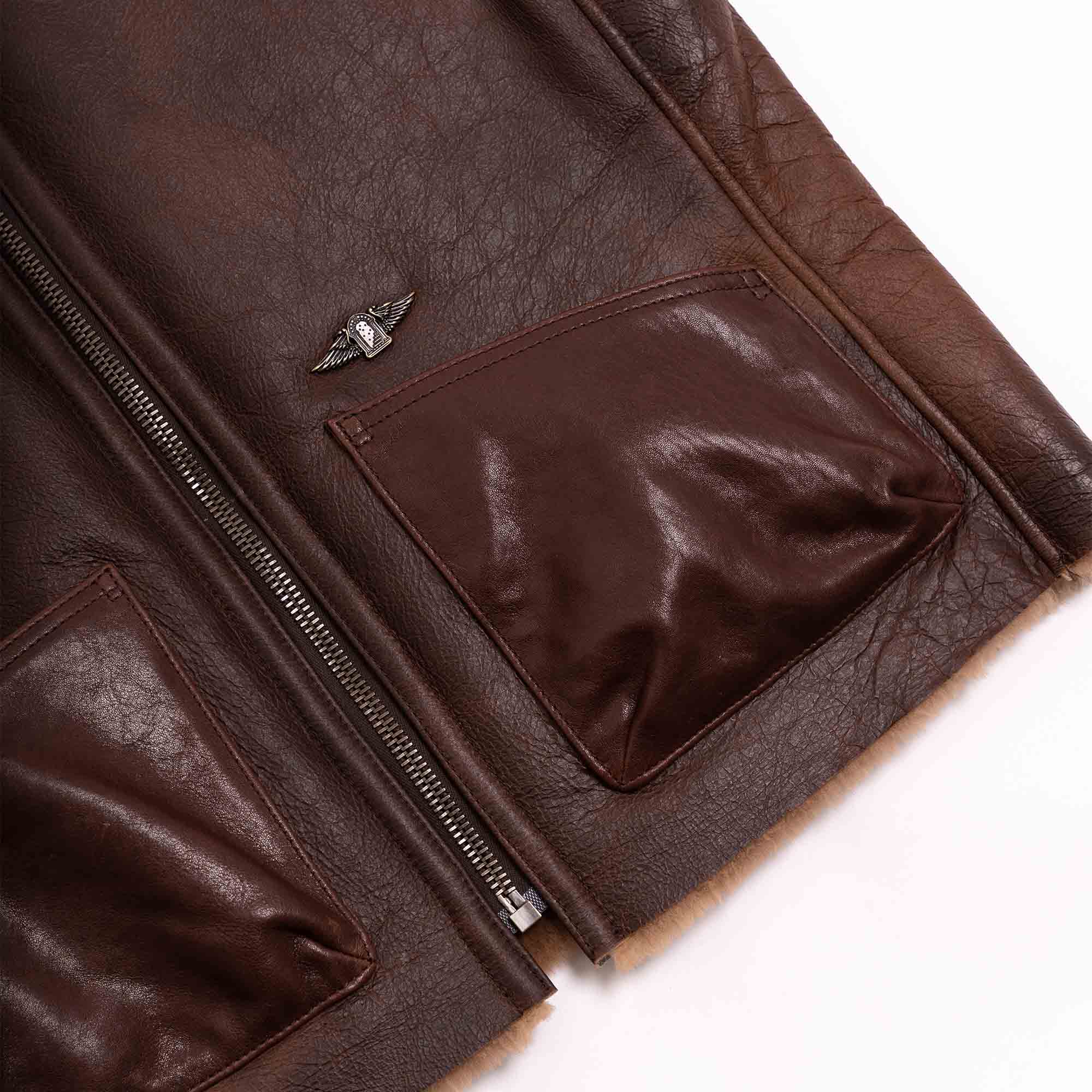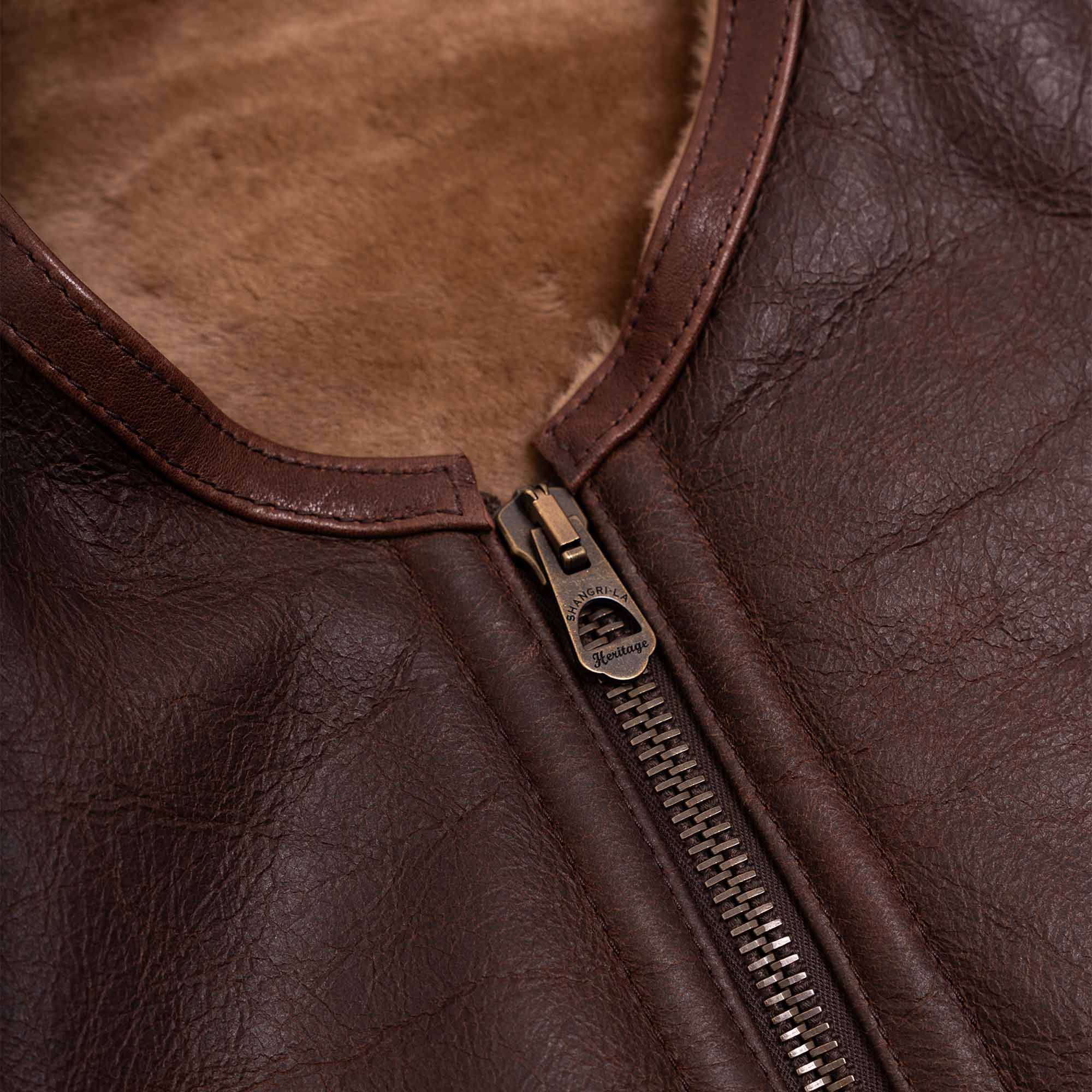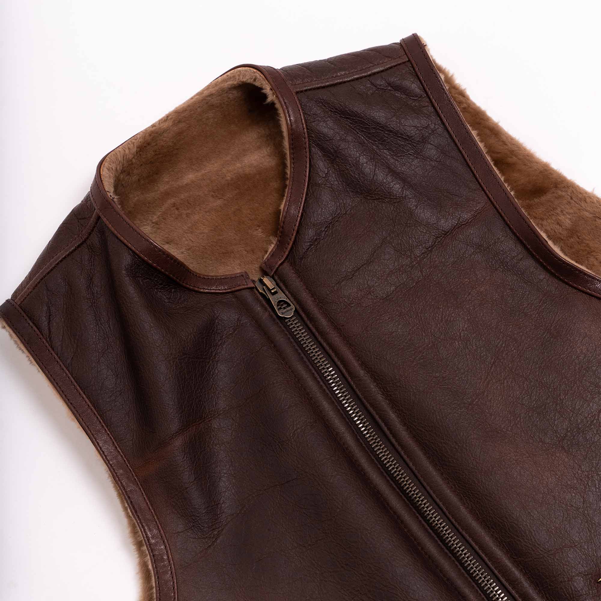 Inspired by early 40s type C-3 Flight Vests from the Second World War and revisited with a unique Italian touch, the “Commando” C-3 Shearling Vest represents an authentic garment made of Italian Shearling Sheepskin reinforced with leather trimmings in vegetable tanned Lambskin from Tuscany (Italy).