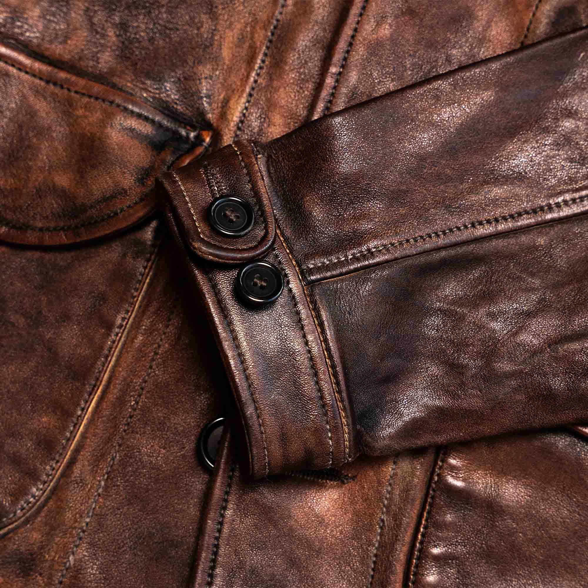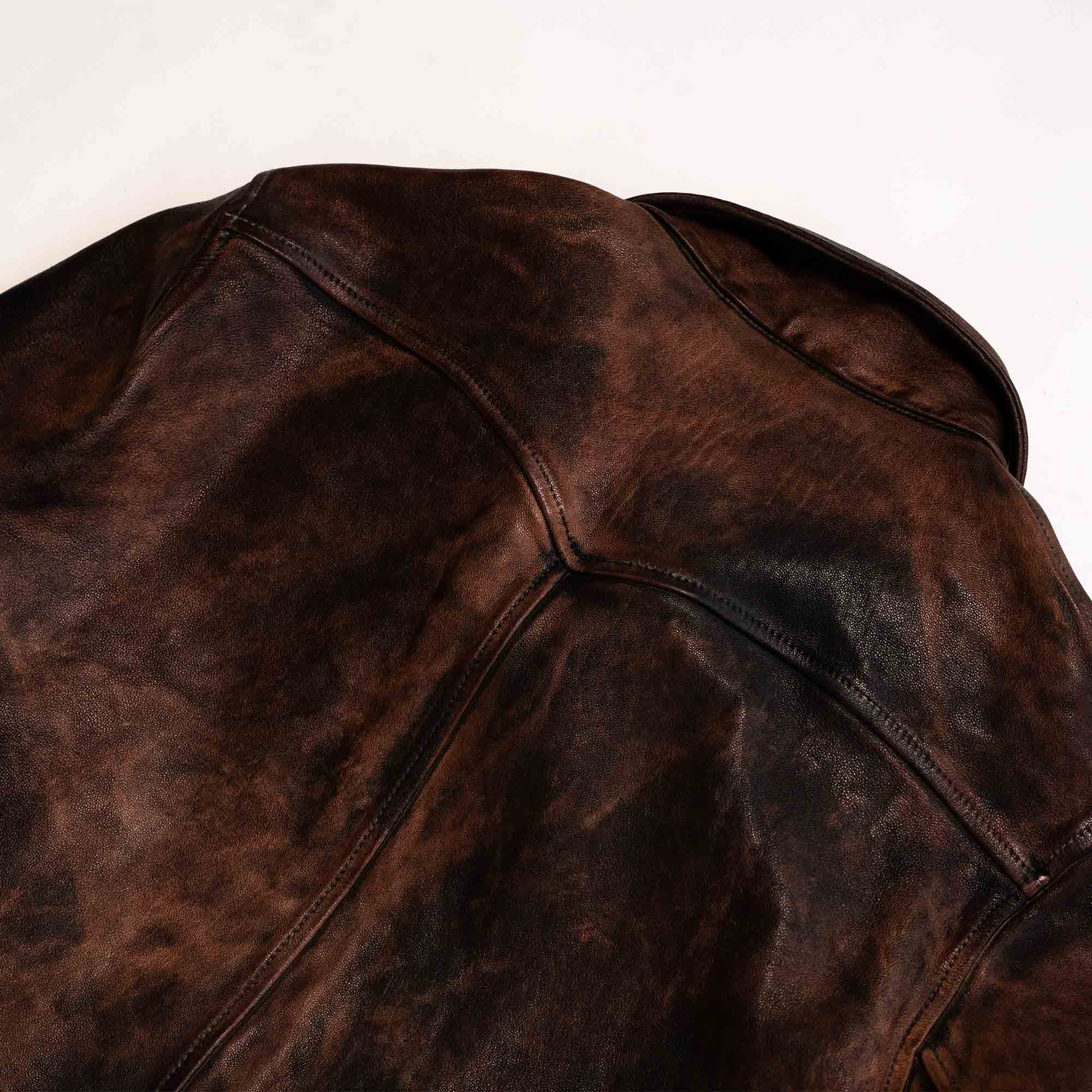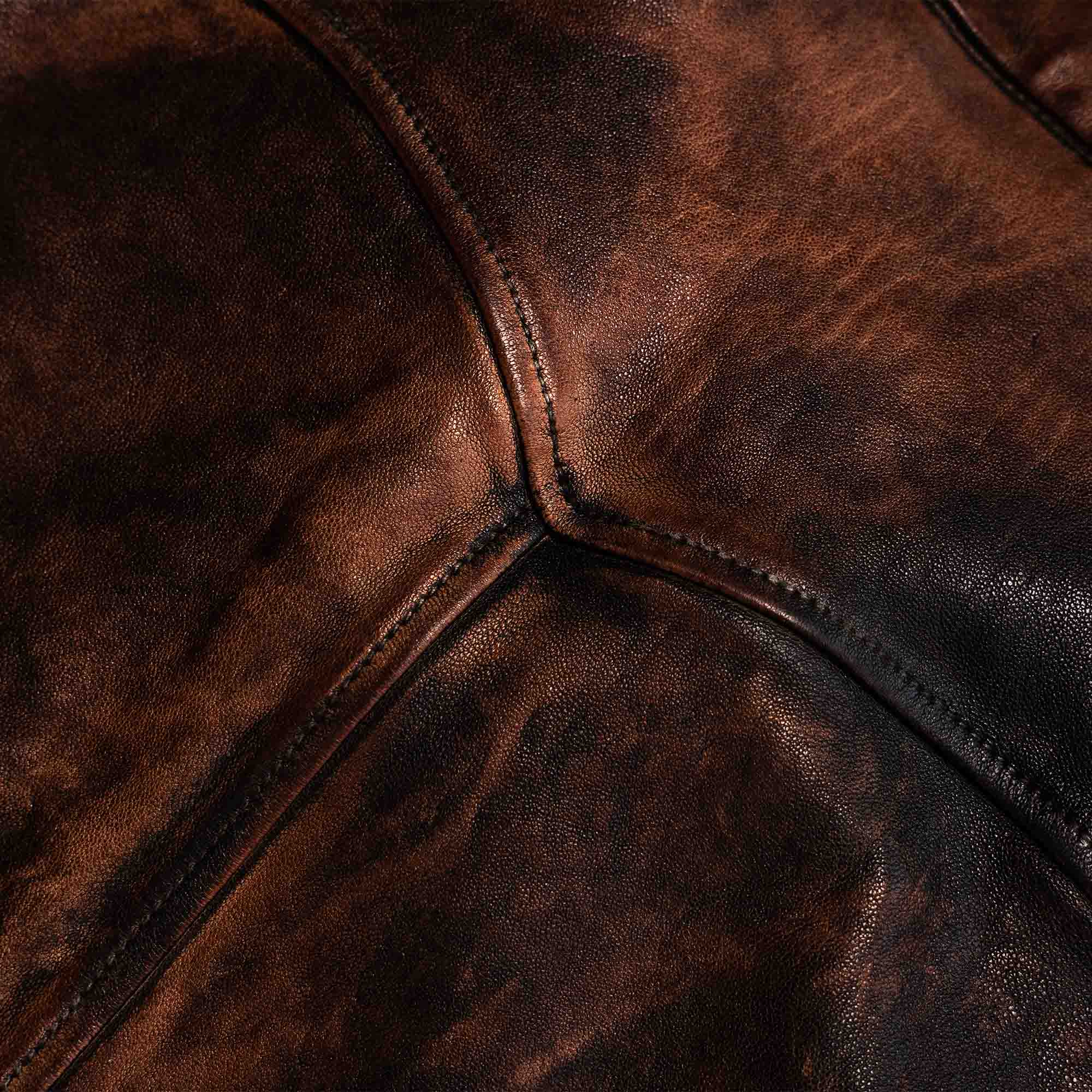Inspired by late 30s “Cossack” type jackets and revisited with a unique Italian touch, the “Cossack” Bruciato Leather Jacket represents an authentic garment made of vegetable tanned full grain Lambskin from Tuscany (Italy) with “Bruciato” Treatment.