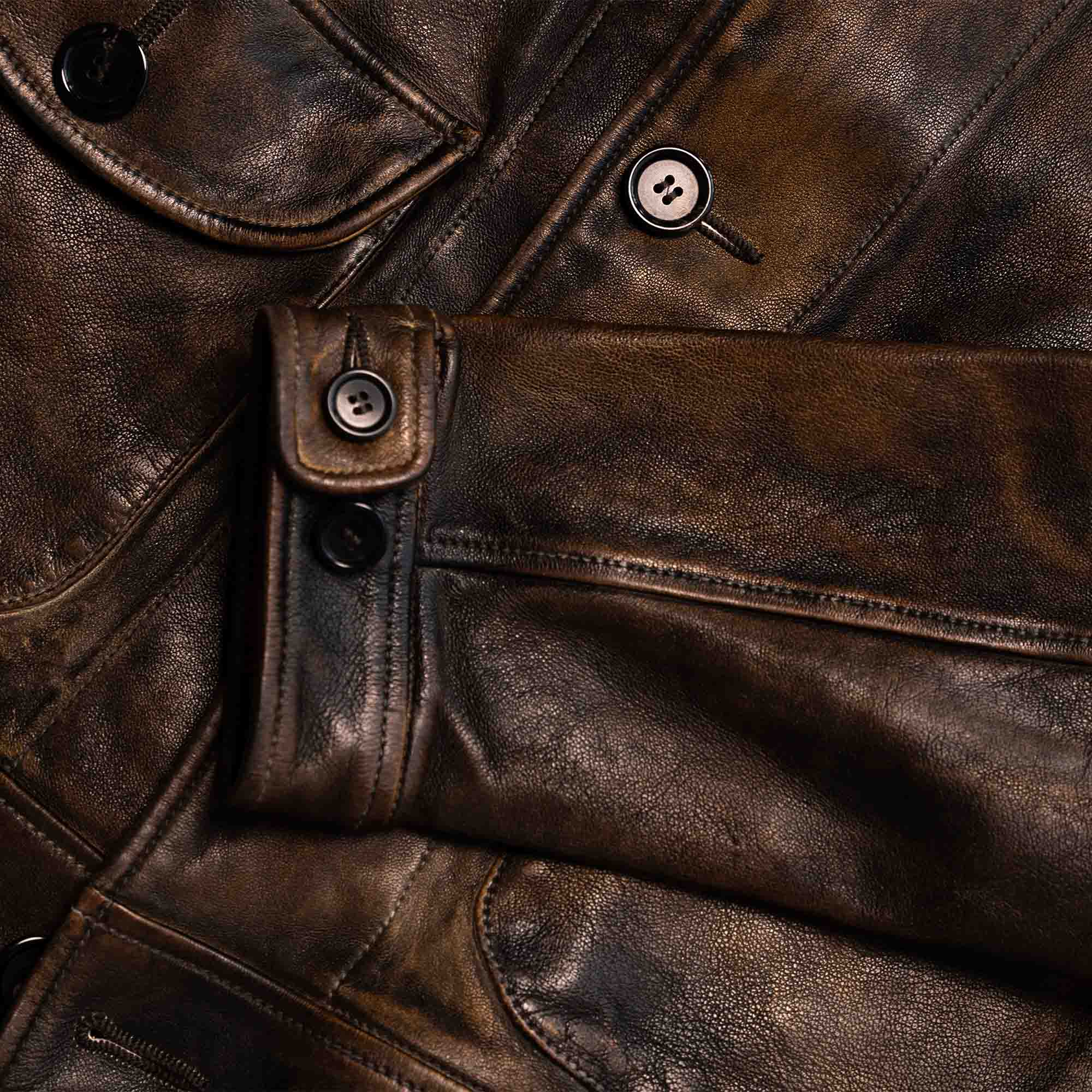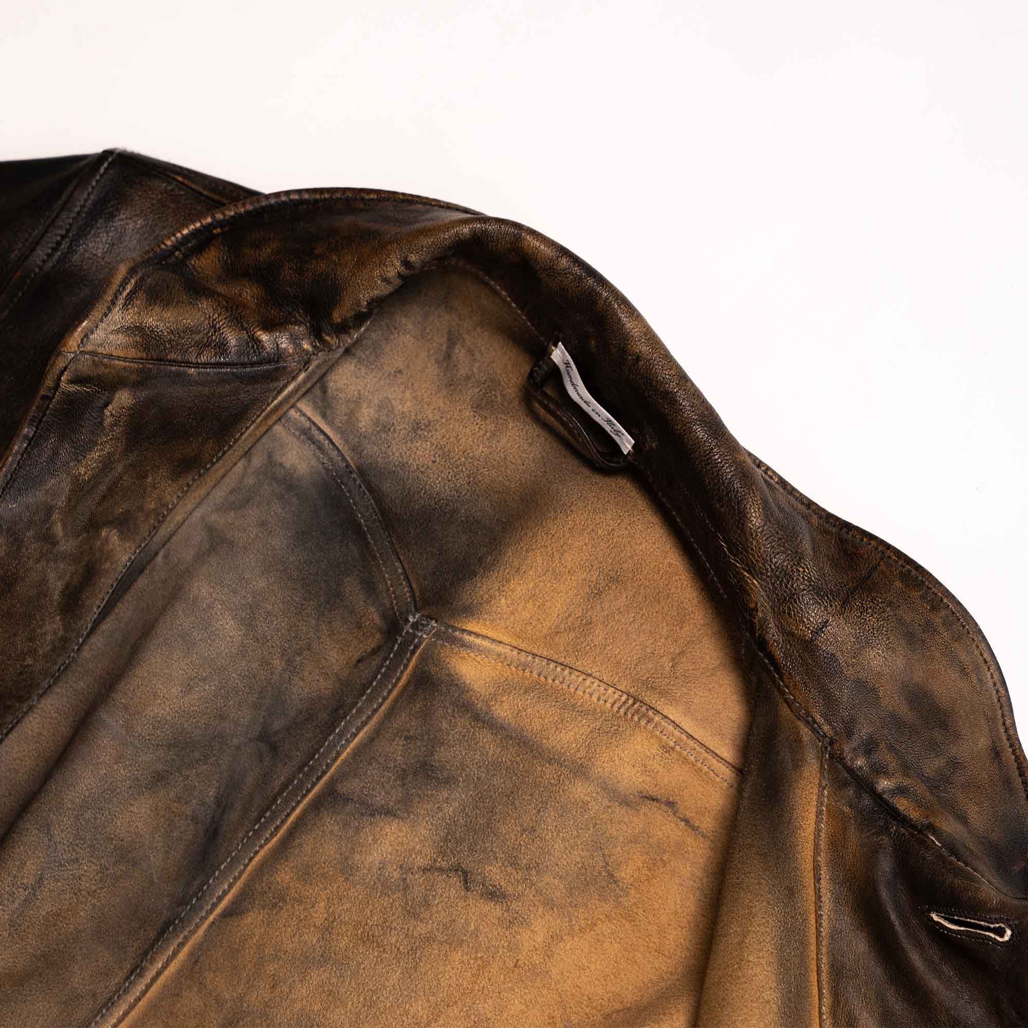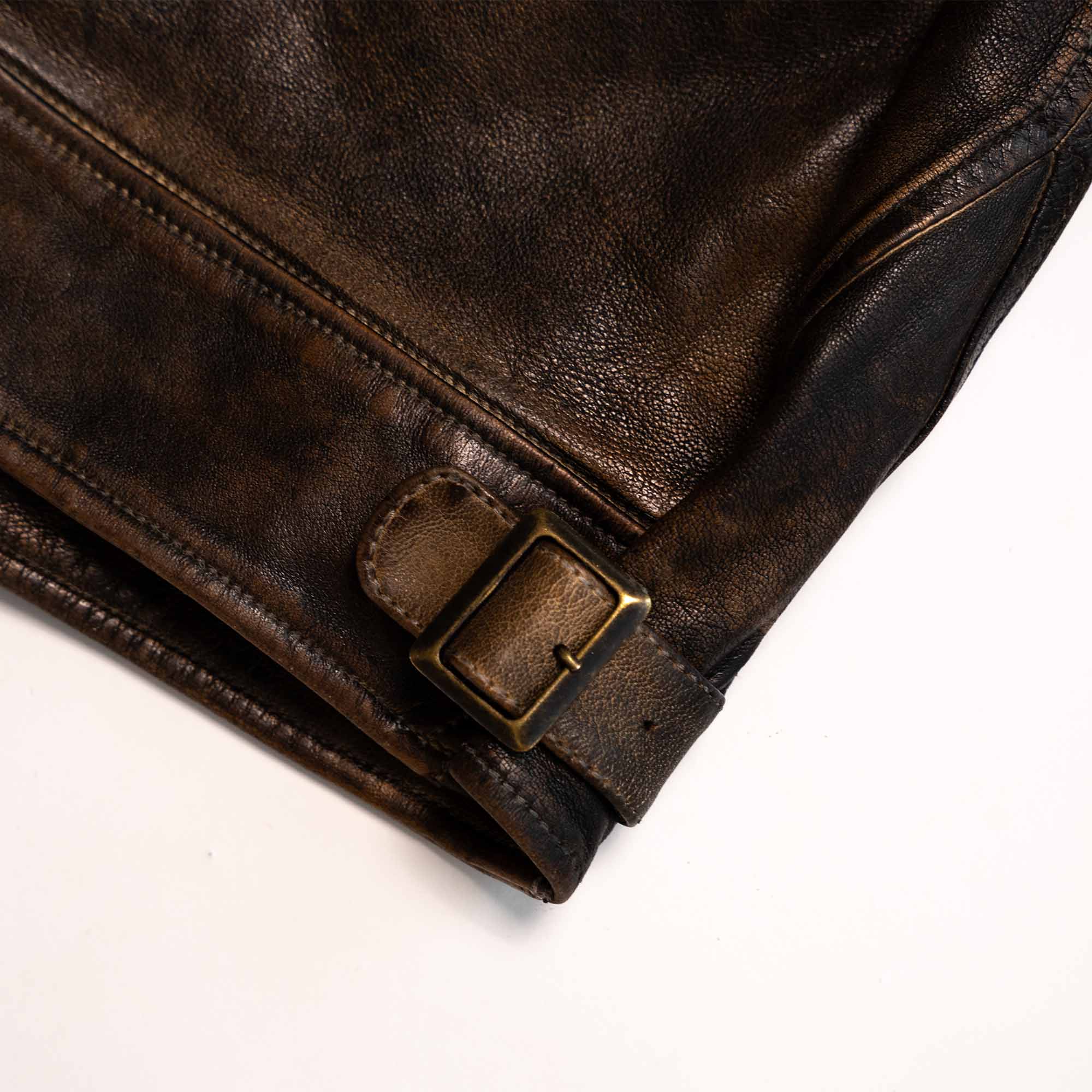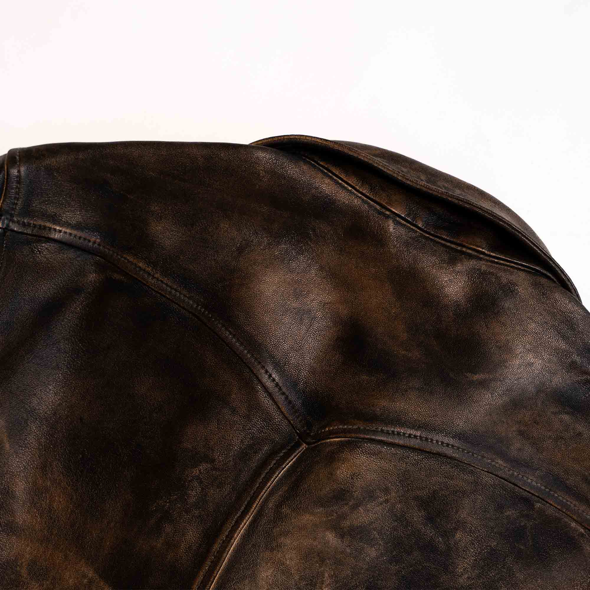 Once again Shangri La heritage outdoes itself, the leather quality is suberb, unlike anything available on the mass market today, the attention to detail is second to none as always. I had a couple questions about the fit of this jacket, worried that it was too small. But Marco assured me that it will stretch out, due to the dying process. Still, I recommend sizing up. I’m 6’1 usually a Medium but went for a Large. Regardless, the distressing is so unique and it’s unlined which makes it on the lighter side, perfect for summer / spring. Big love to the team and the artisans of these masterpieces, will definitely be back!
