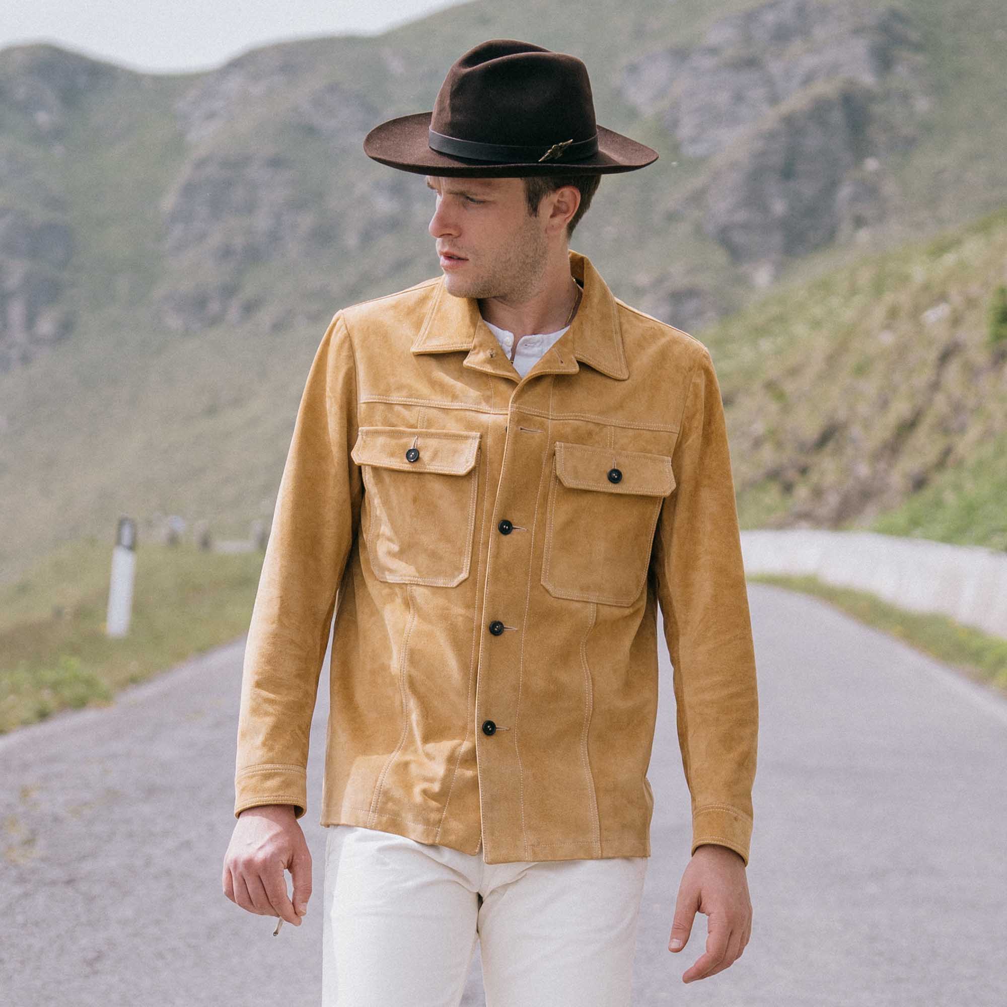 Inspired by 1930s CPO overshirts and revisited with a unique Italian touch, the “CPO” Sabbia Suede Overshirt represents an authentic garment made of Calfskin suede from Tuscany (Italy) and “Tan” color viscose lining.