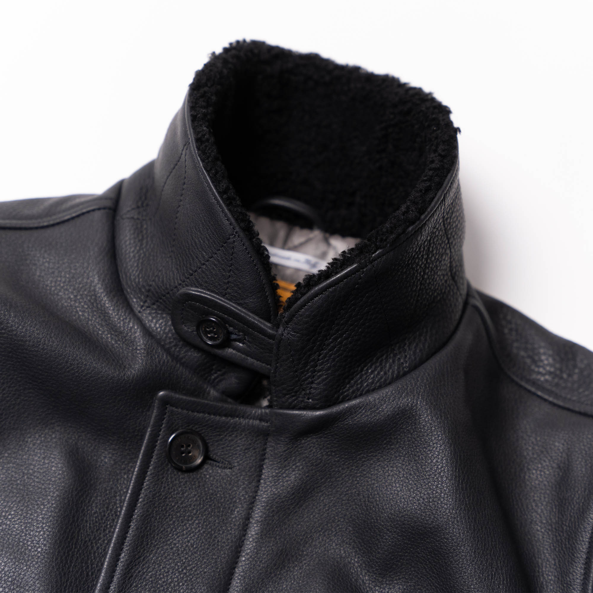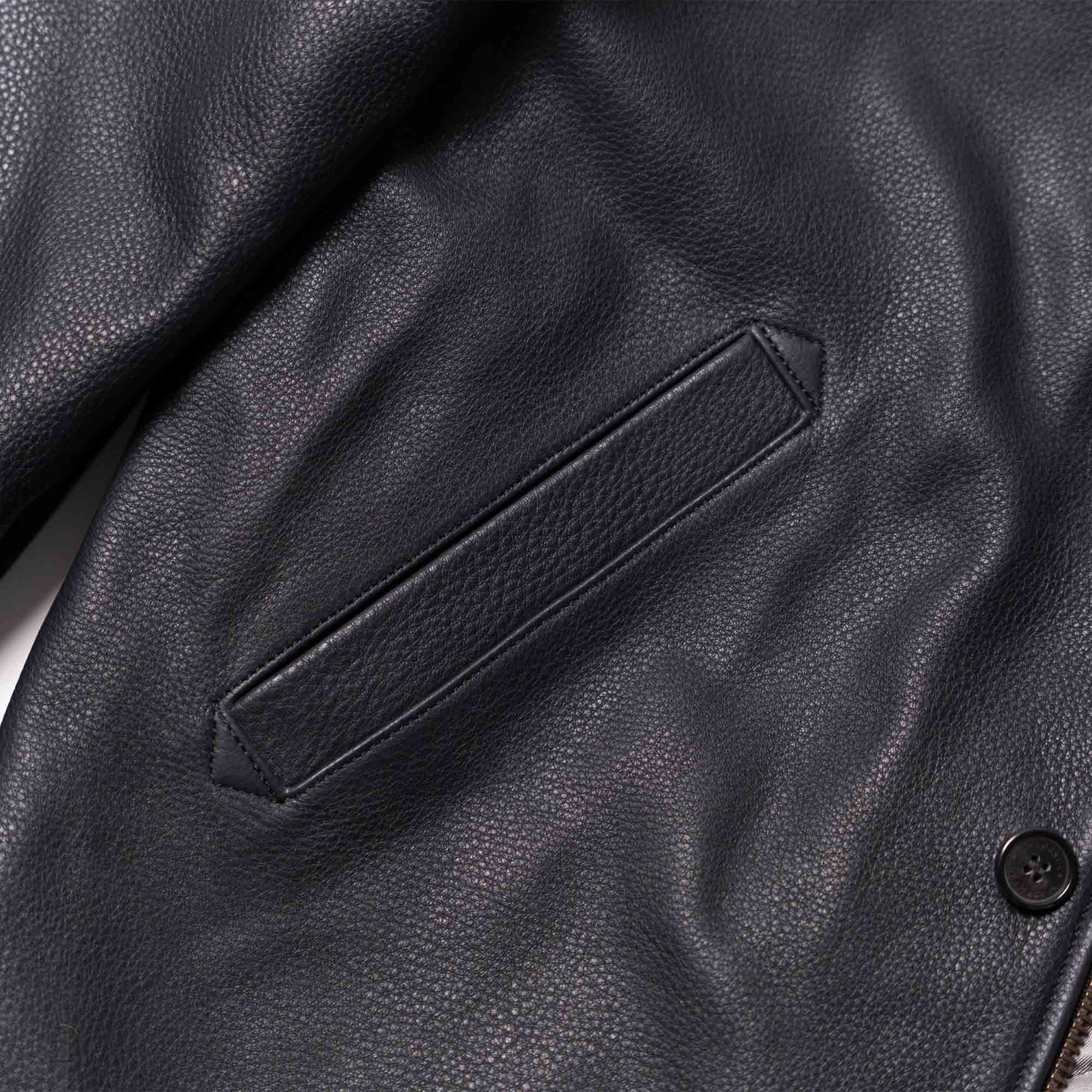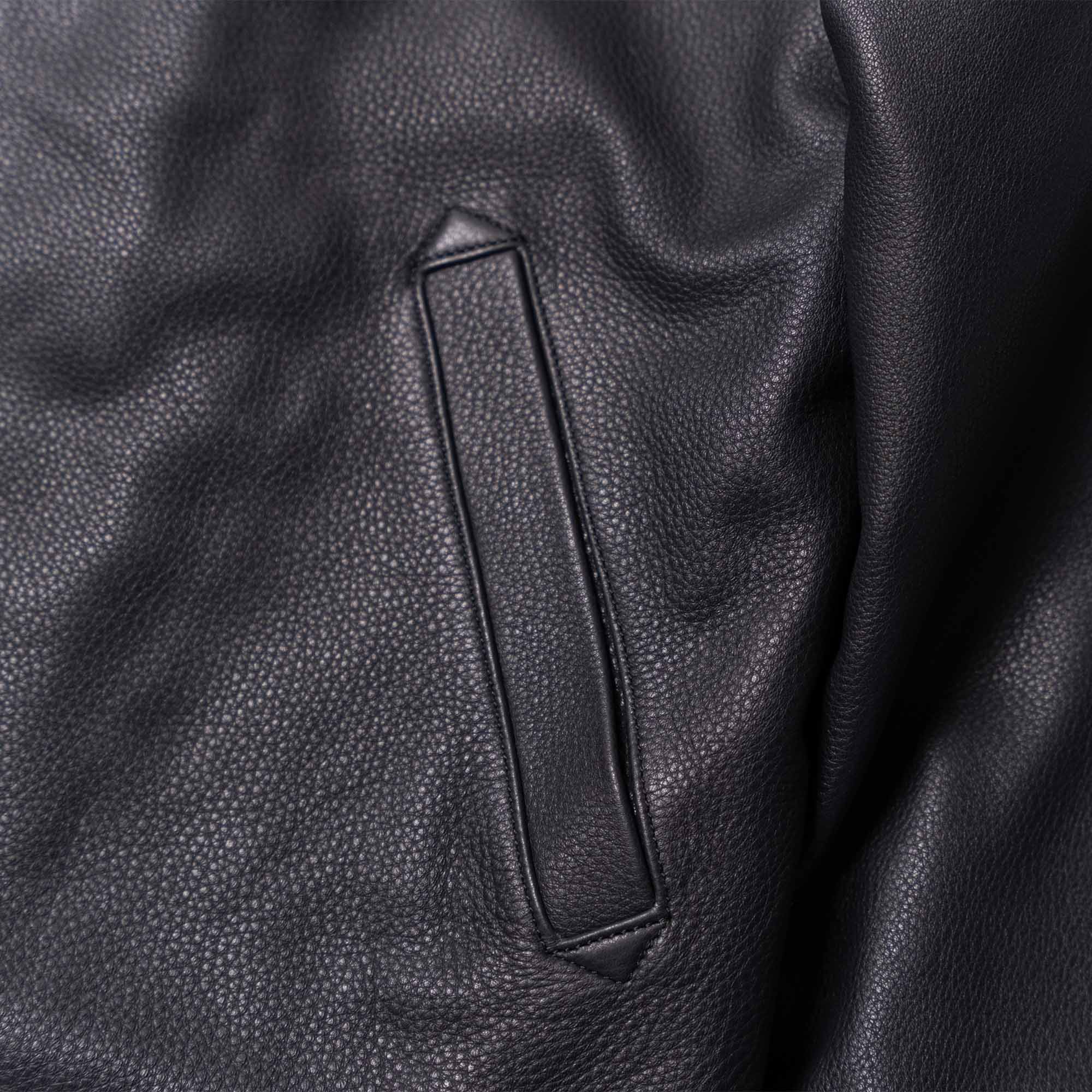 Thickness is around 1,1 mm, making our “Deck” N-1 an outstanding and high-end premium jacket. Natural leathers like Aniline Vicenza Steerhide have their own distinctive character and slight differences in texture, grain, scratches and color tone are signs of its authenticity.