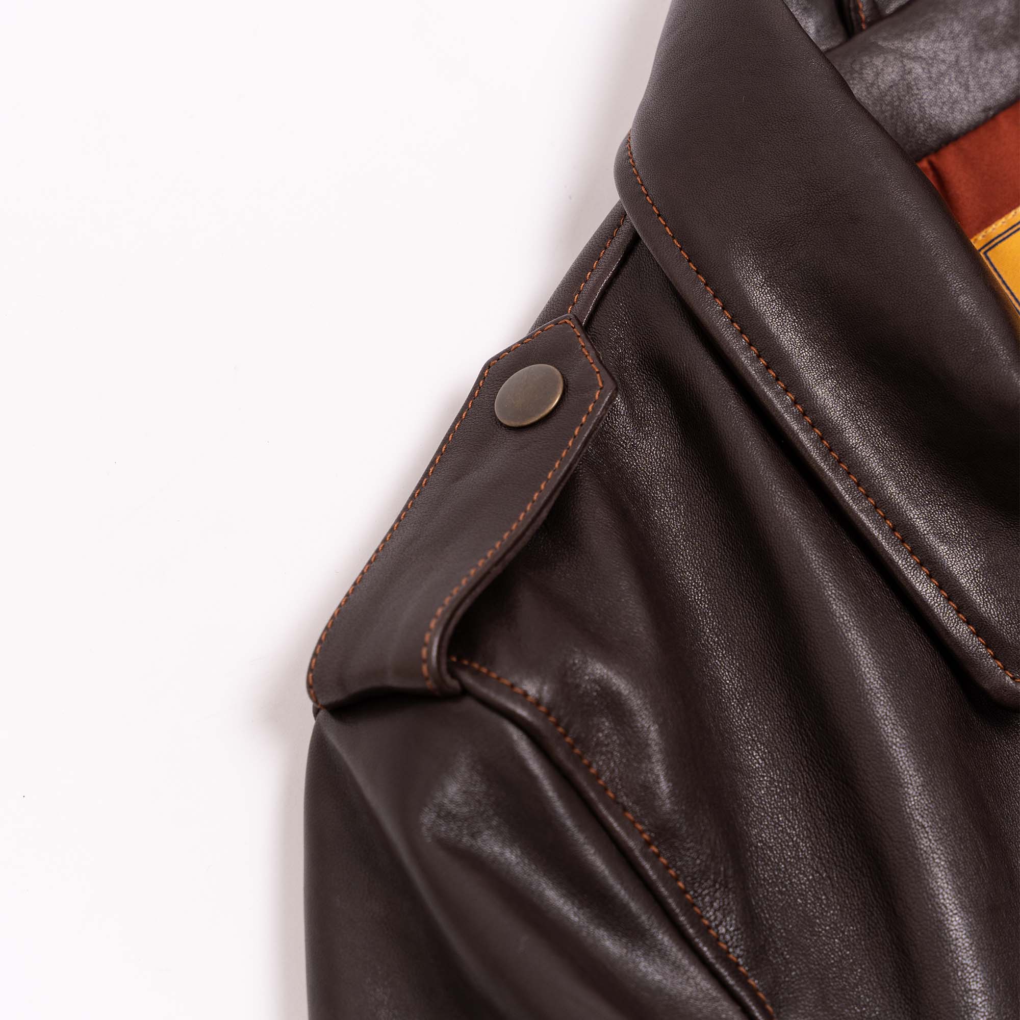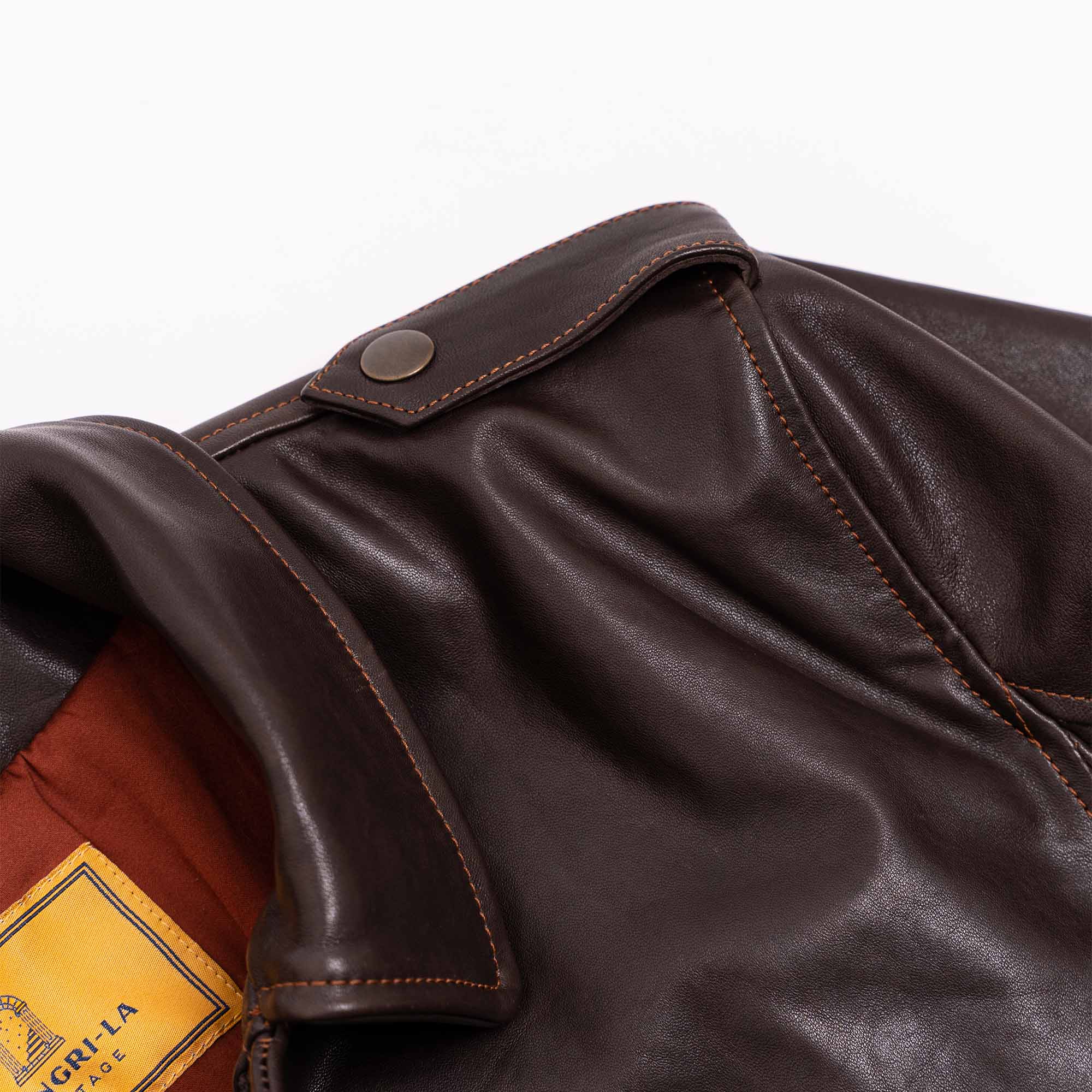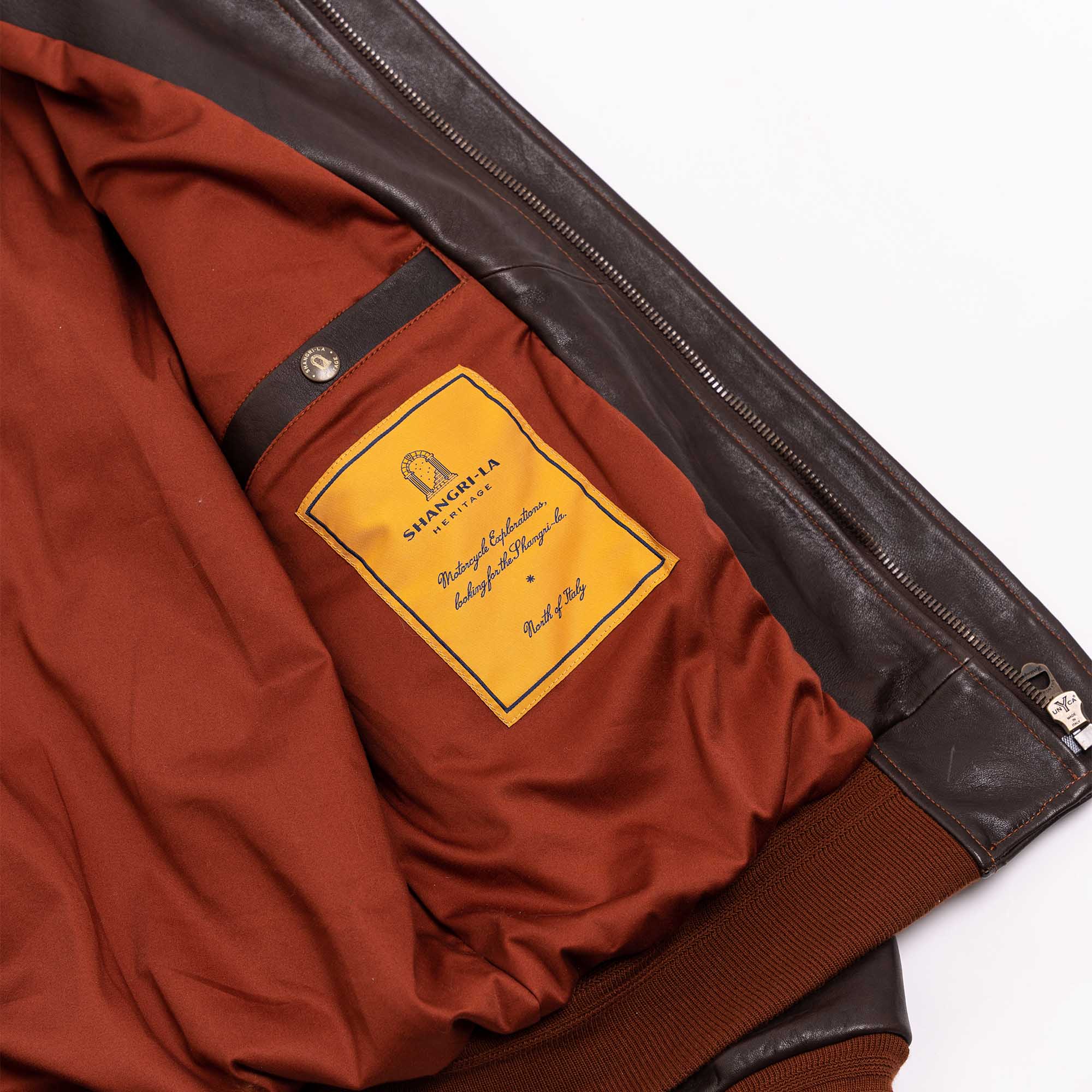 Inspired by 1940s Flight Jackets from WWII and revisited with a unique Italian touch, the “Don Gentile” A-2 Flight Jacket represents an authentic garment made of vegetable tanned full grain Lambskin from Tuscany (Italy).