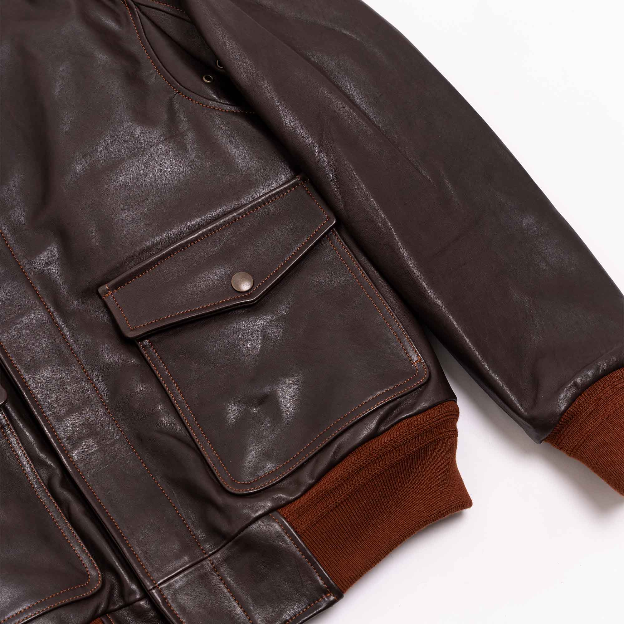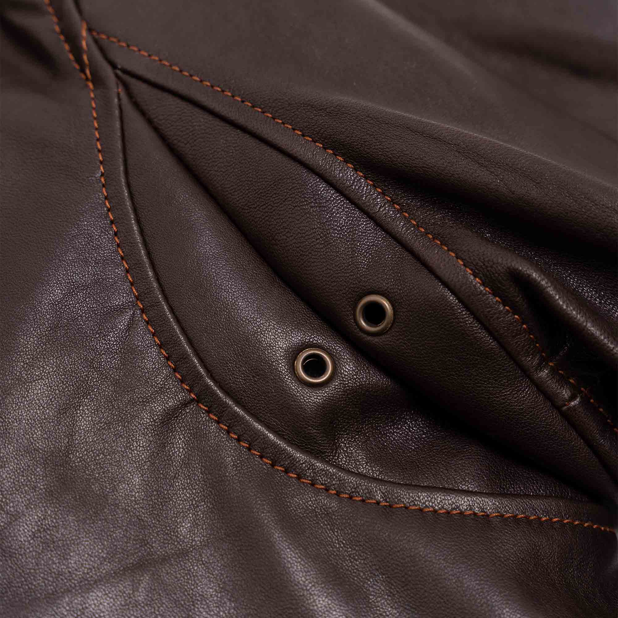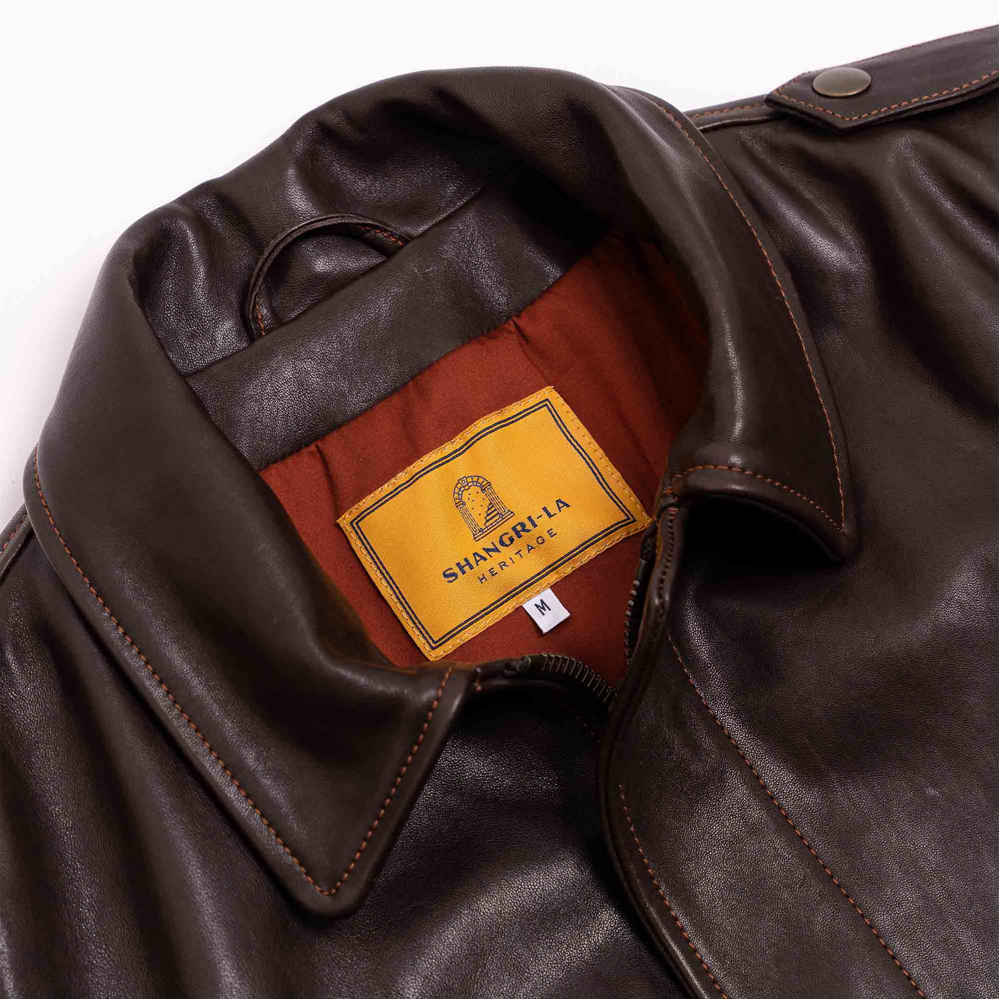 Inspired by 1940s Flight Jackets from WWII and revisited with a unique Italian touch, the “Don Gentile” A-2 Flight Jacket represents an authentic garment made of vegetable tanned full grain Lambskin from Tuscany (Italy).