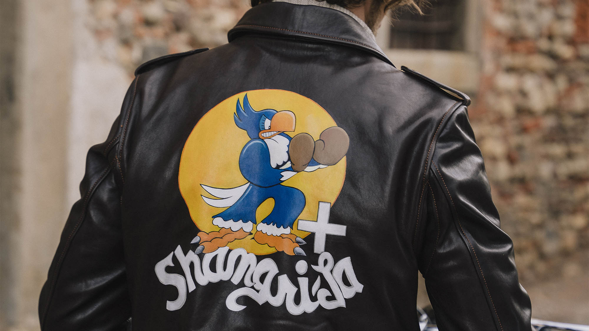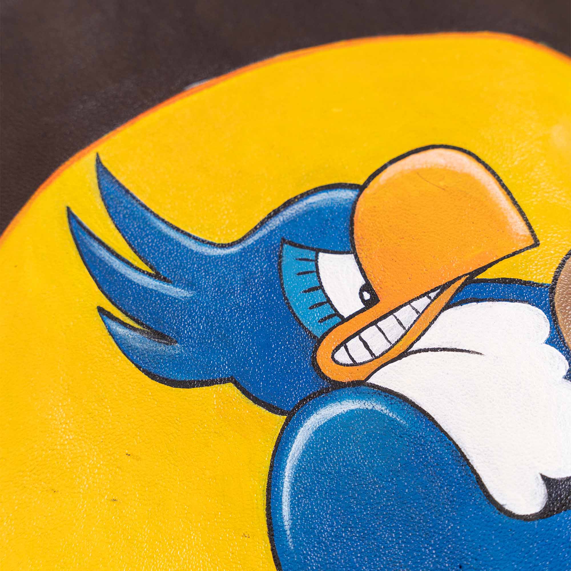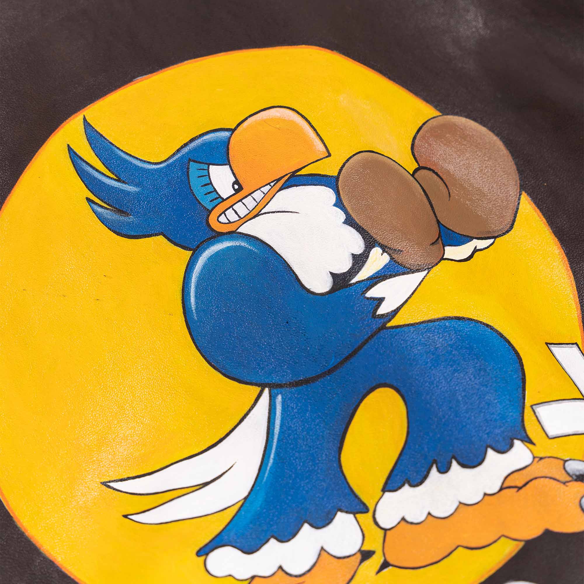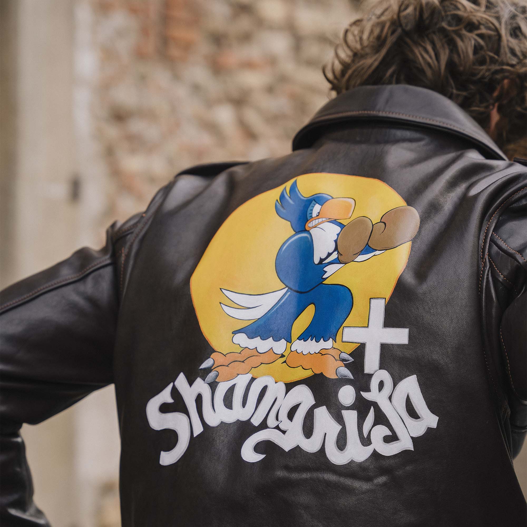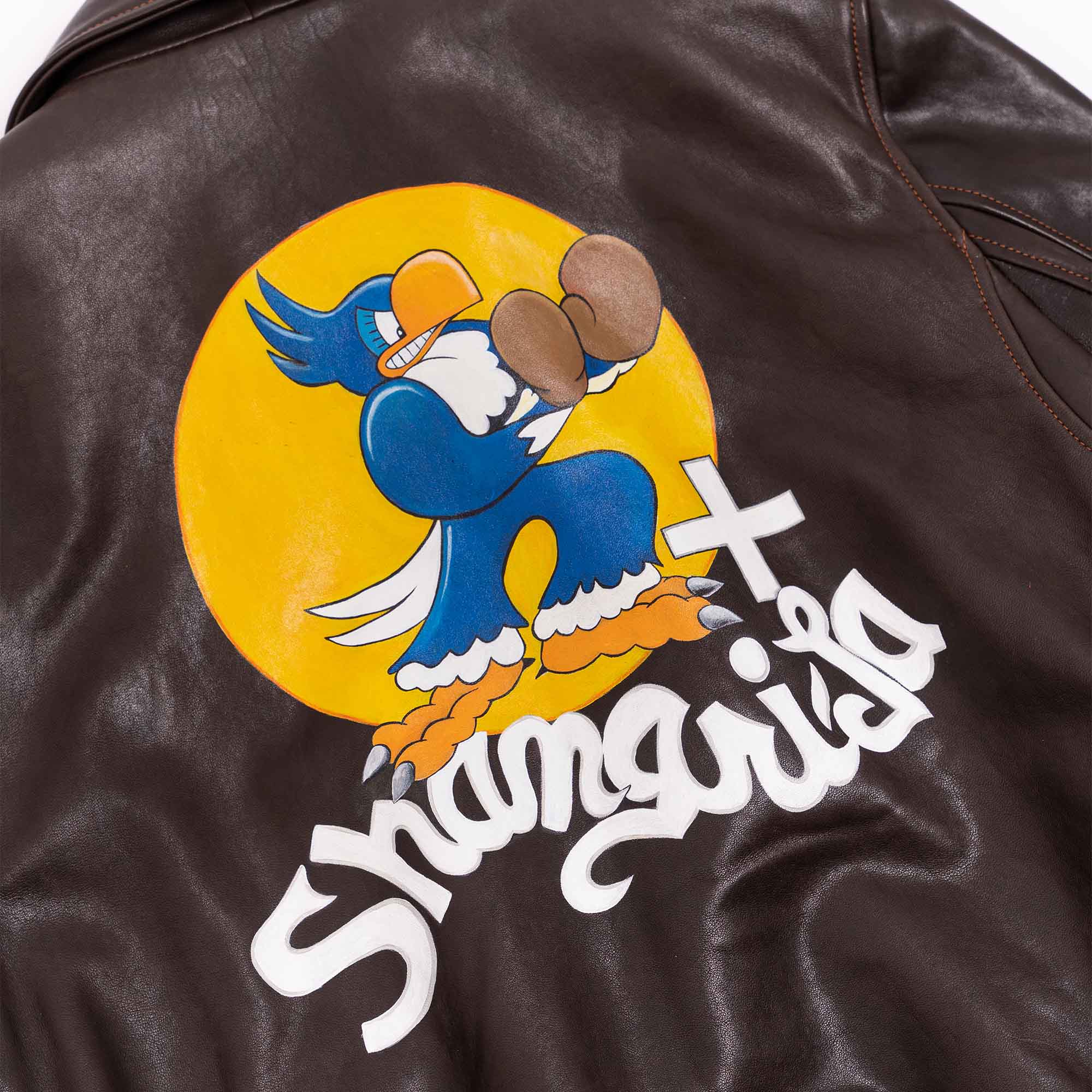 A special Hand Painted artwork on the back of the jacket, referenced from the authentic nose Art painted on the fuselage of P-51 Mustang Bomber “Shangri-La” used by Major Don Gentile himself.