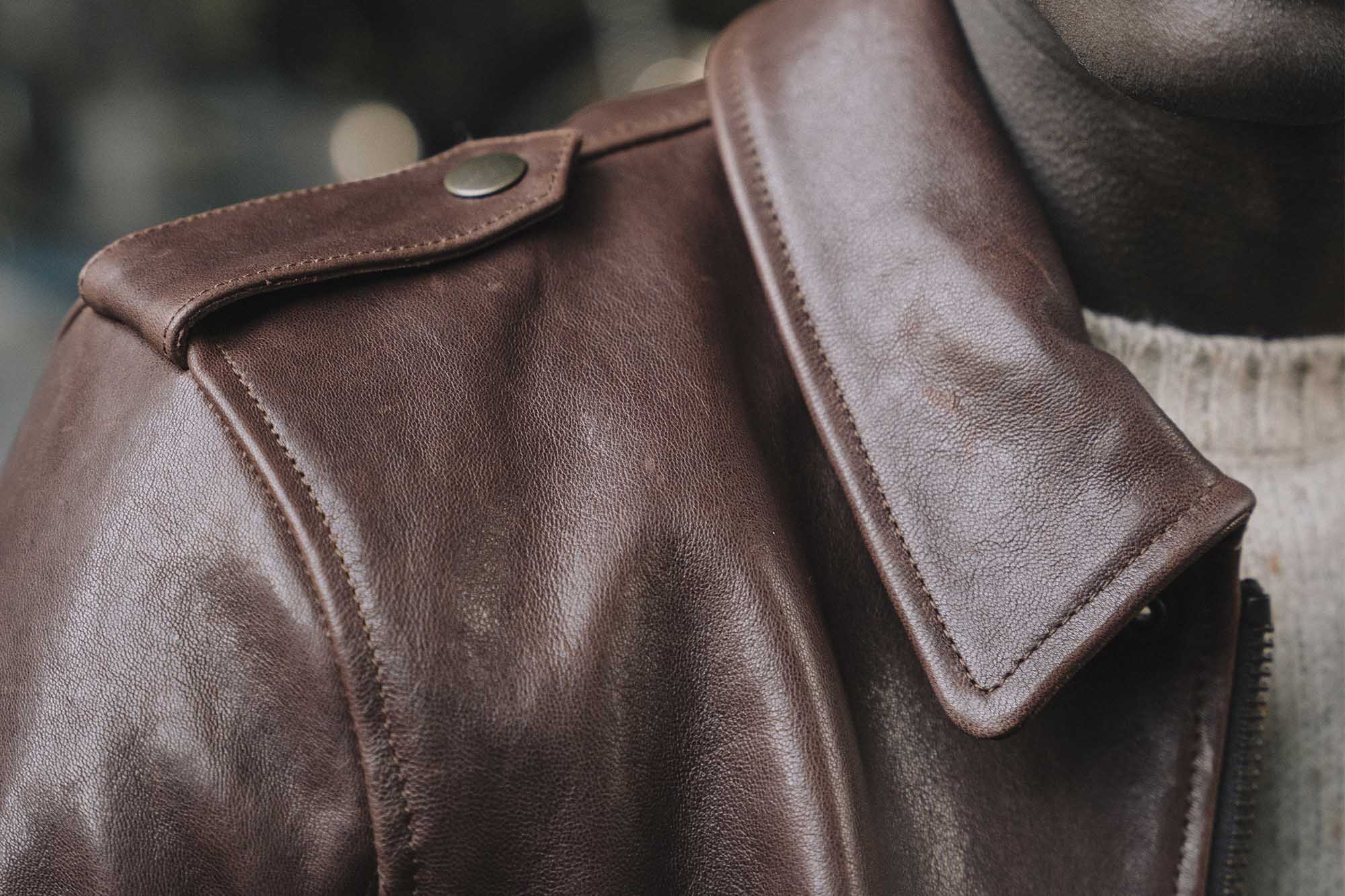 Inspired by 1940s Flight Jackets from WWII and revisited with a unique Italian touch, the “Don Gentile” A-2 Flight Jacket represents an authentic garment made of vegetable tanned full grain Lambskin from Tuscany (Italy).