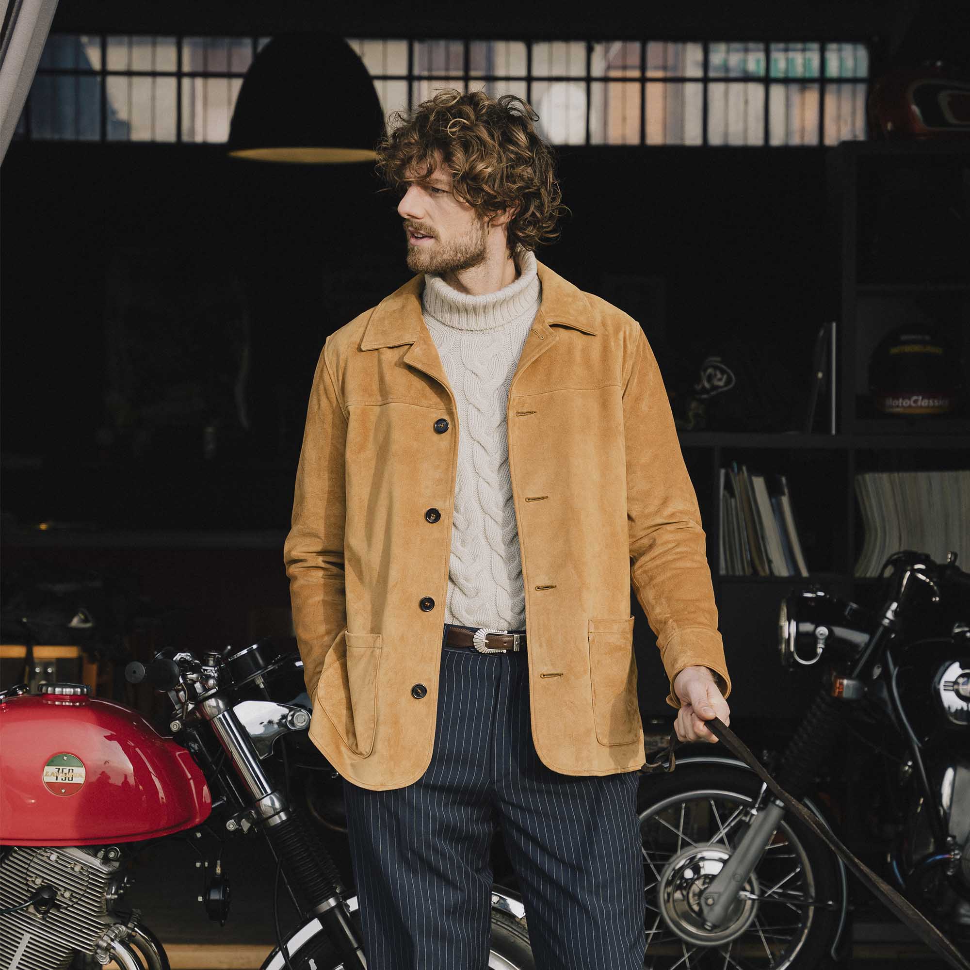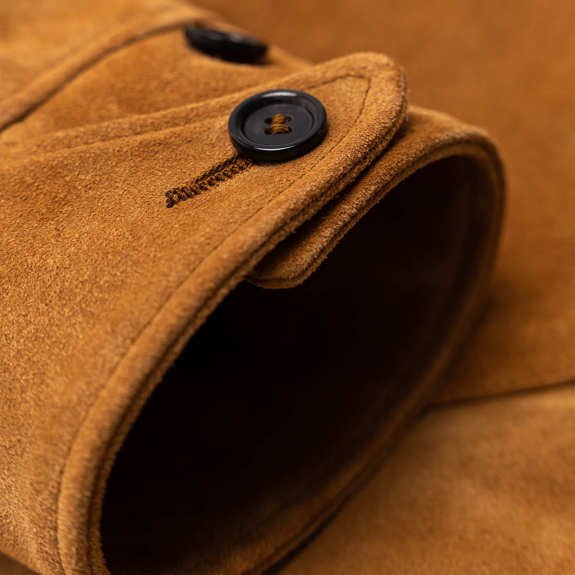 The Calfskin Suede from Tuscany (Italy) undergoes soft and light tannage, lending a unique silky touch. Thickness is between 0,6 and 0,8 mm, making the Enzo Suede Car Coat comfortable to wear and resistant at the same time.