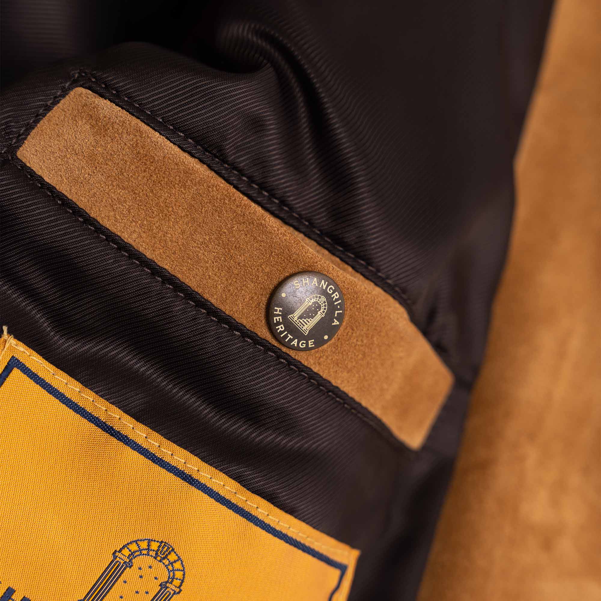The lining is made of “Espresso Coffee” color viscose, and the leather collar-tab closes the neck to keep you warm during winter and cold trips.