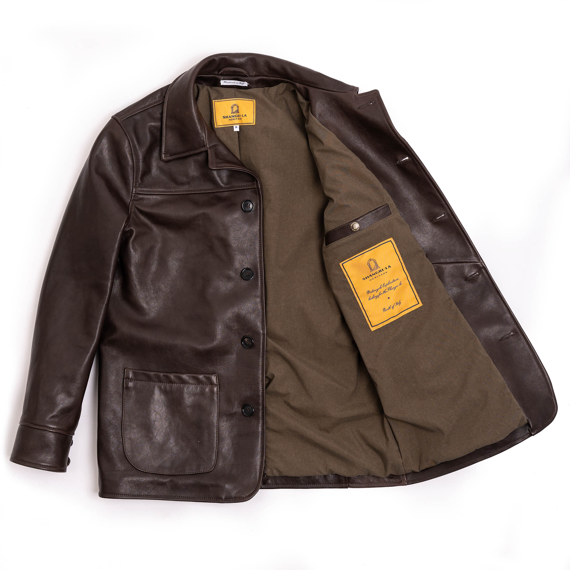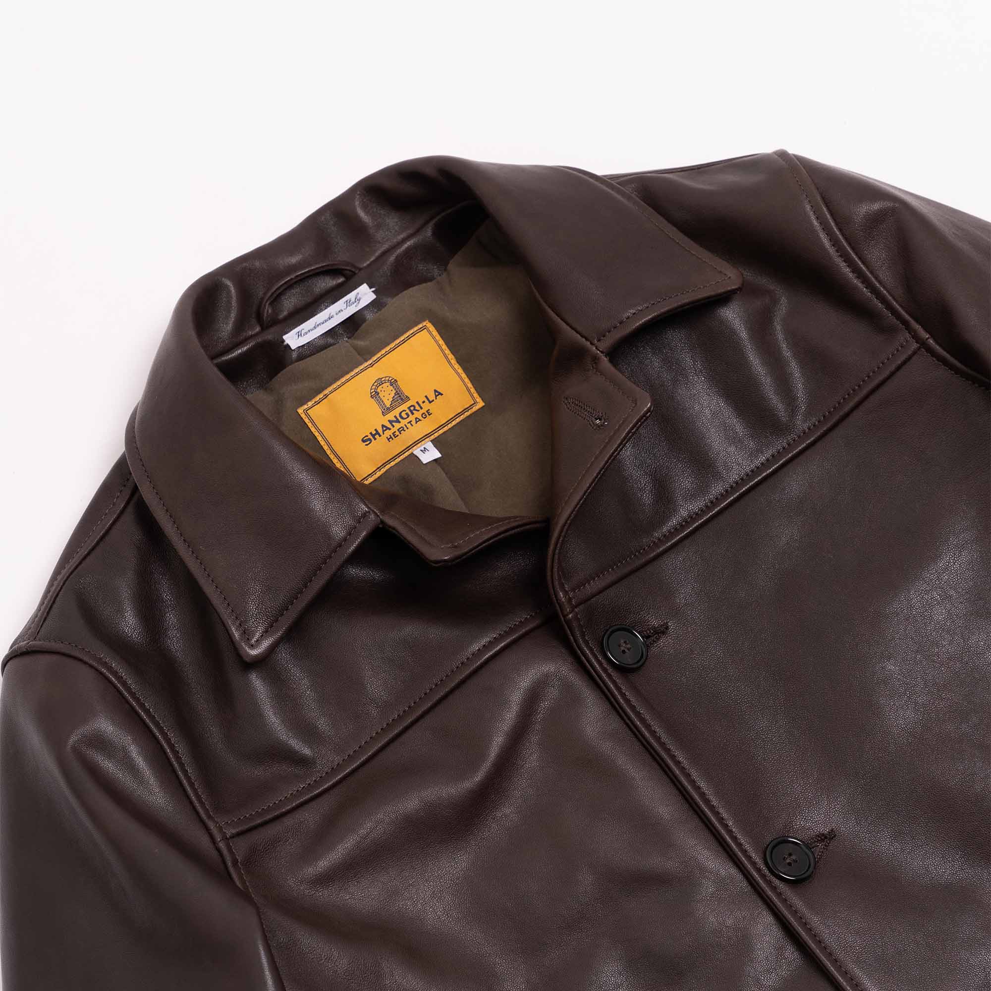 Inspired by 1940s Car Coats and revisited with a unique Italian touch, the “Enzo” Leather Car Coat represents an authentic garment made of vegetable tanned full grain Lambskin from Tuscany (Italy).