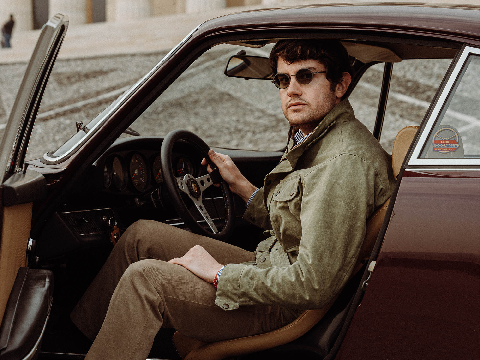 • Paolo (with a 1970 Porsche 911 Burgundy at “Temple of Canova”) is 188cm and 85kg and he’s wearing a size L.