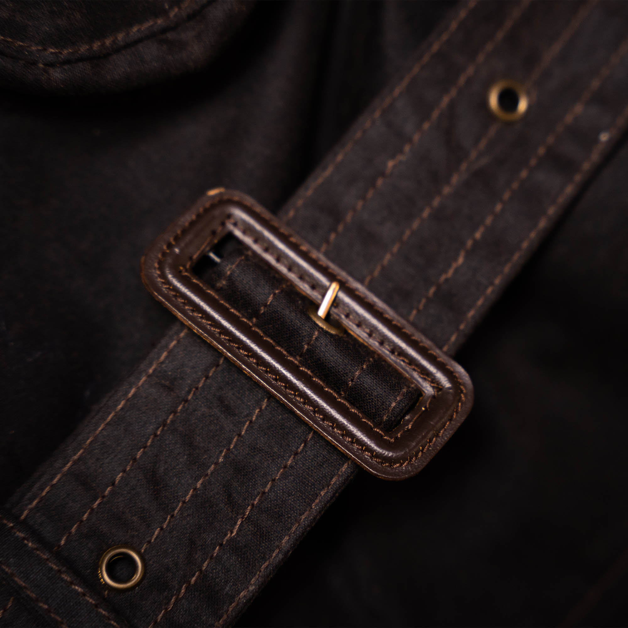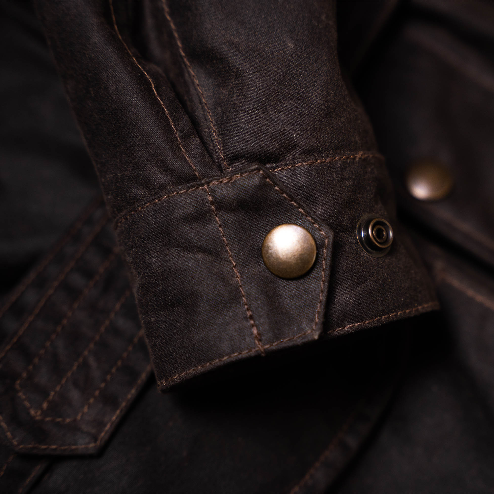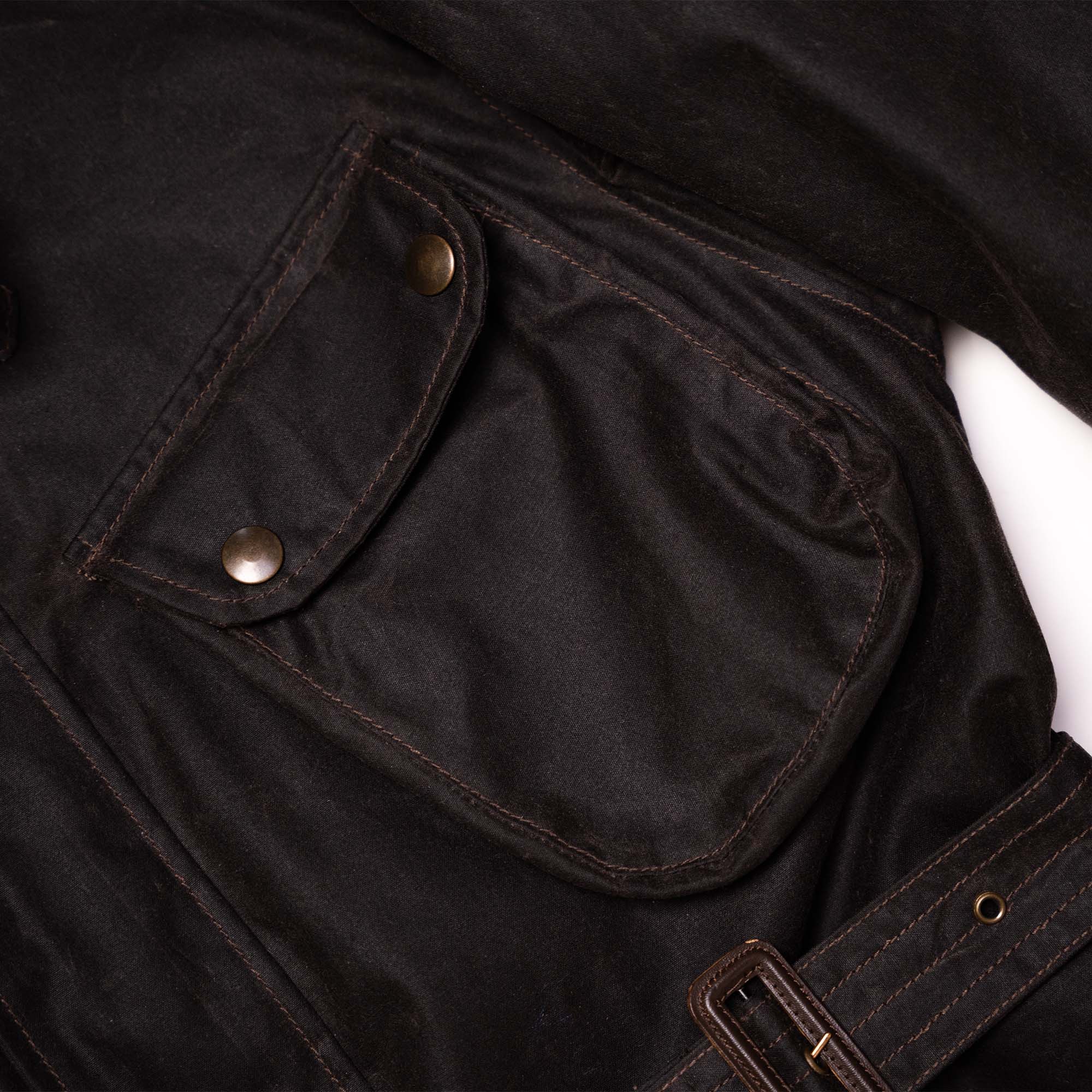 Inspired by late 40s British motorcycle jackets and revisited with a unique Italian touch, the “Explorator” Deep Brown Waxed Canvas Jacket represents an authentic garment made of 100% Cotton Waxed Desert 12 Oz by Halley Stevensons, one of the oldest waxed cotton mill in the world (since 1864 in Dundee, Scotland).