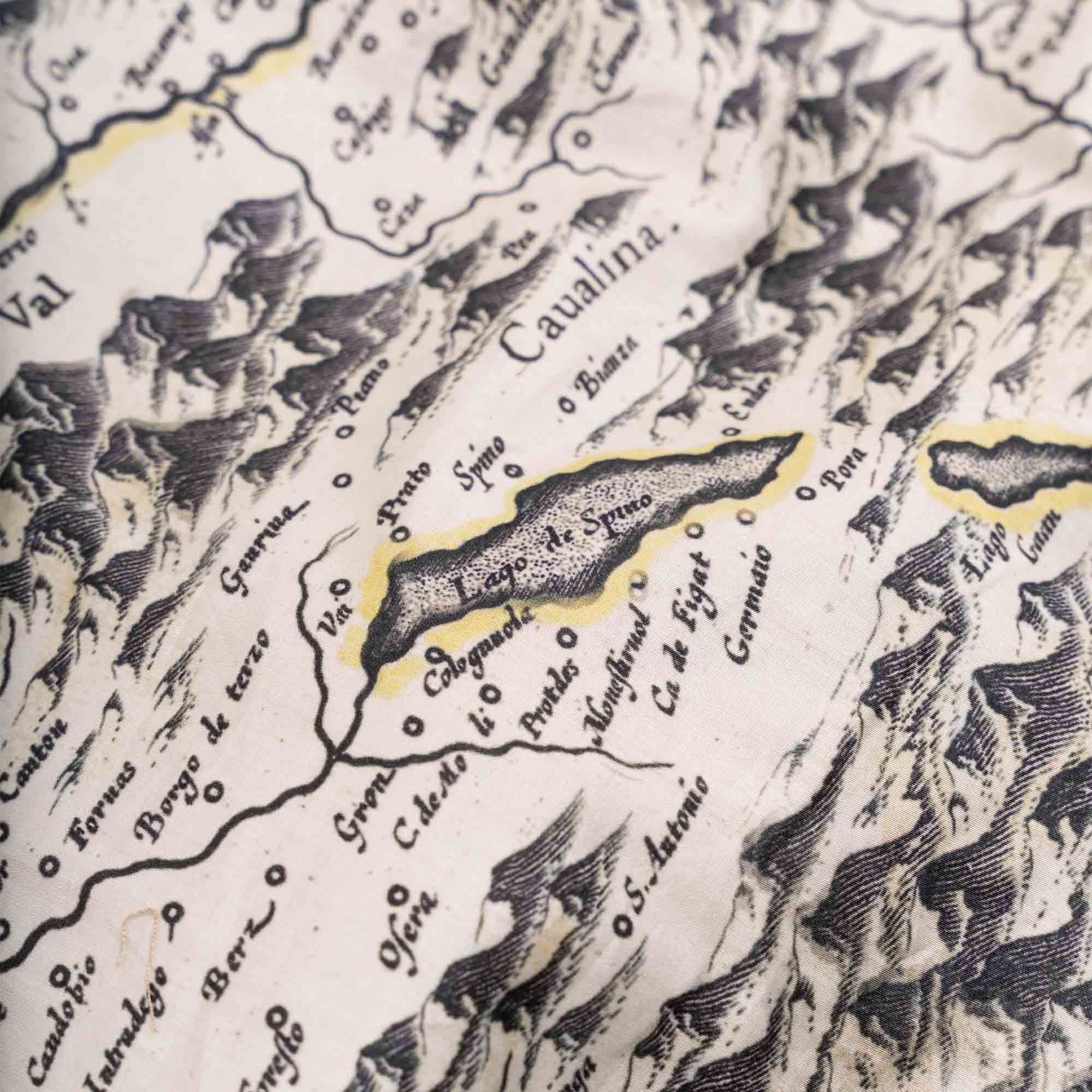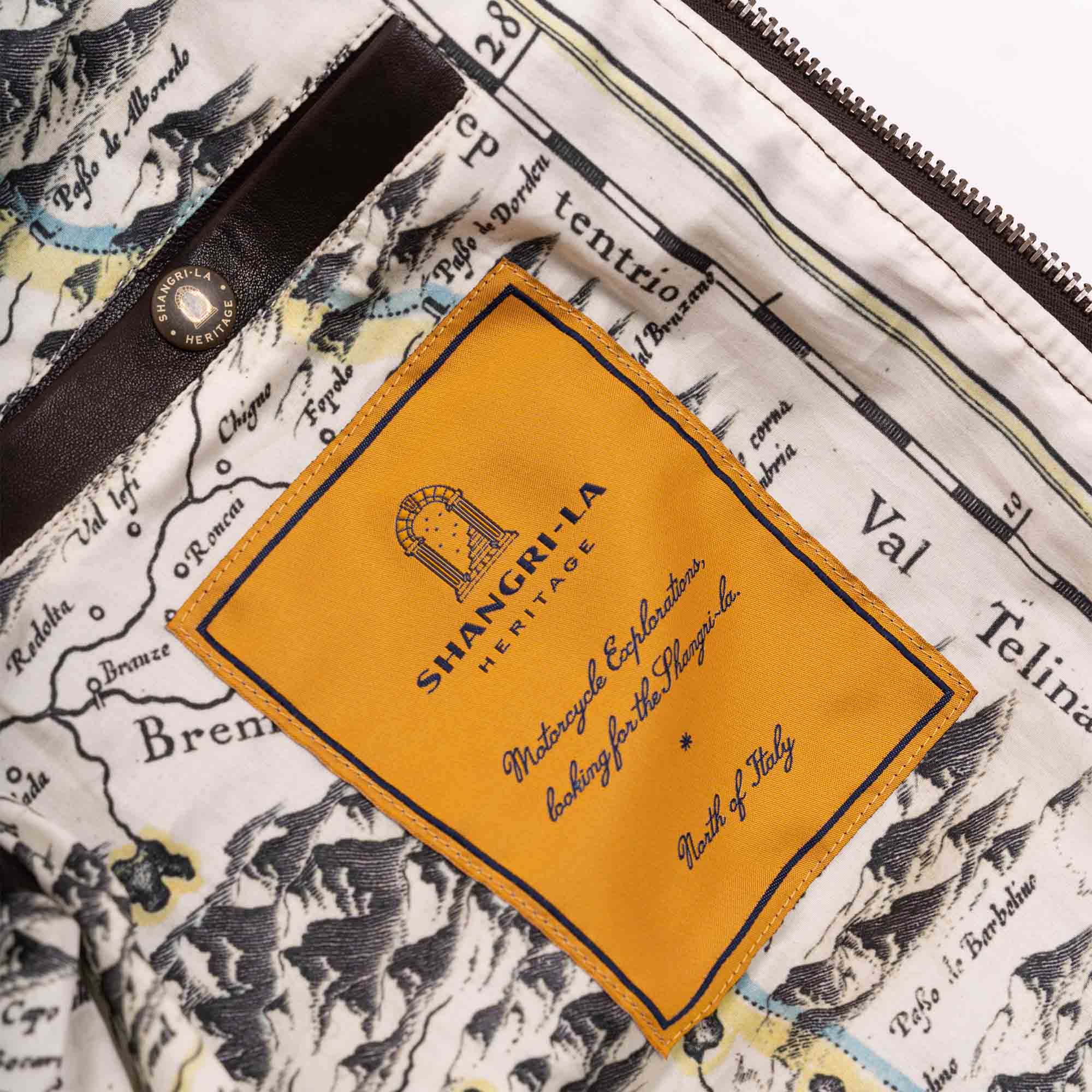 The lining is made of a special Bergamo Map 100% cotton. An Original ancient Map of Bergamo Territory from 17th century found in an old archive, and brought back to life on Cotton. Crafted in Italy in the Como Lake district, the Bergamo Map Cotton Lining has been created to guide the explorers during their trips hunting for unforgettable places and moments, in a nutshell, looking for the Shangri-La.