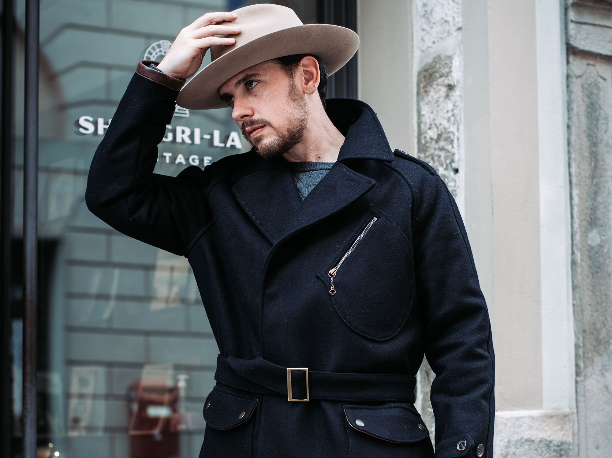 • “Stelvio” Navy Blue Melton Wool Dispatch Rider Coat